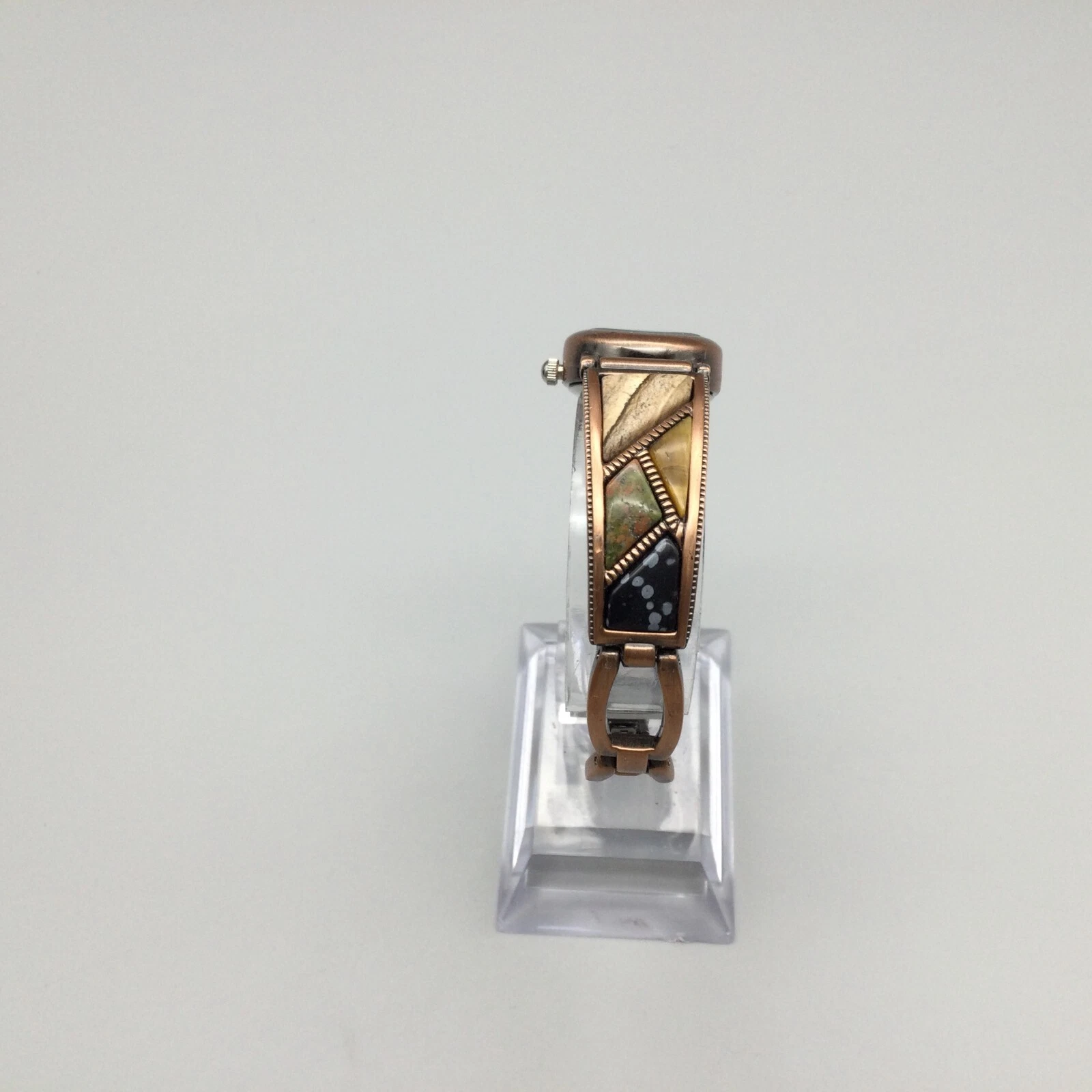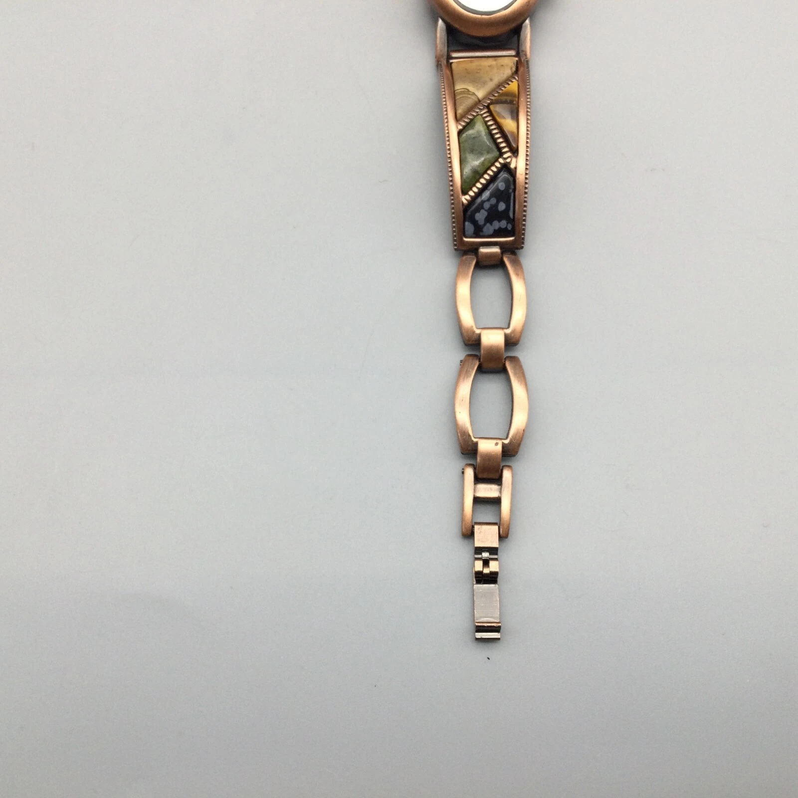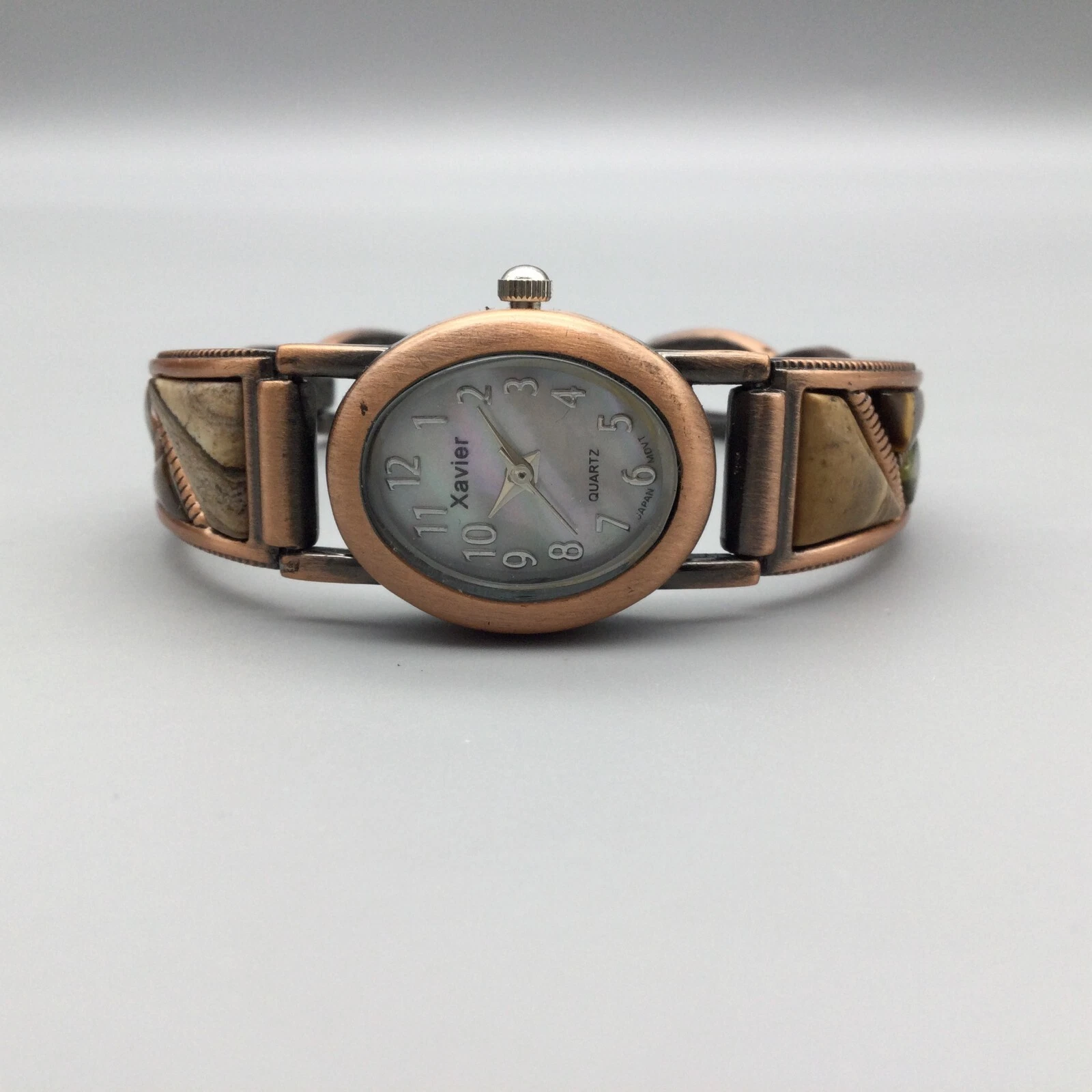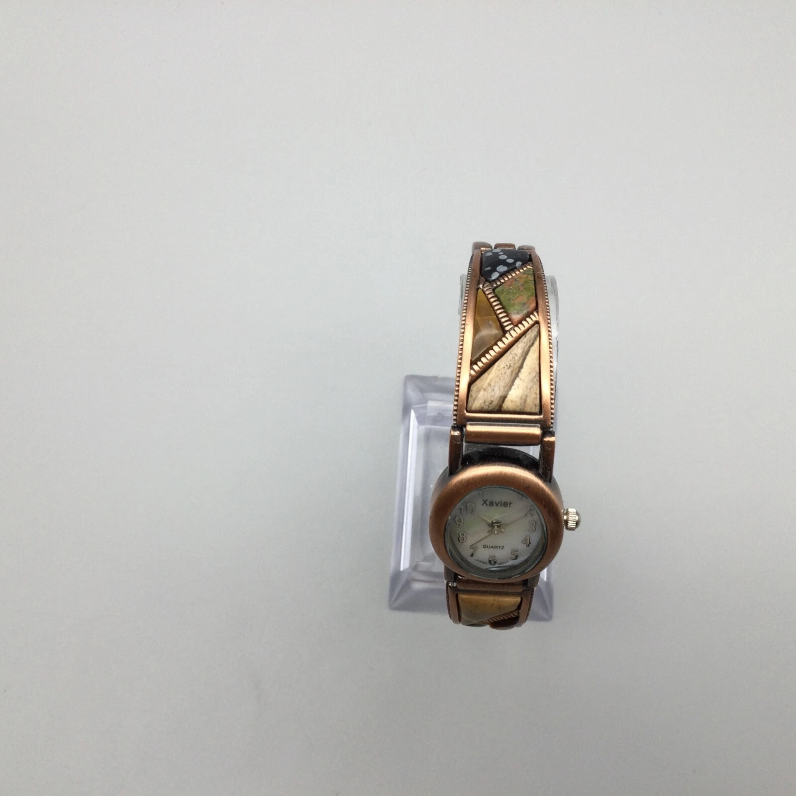 Xavier Watch Women 20mm Bronze Tone MOP Oval Stone Inlay Band New Battery 7"