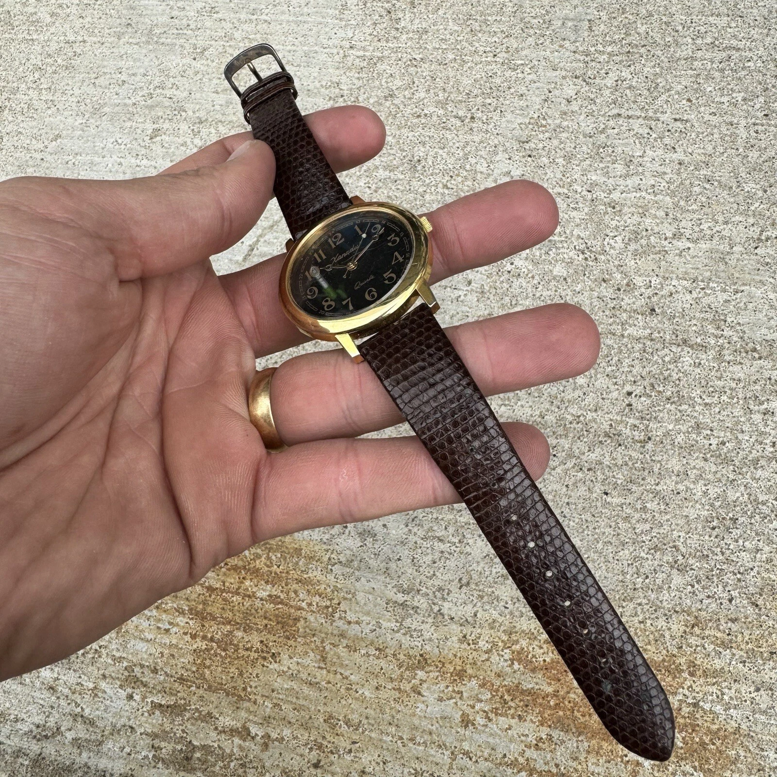 Vintage Gold / Black Mens Xanadu Quartz Watch With Speidel Lizard Grain Band