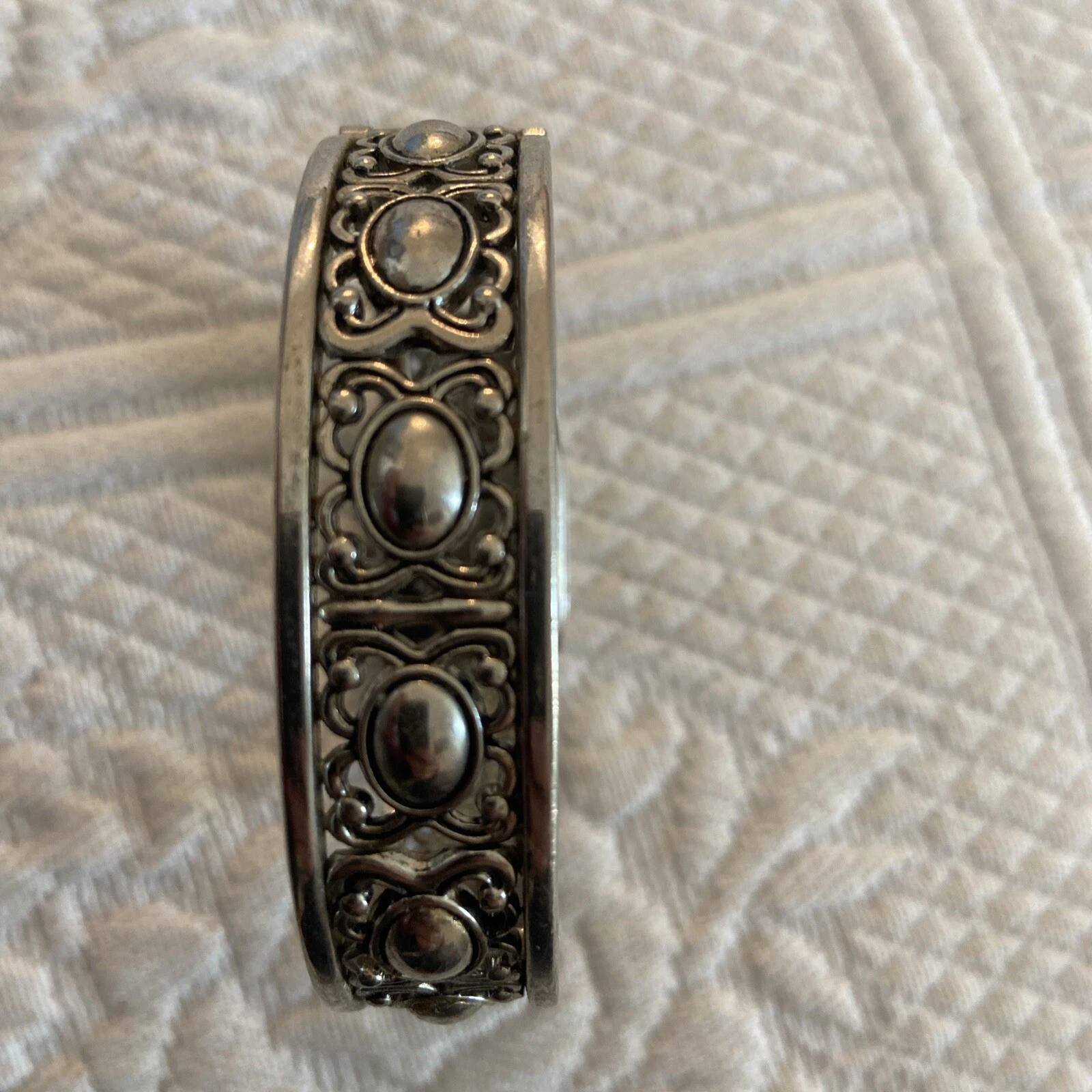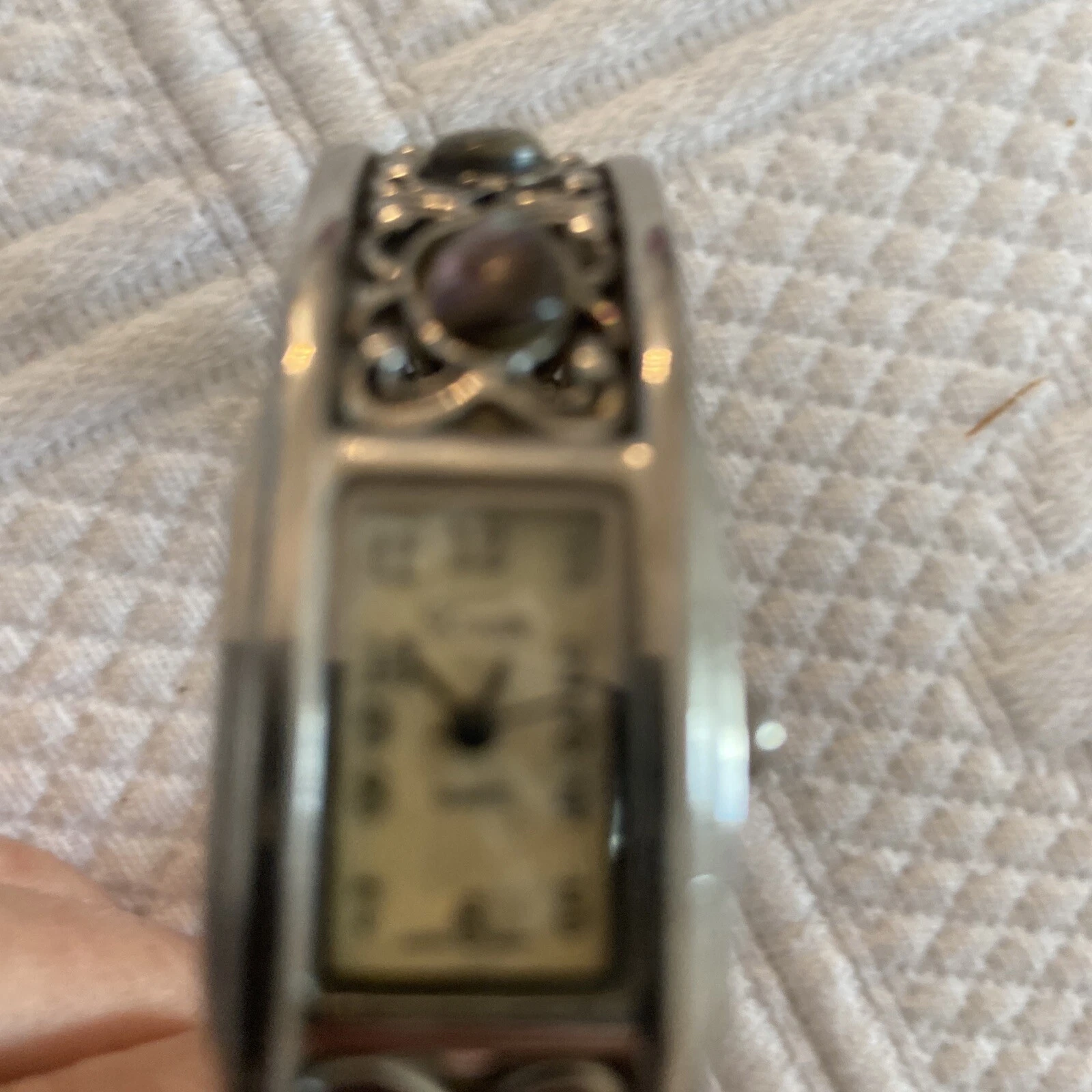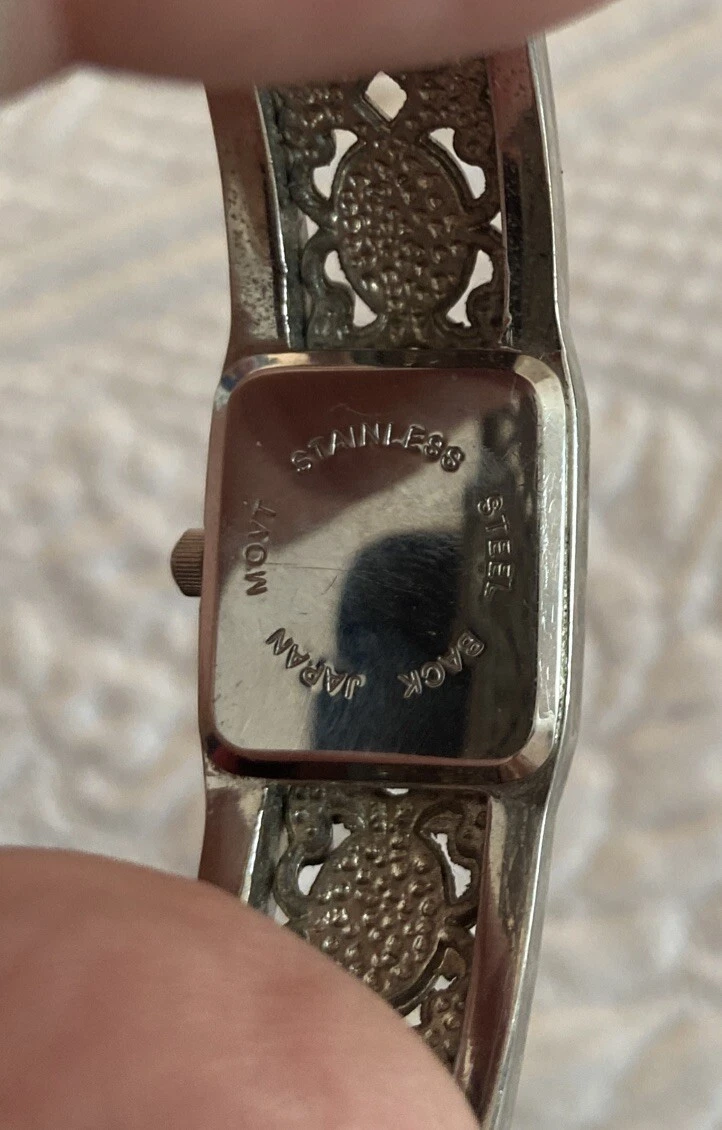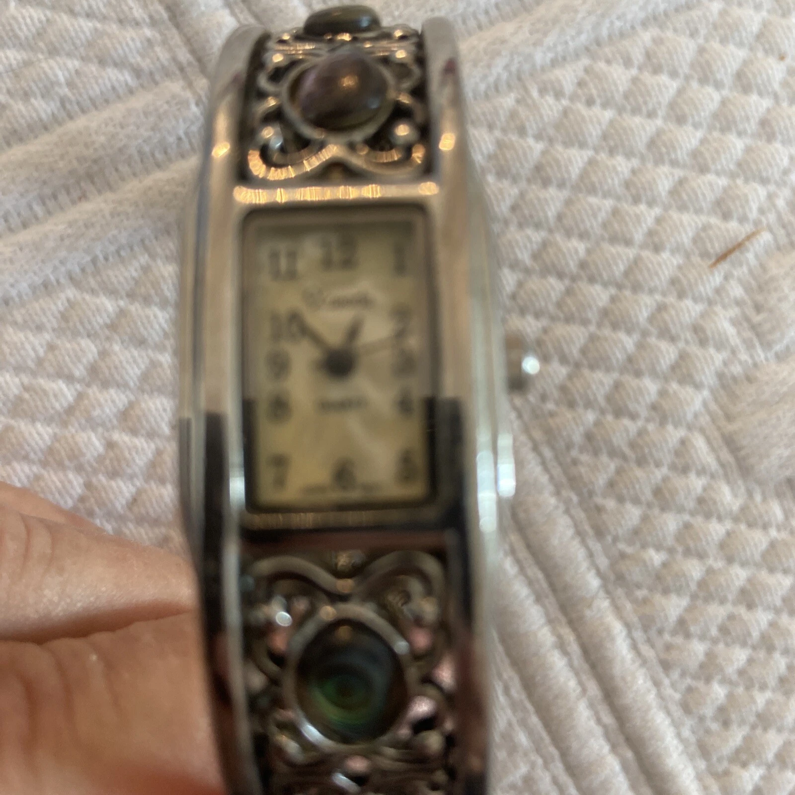 Vtg Xanadu Watch Women Silver Tone MOP Hinged Cuff 6.75" Japan Movement