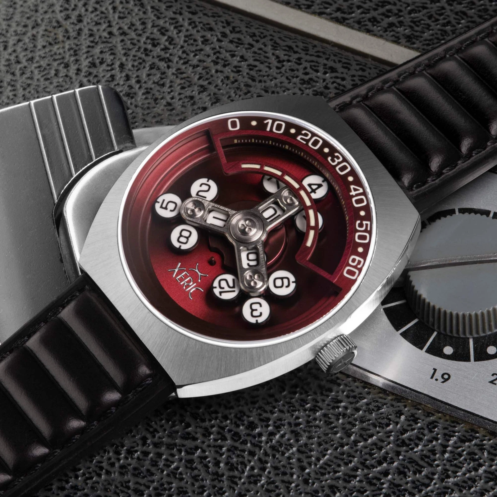 Xeric Scrambler Automatic Wandering Hour Black Oxblood Watch -