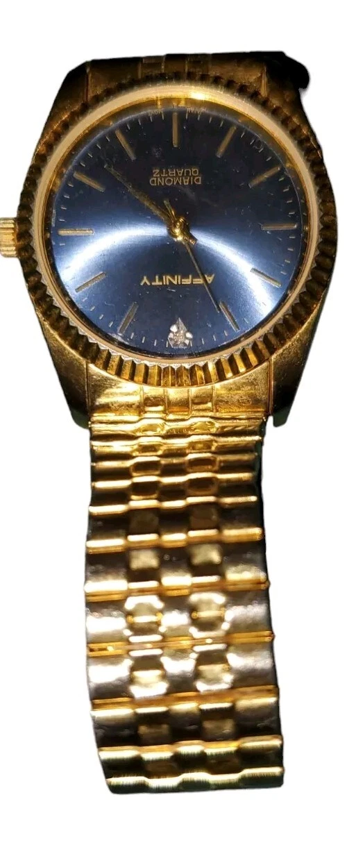 Vntg Affinity Diamond Quartz Mens Wristwatch Gold Tone Office Work Dress Designr