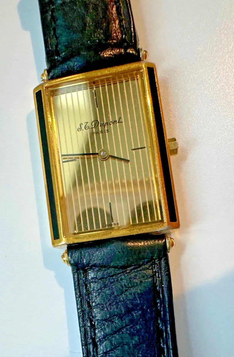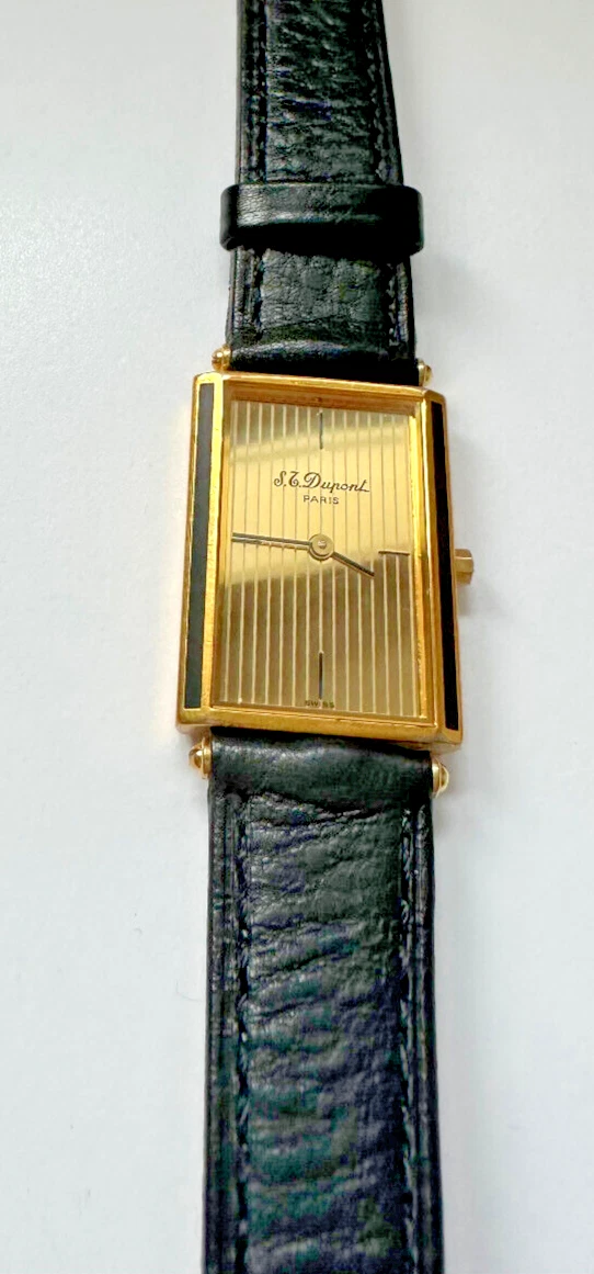 S.T. Dupont Paris Men Rectangular Quartz Gold Dial Laque de Chine REDUCED