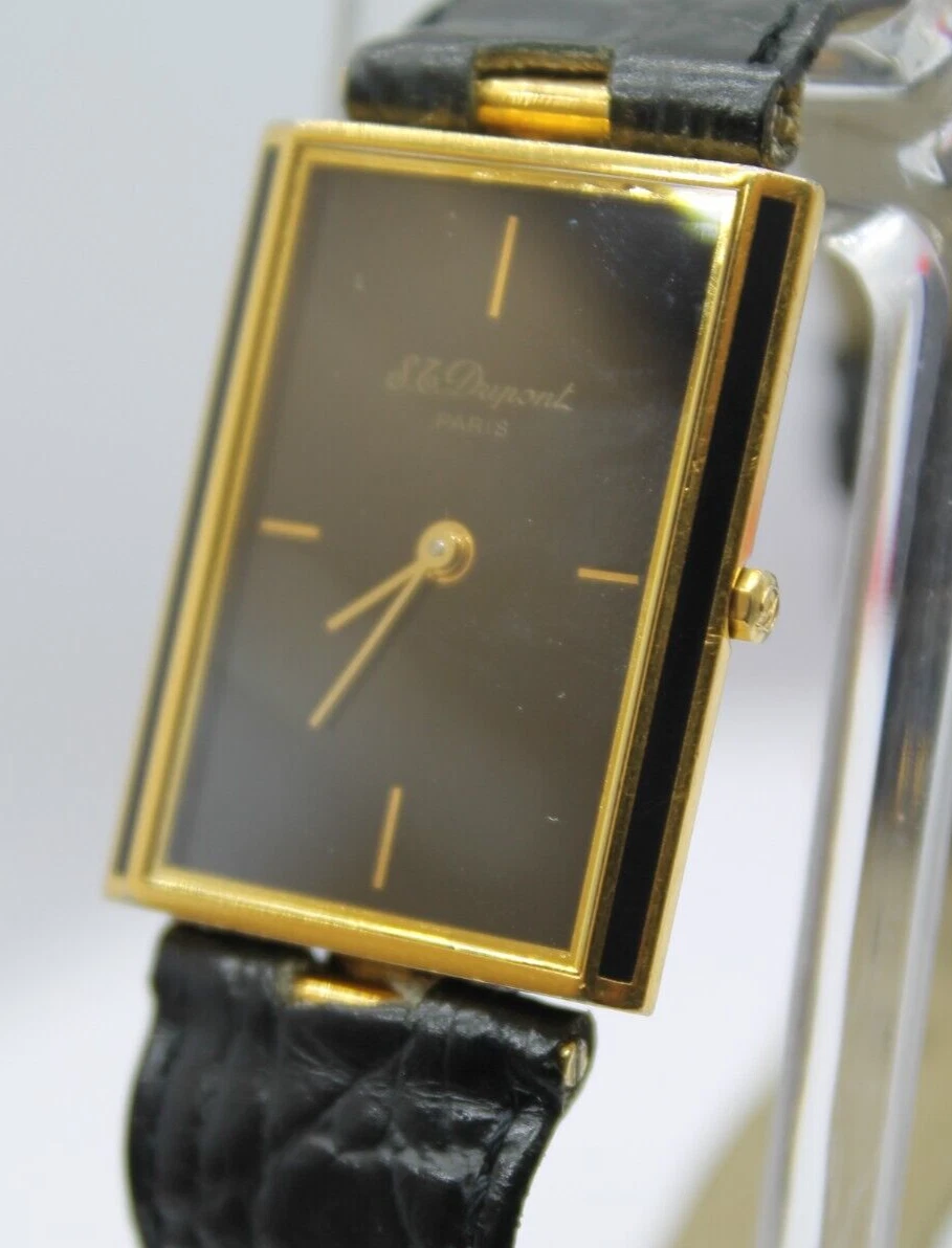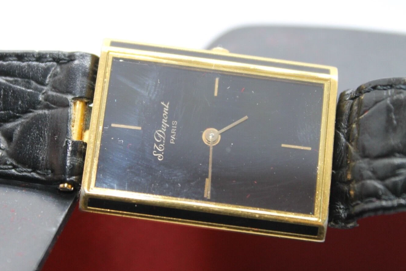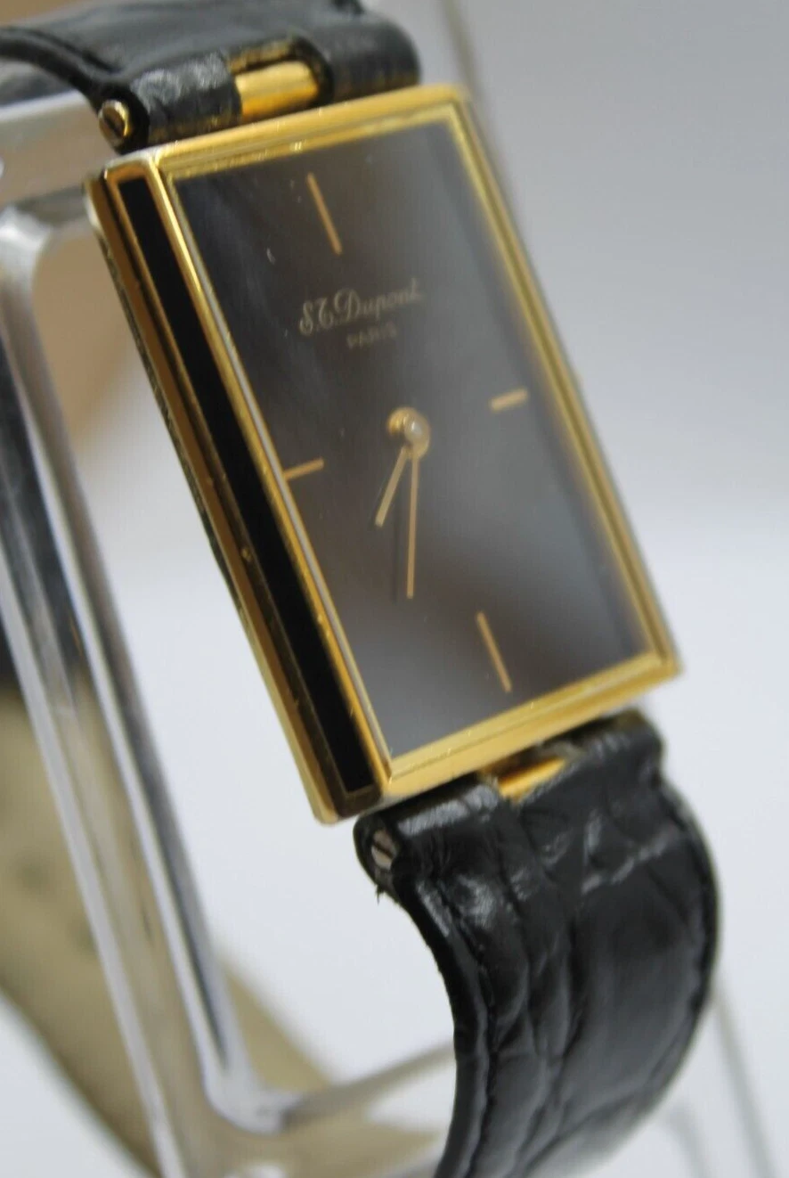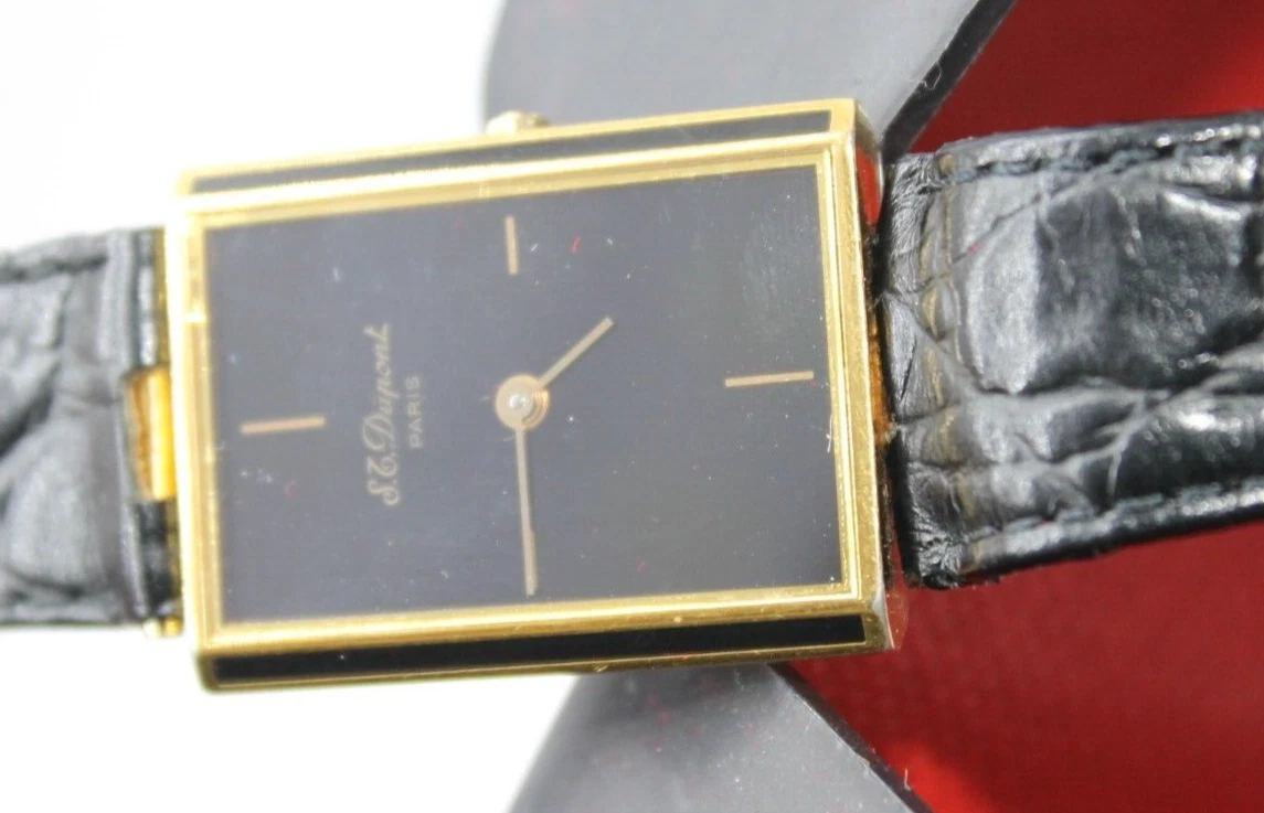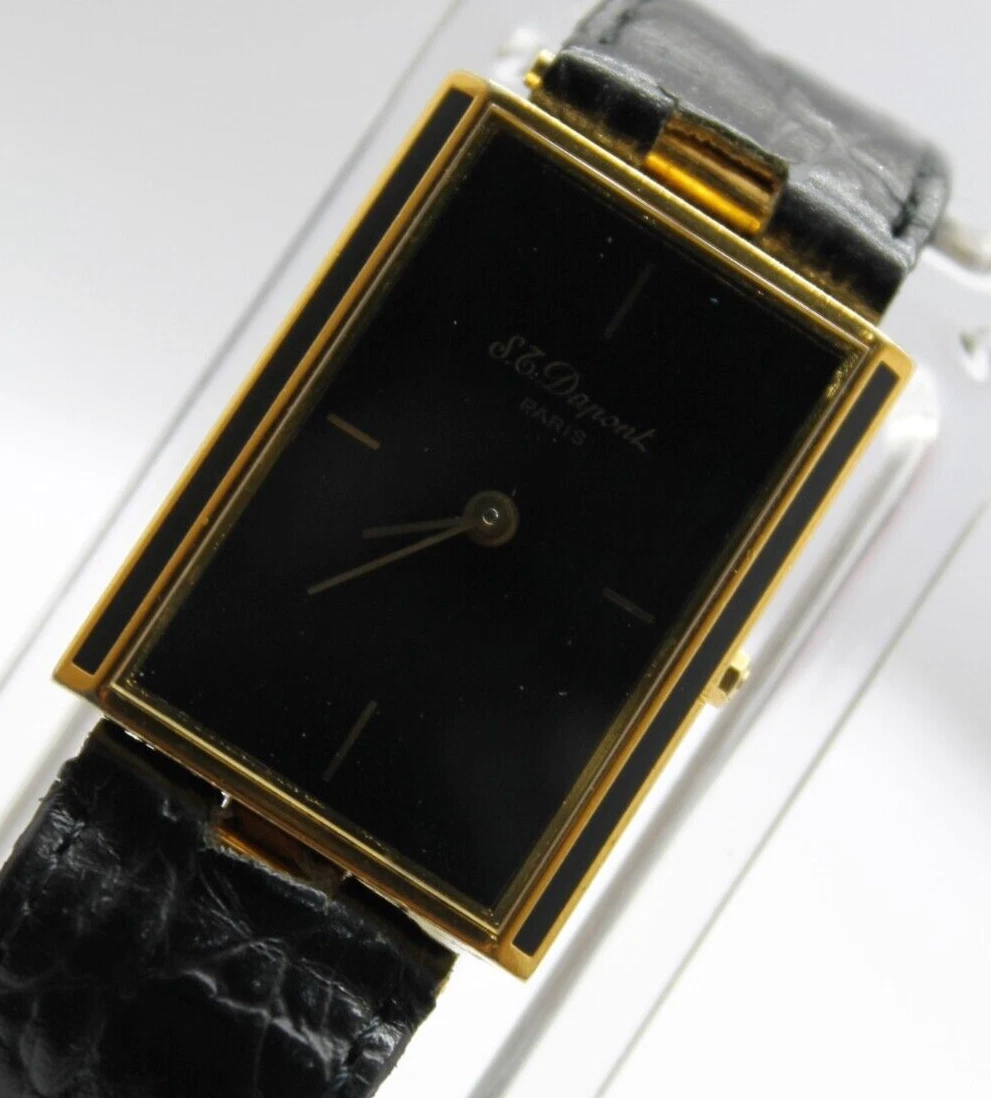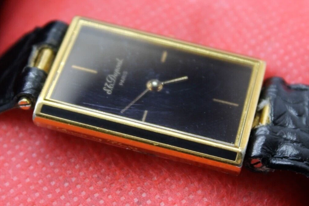 RARE S.T.DUPONT LAQUE DE CHINE PARIS TANK VINTAG GOLD PLATED SWISS 90s MEN WATCH