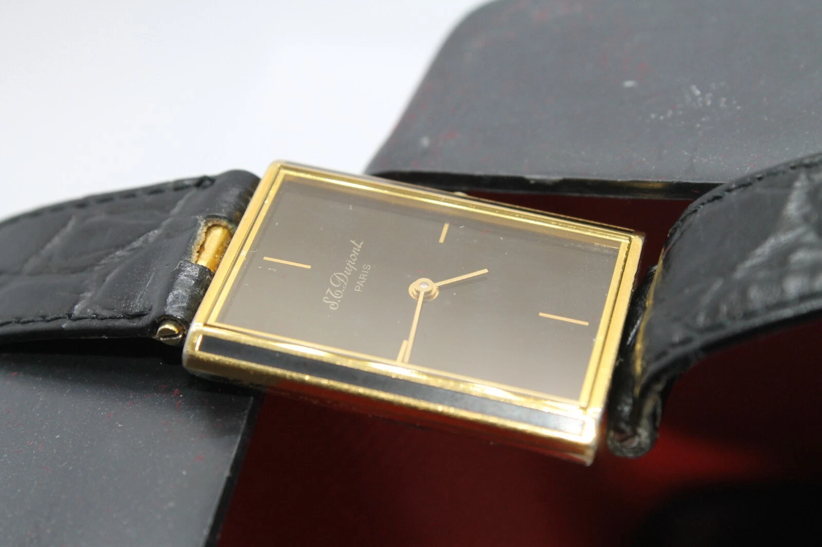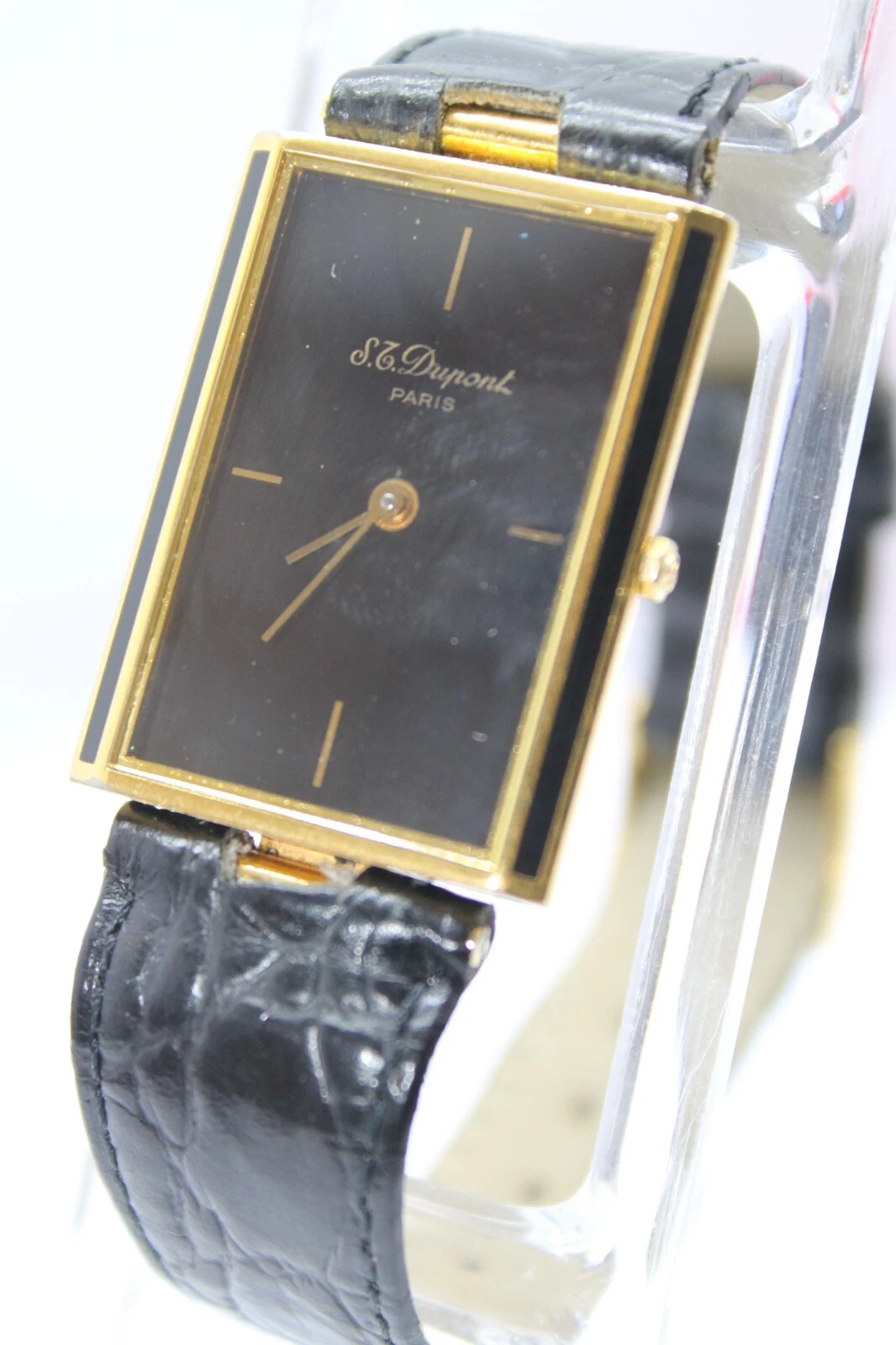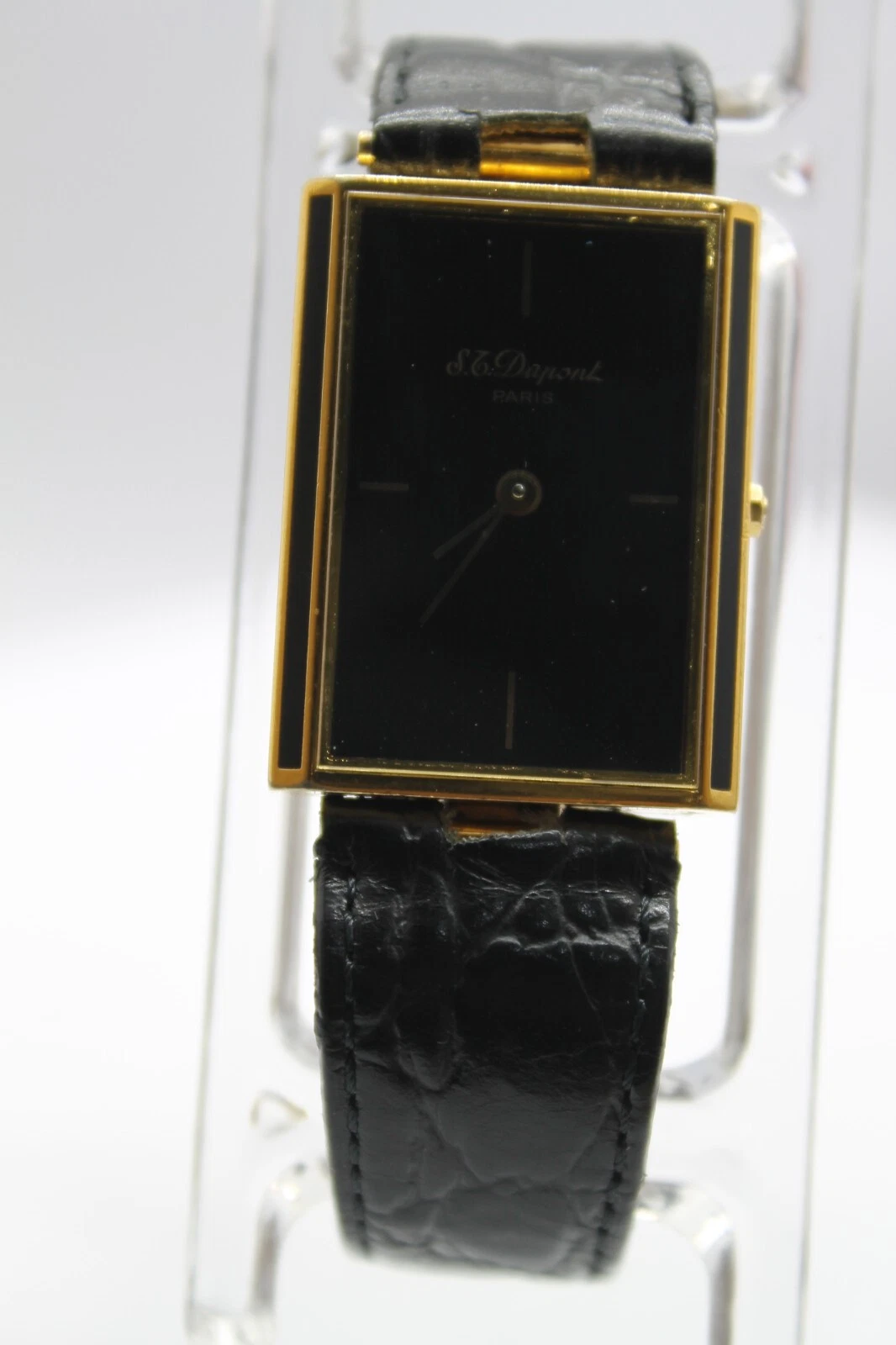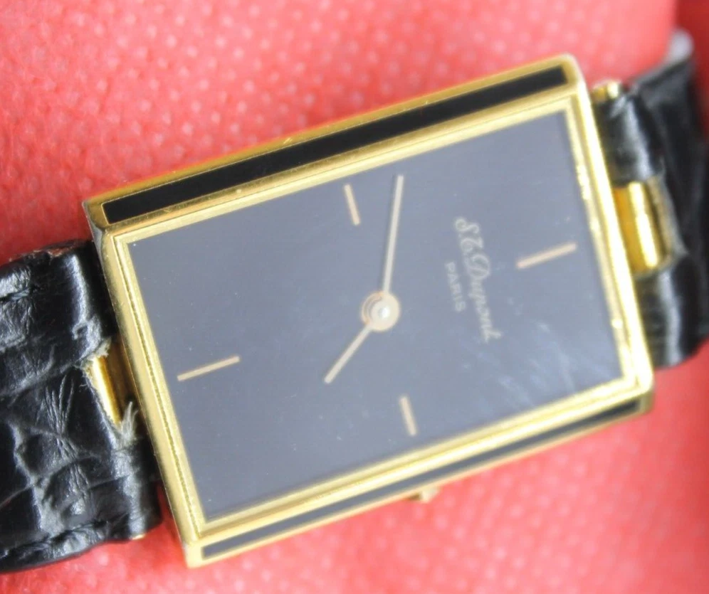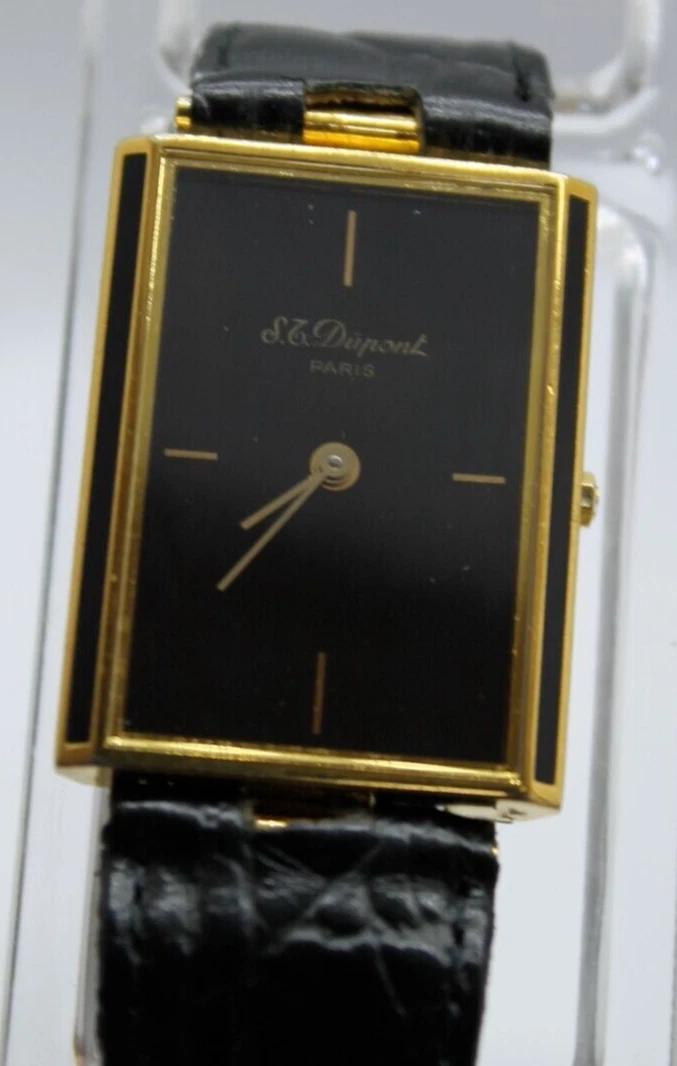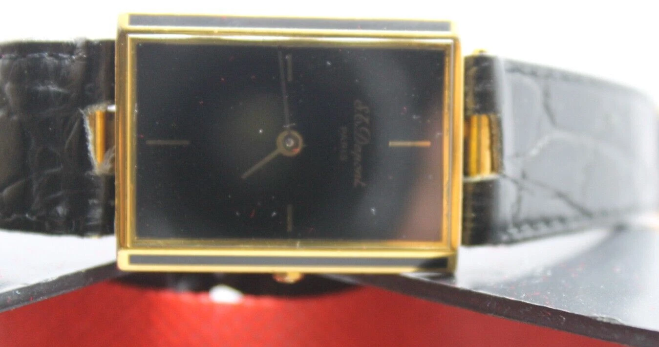 RARE S.T.DUPONT LAQUE DE CHINE PARIS TANK VINTAG GOLD PLATED SWISS 90s MEN WATCH