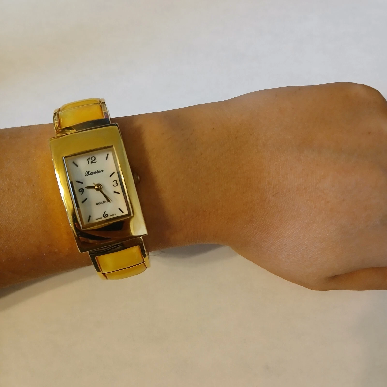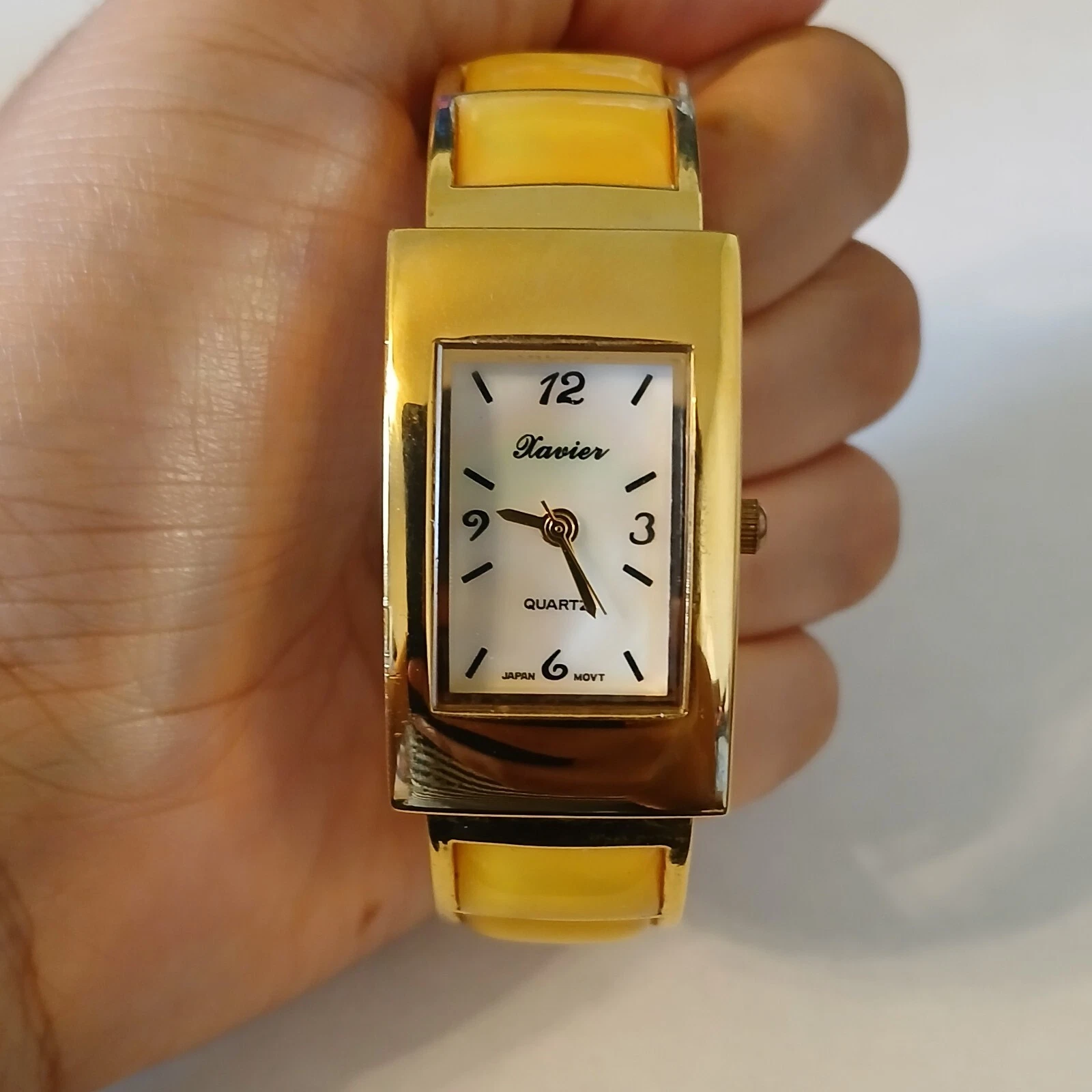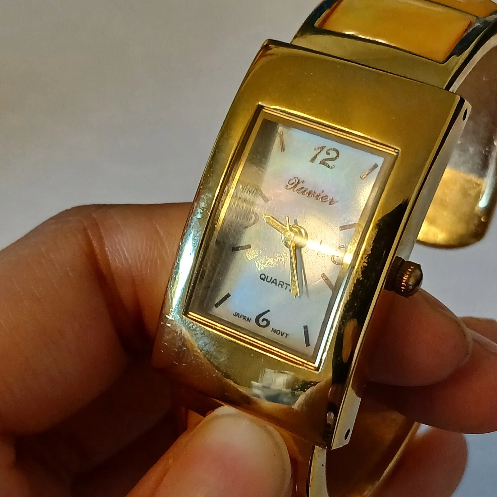 Xavier Women's Gold Tone Faux Gem Accent Quartz Analog Cuff Watch Japan Movt