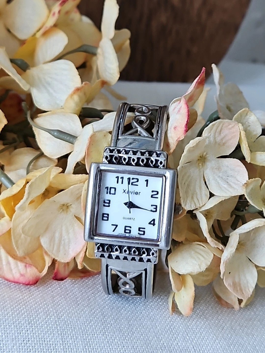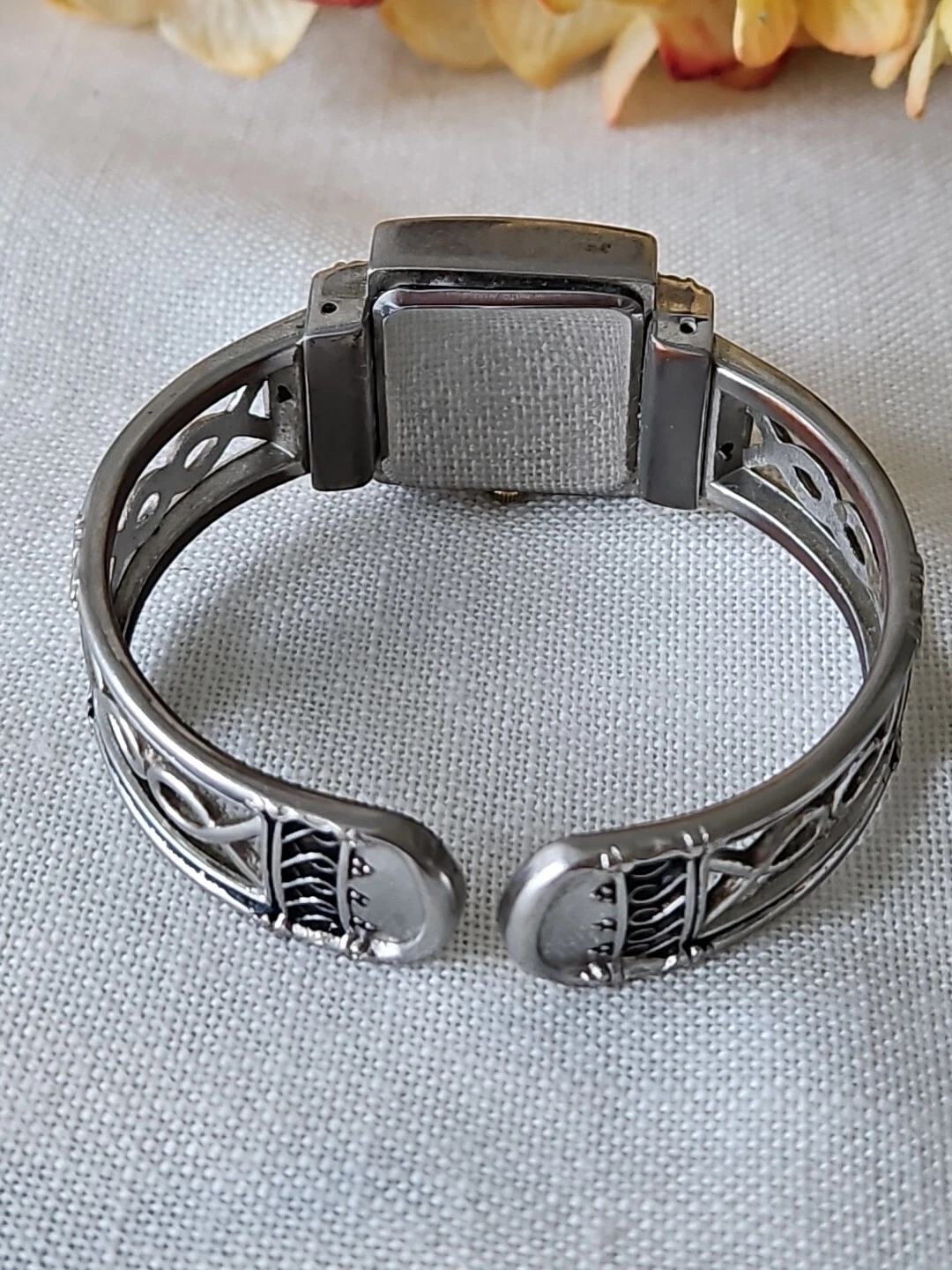 Xavier Womens Silvertone Cuff Watch WORKS Size 6