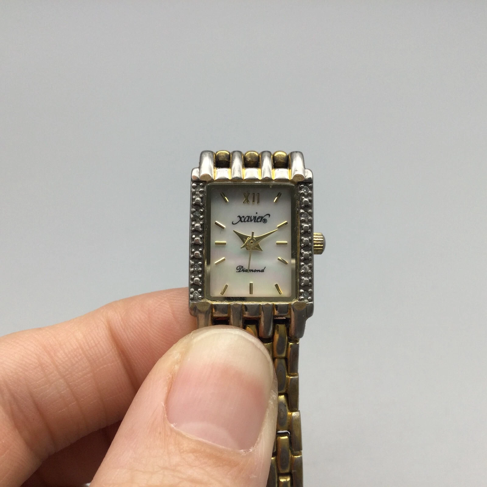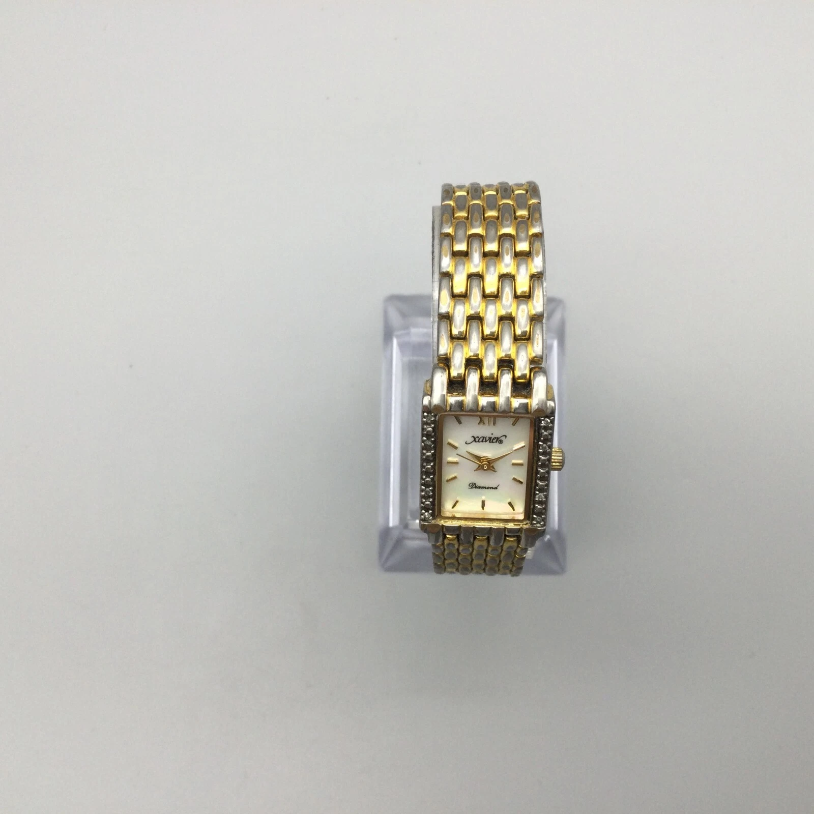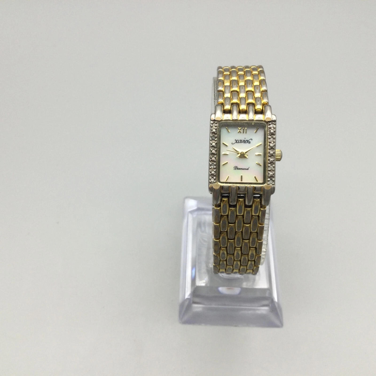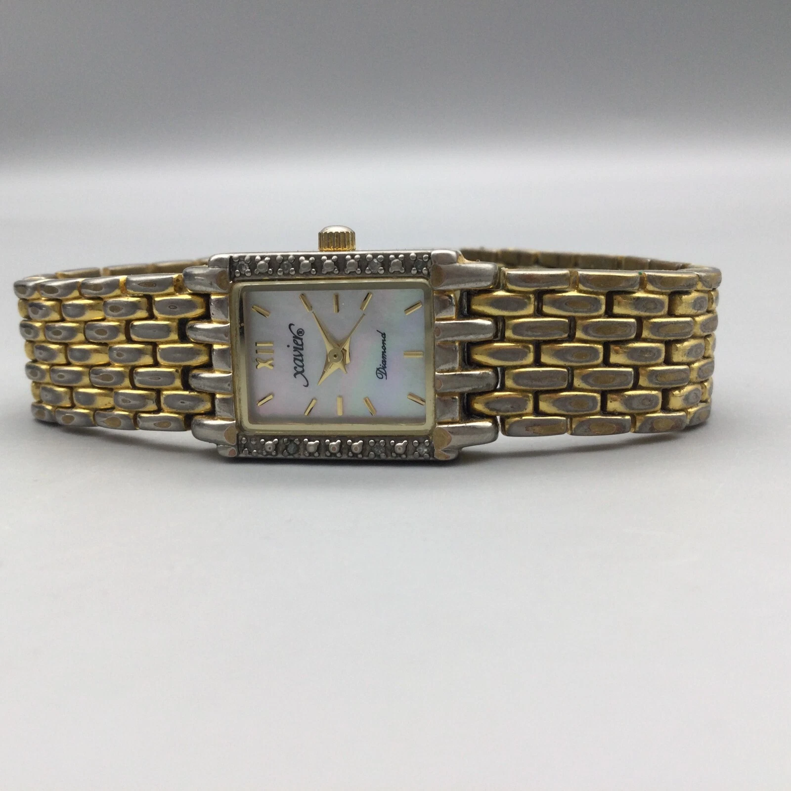 Xavier Diamond Tank Watch Women 17mm Gold Tone MOP Dial New Battery 6"
