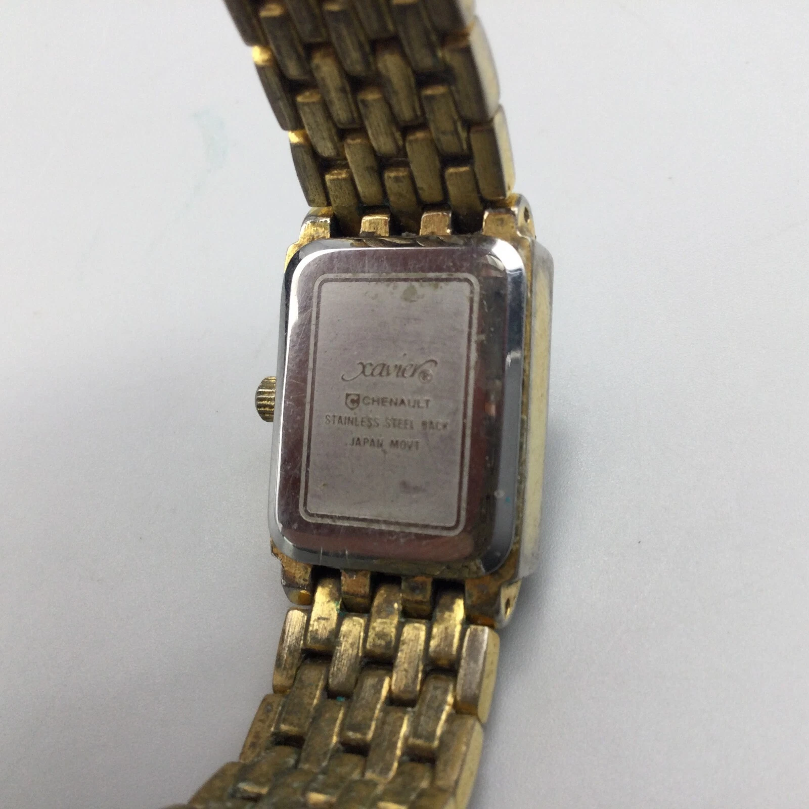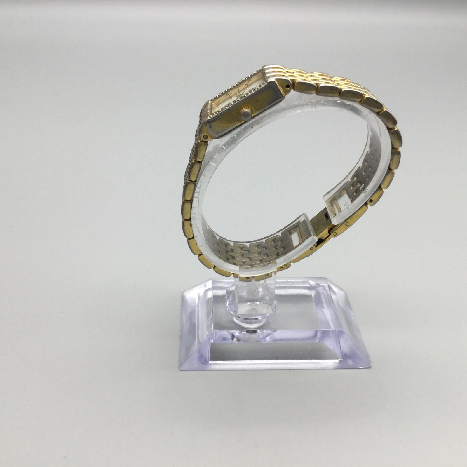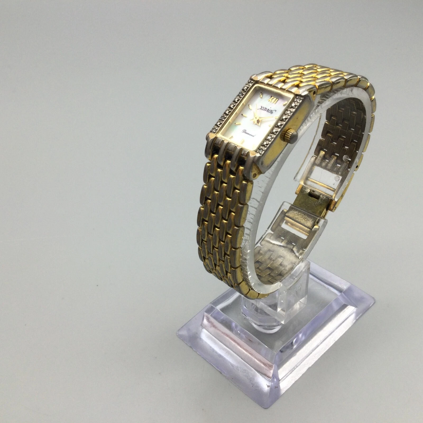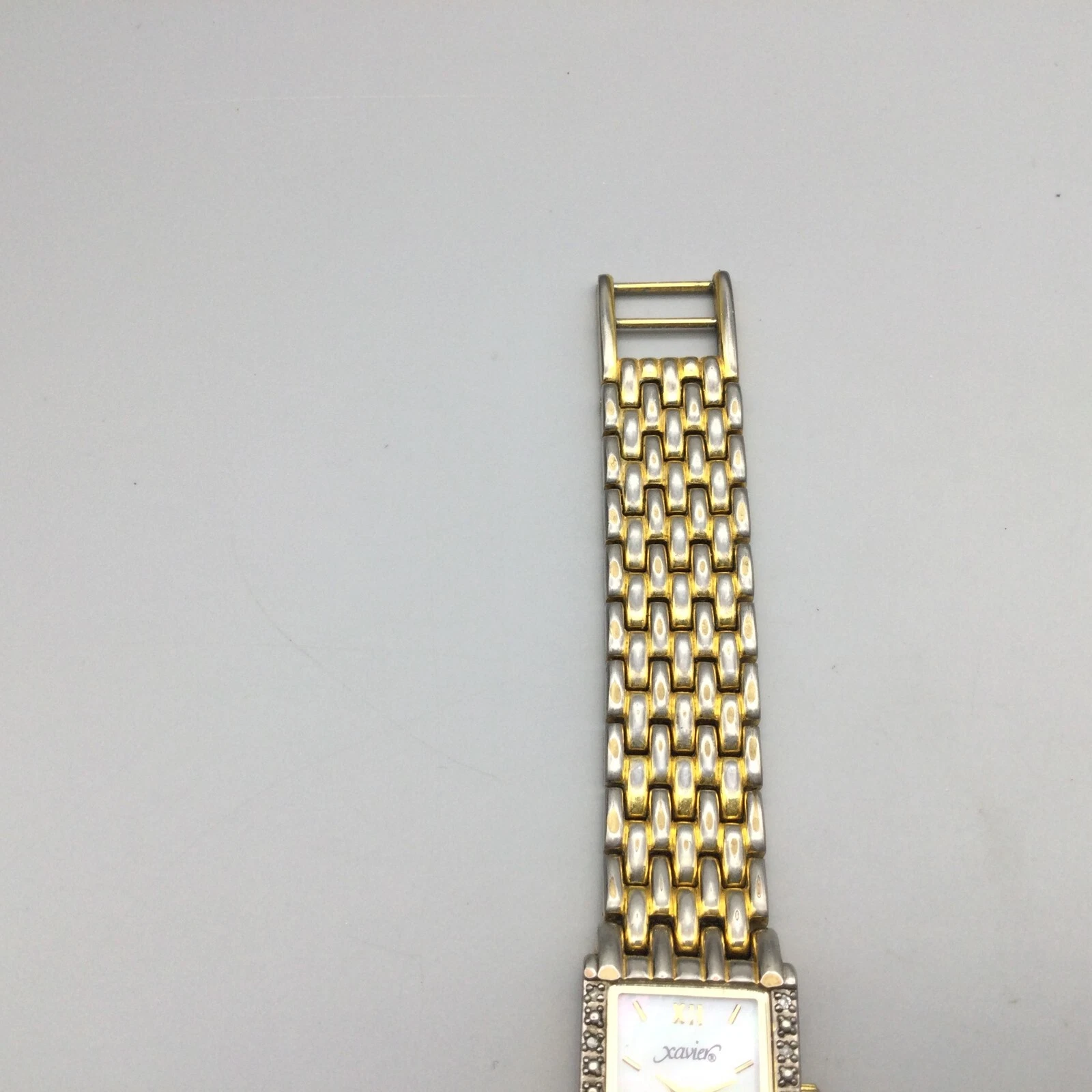 Xavier Diamond Tank Watch Women 17mm Gold Tone MOP Dial New Battery 6"