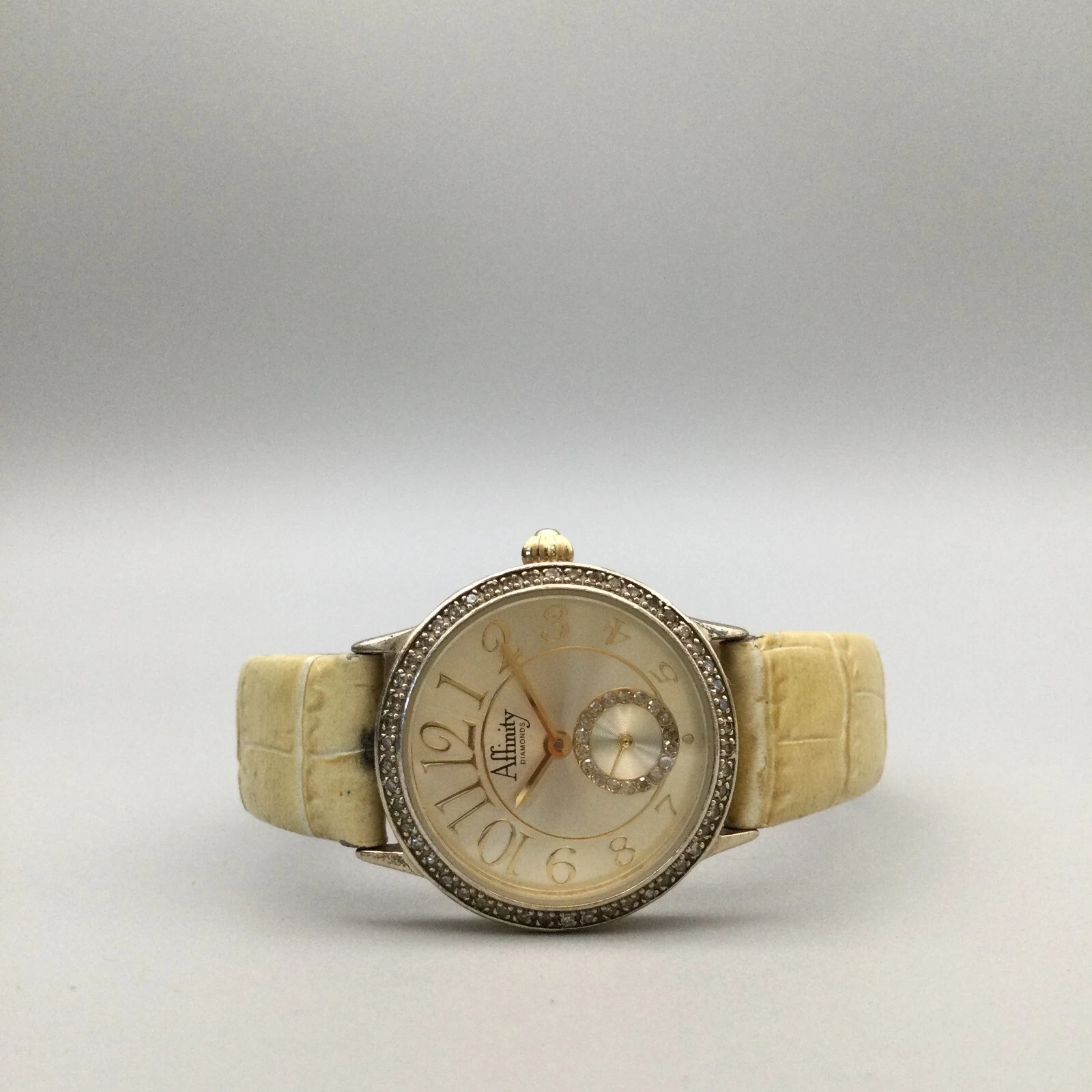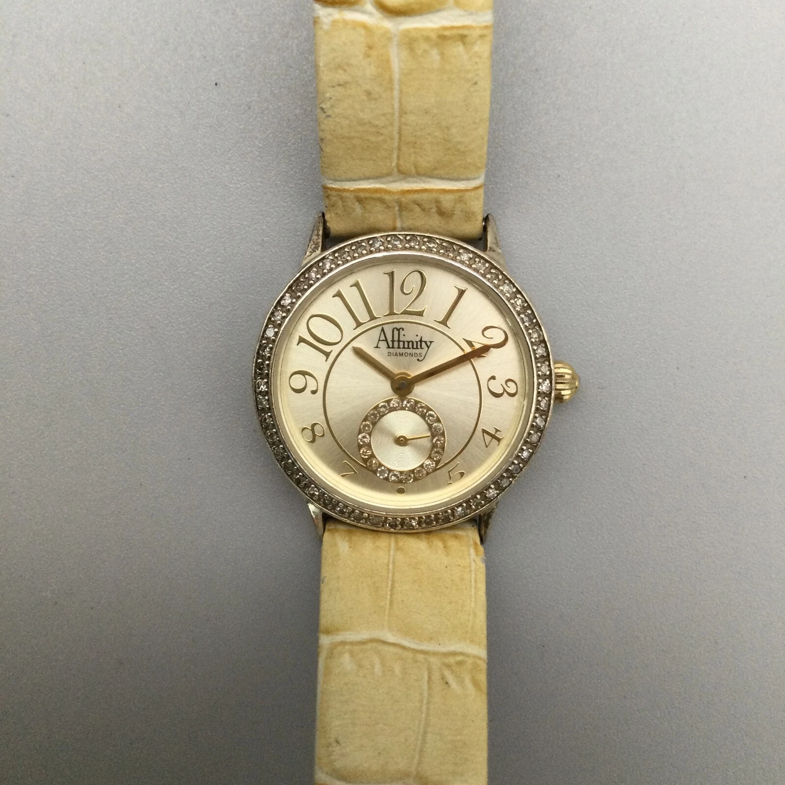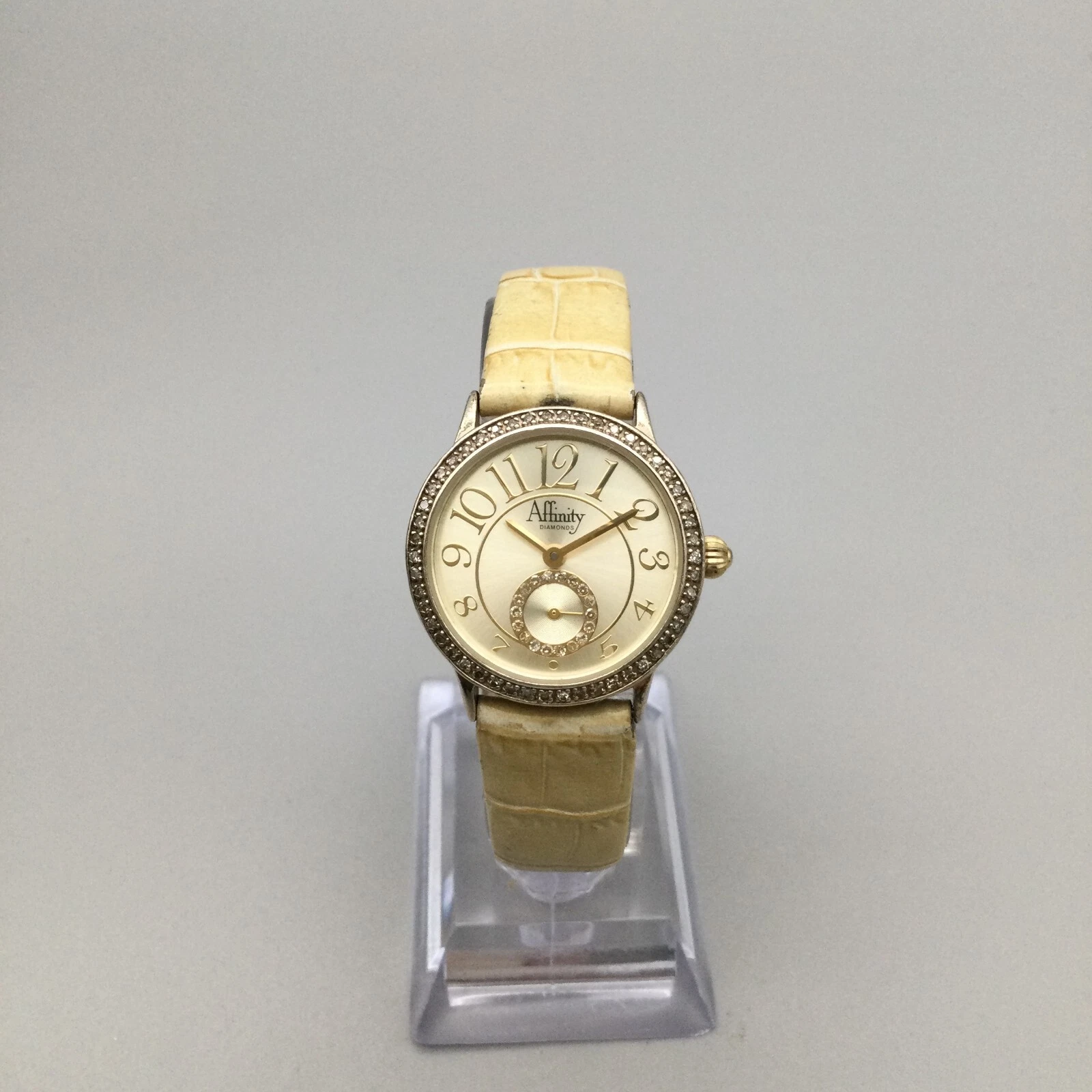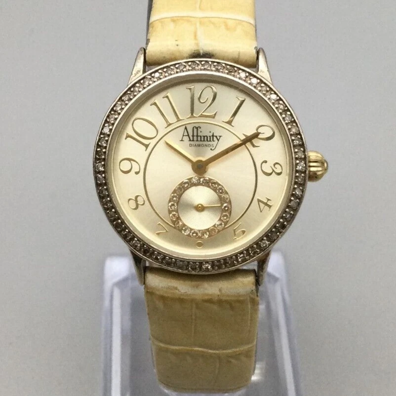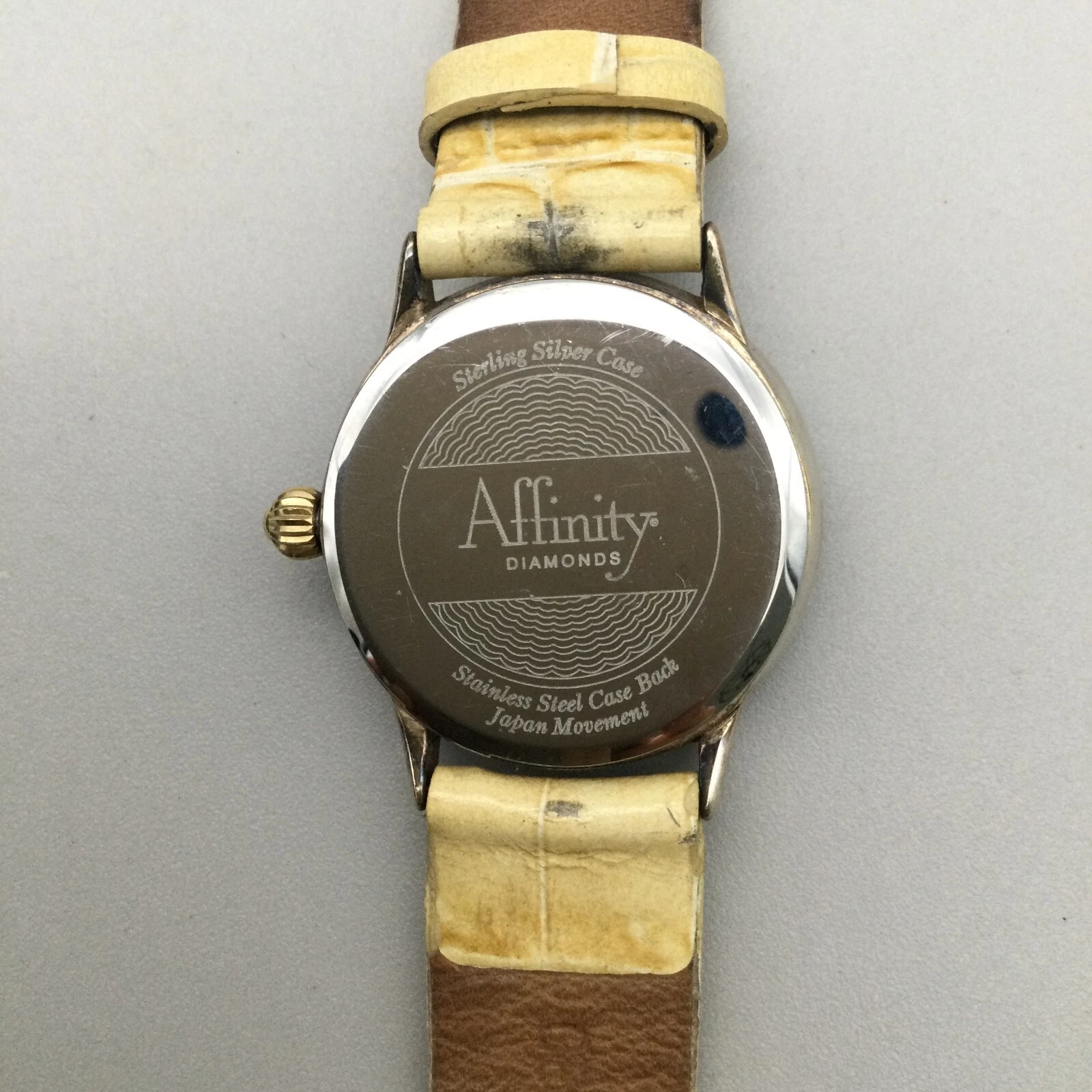 Affinity Diamonds Watch Women 26mm Gold Tone Sterling Silver Leather New Battery