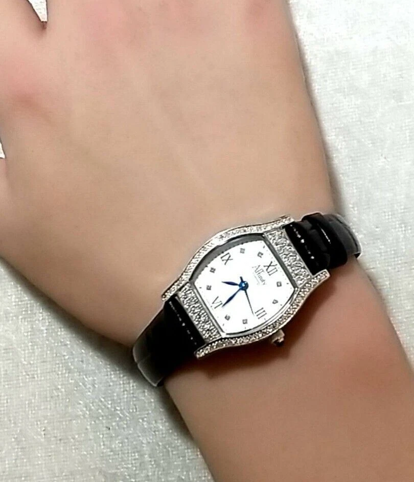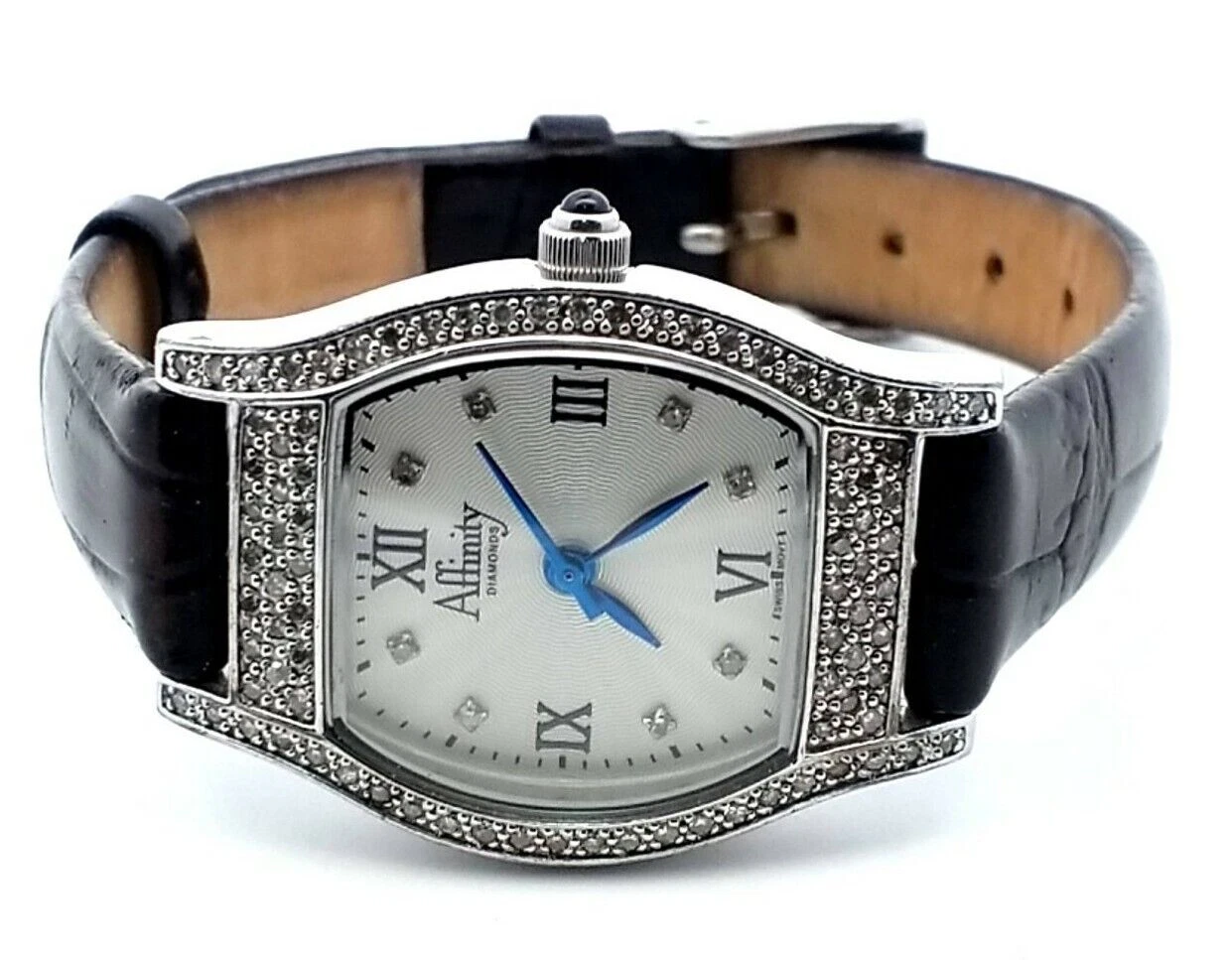 Affinity Diamond Watch Women Sterling Silver White Dial Leather Band Working