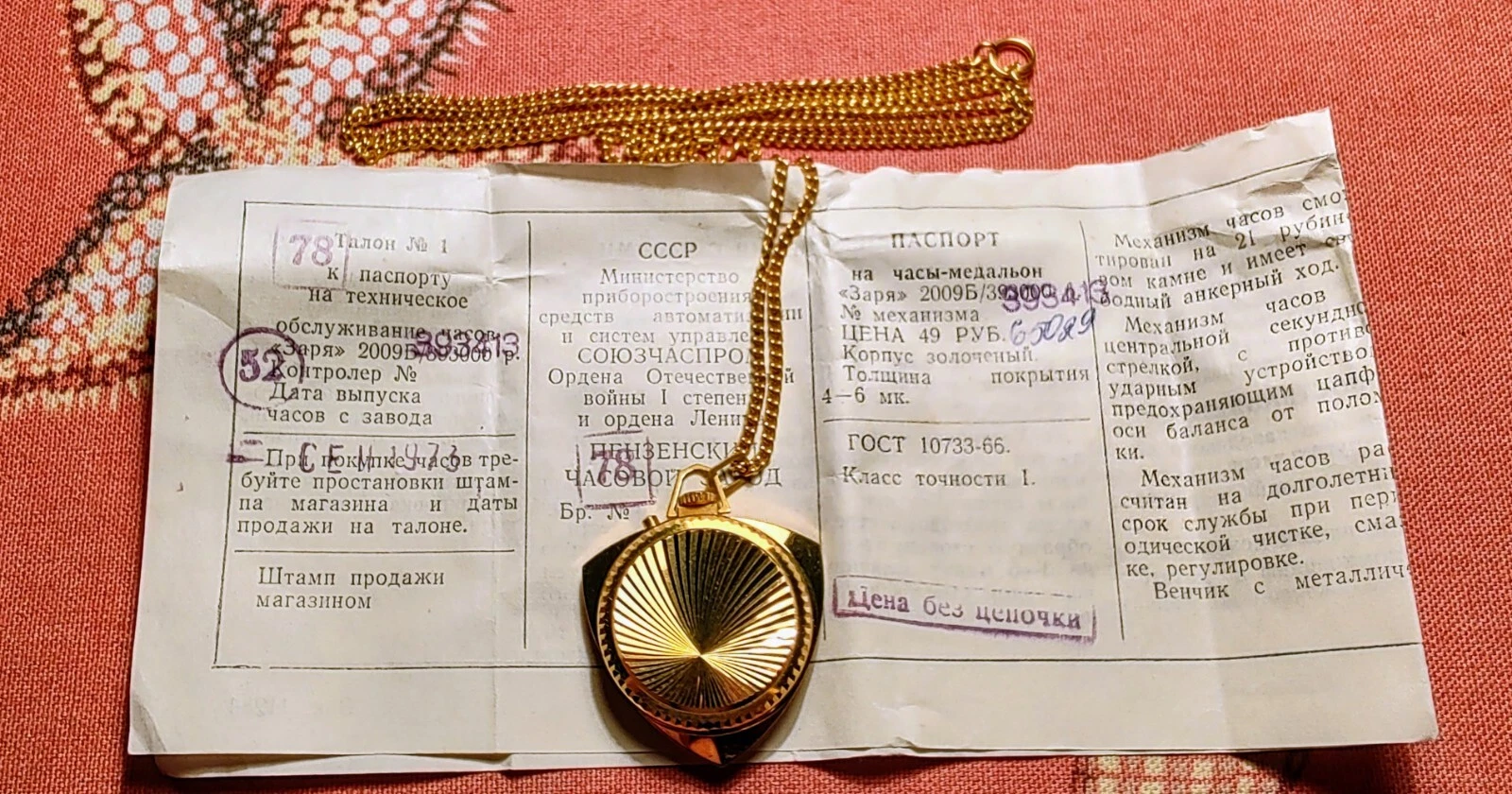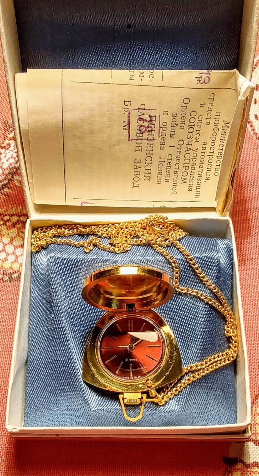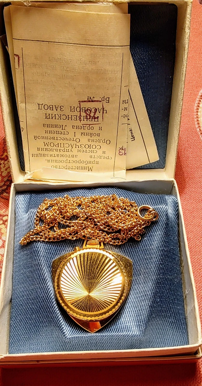 New women's watch-pendant Zarya, 1973, with documents in original box.USSR