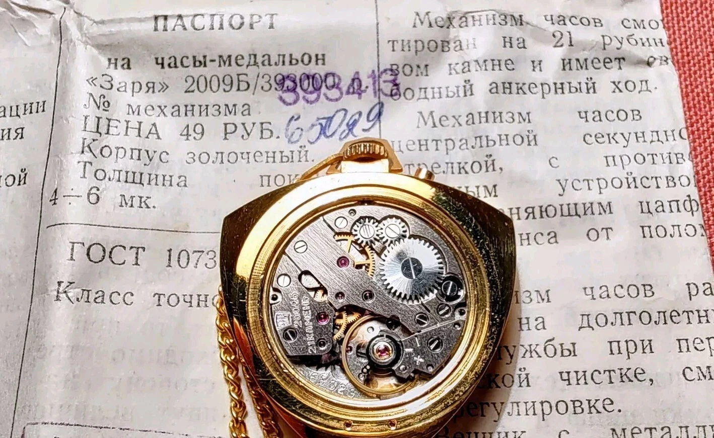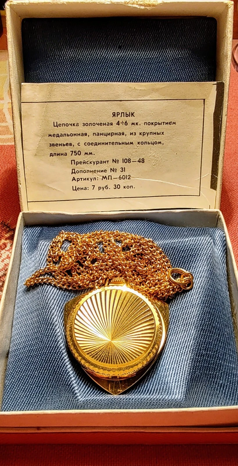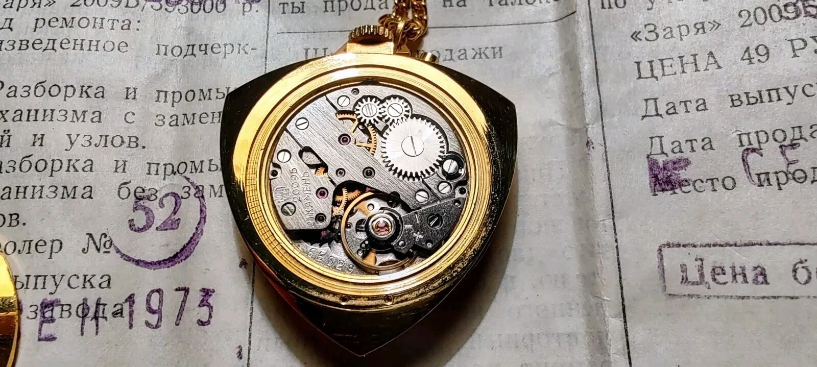 New women's watch-pendant Zarya, 1973, with documents in original box.USSR