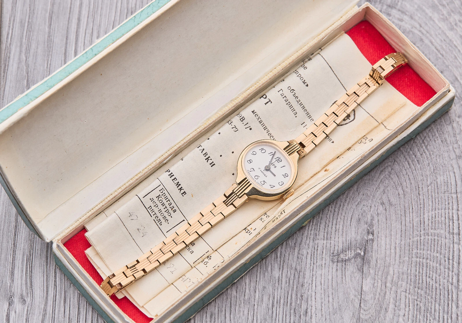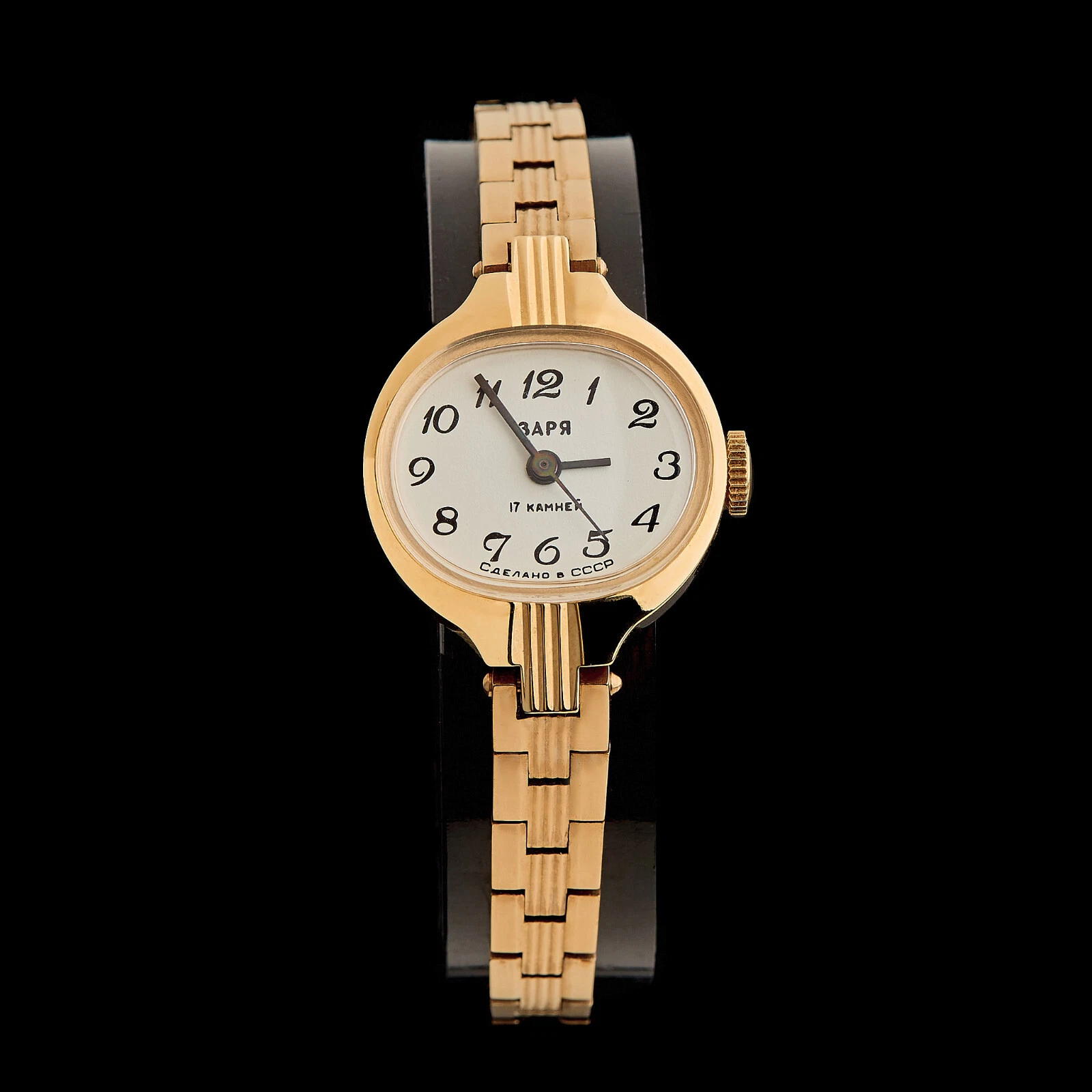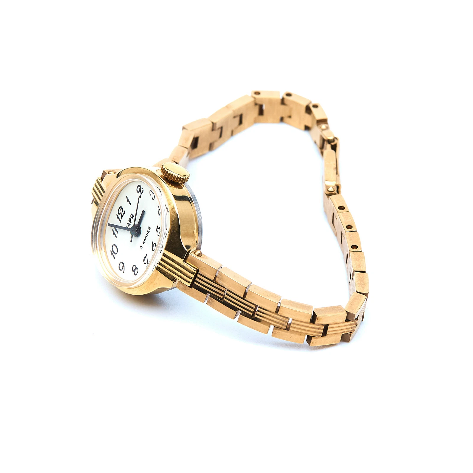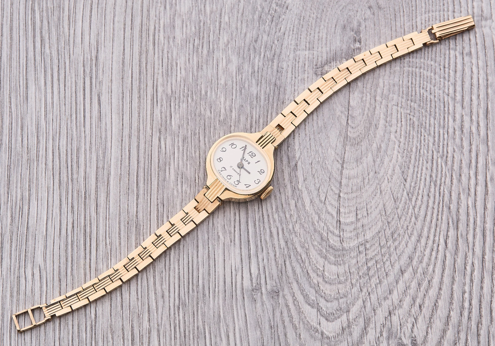 Gold-plated vintage women's wristwatch ZARYA, 17 jewels, USSR mechanical watch