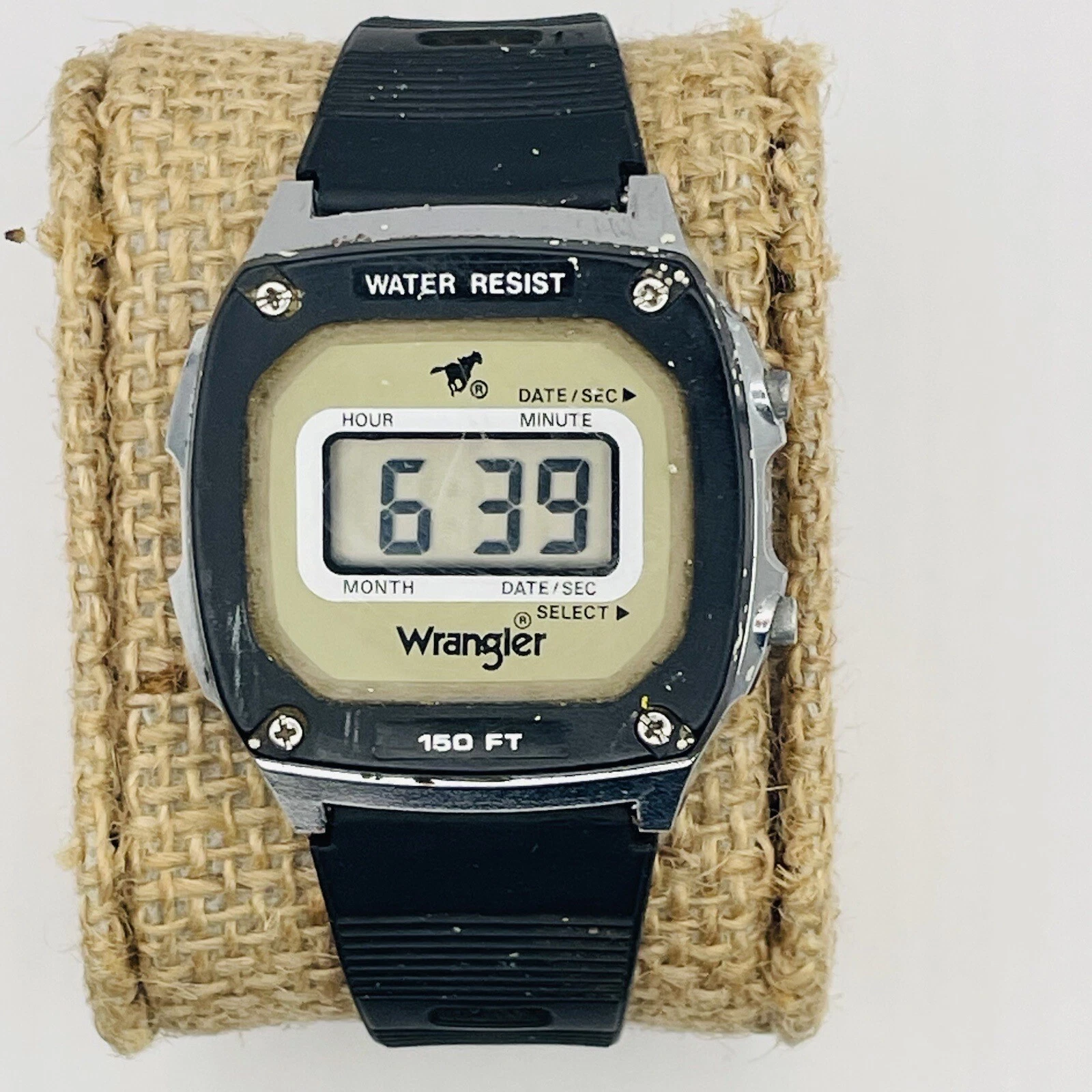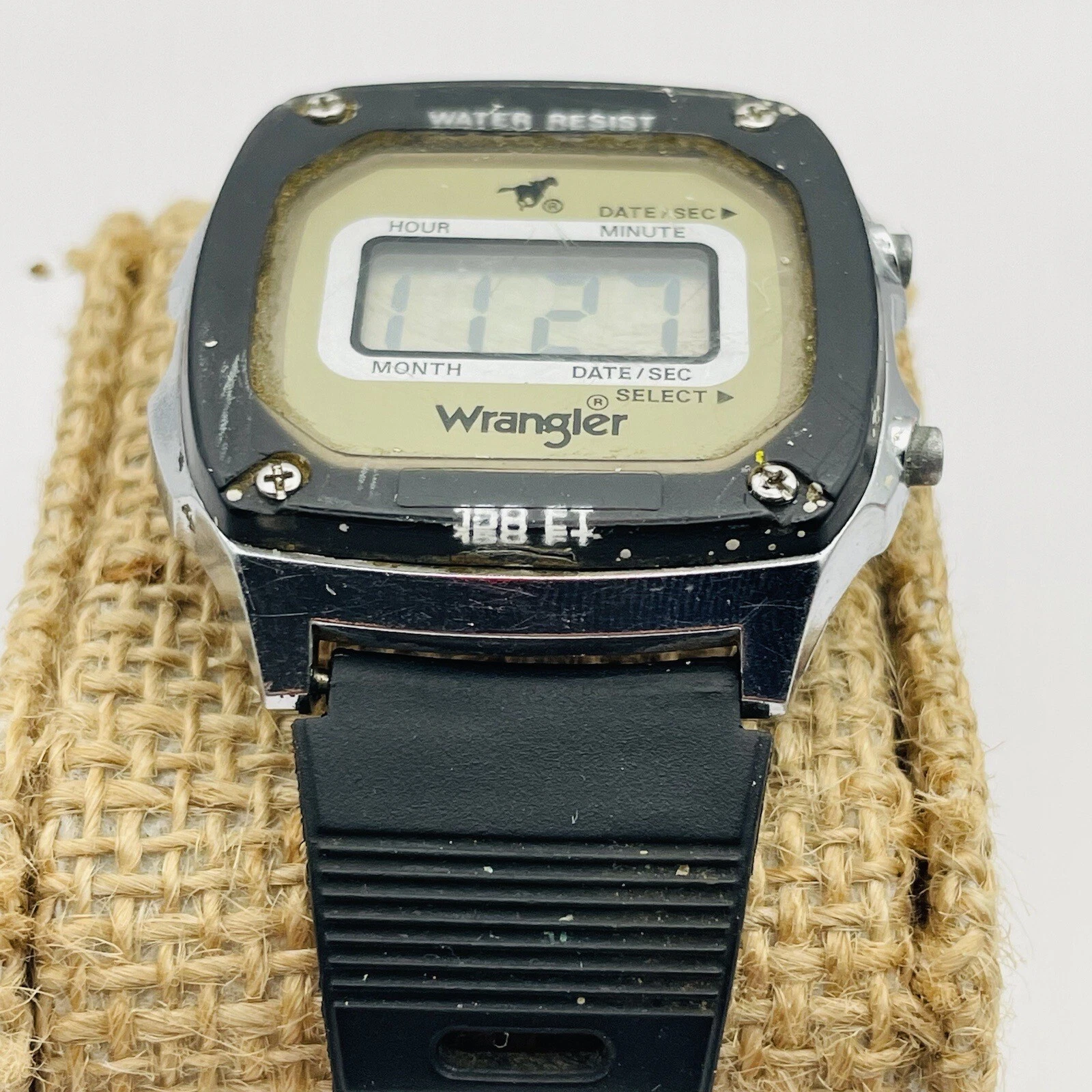 Vintage Wrangler Digital Alarm Day Date Black Band Watch