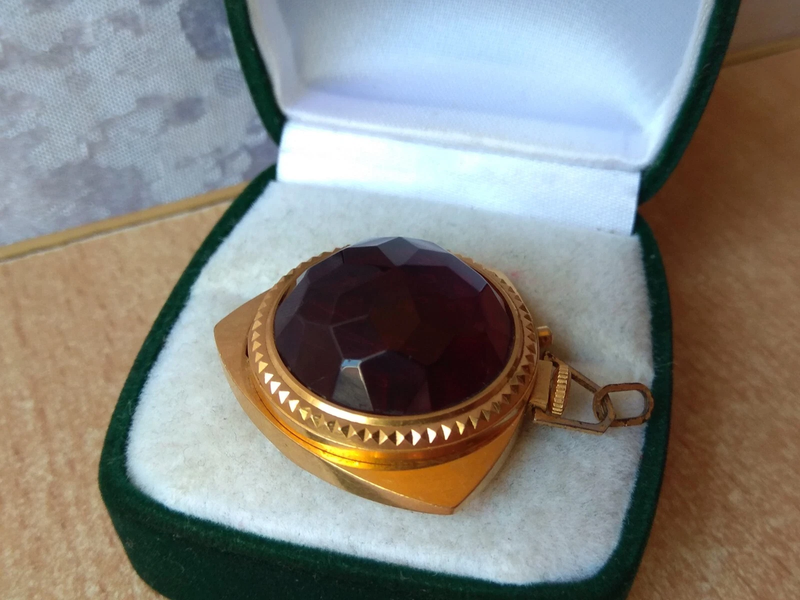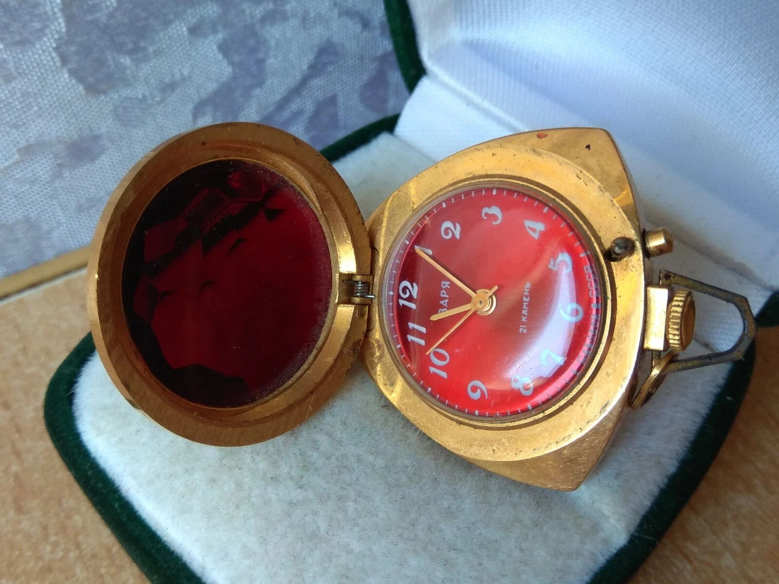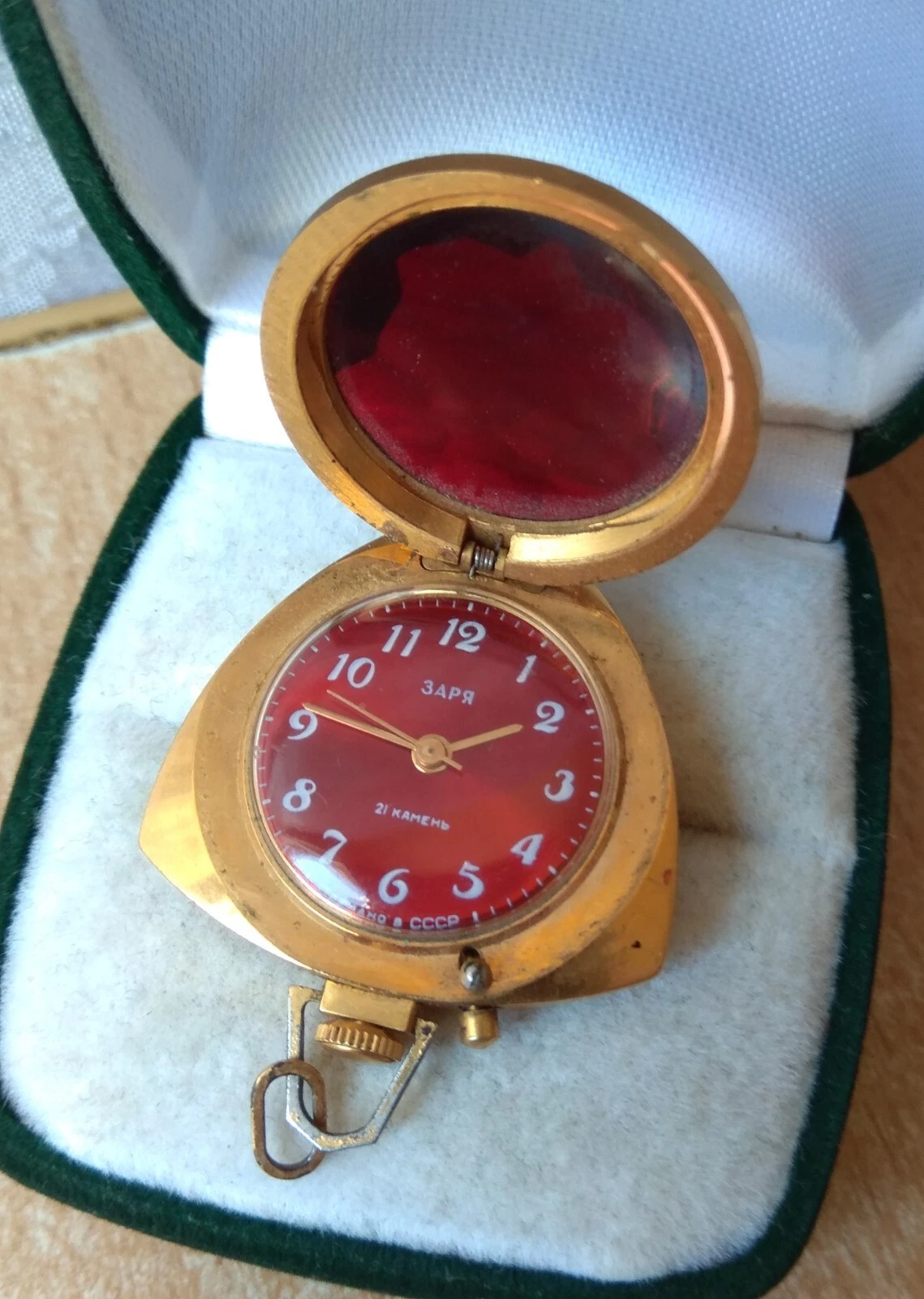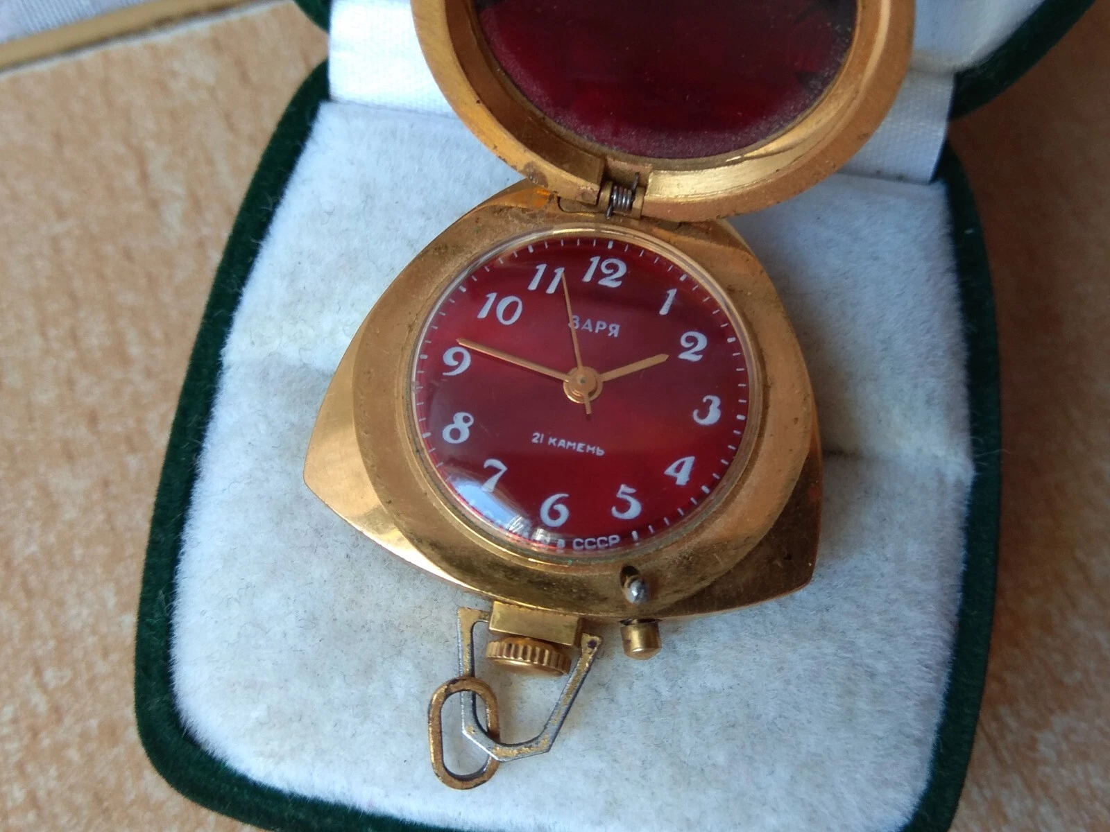 Vintage Soviet POCKET Watch Zarja Pendant Crystal AU5 USSR Gold Plated Zaria