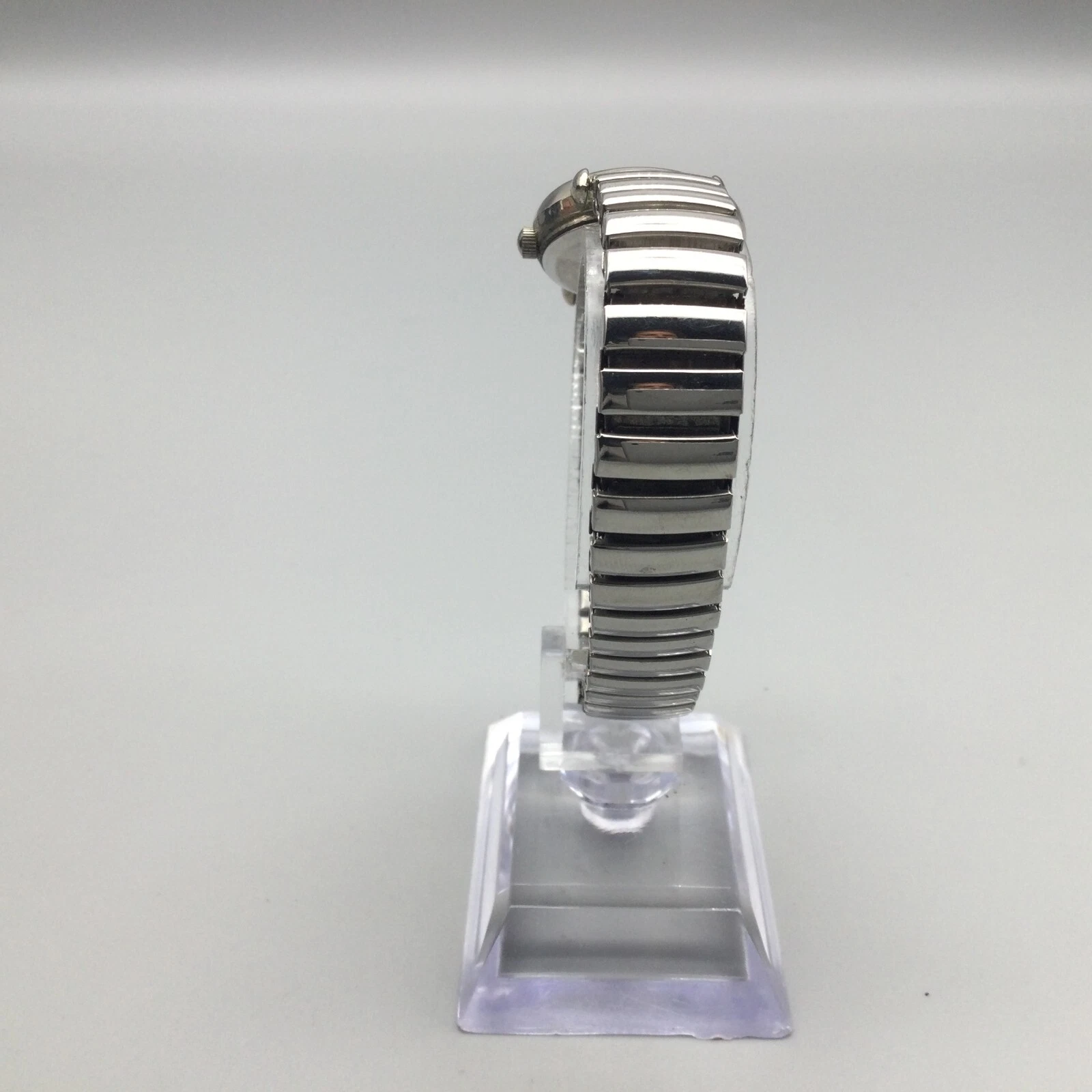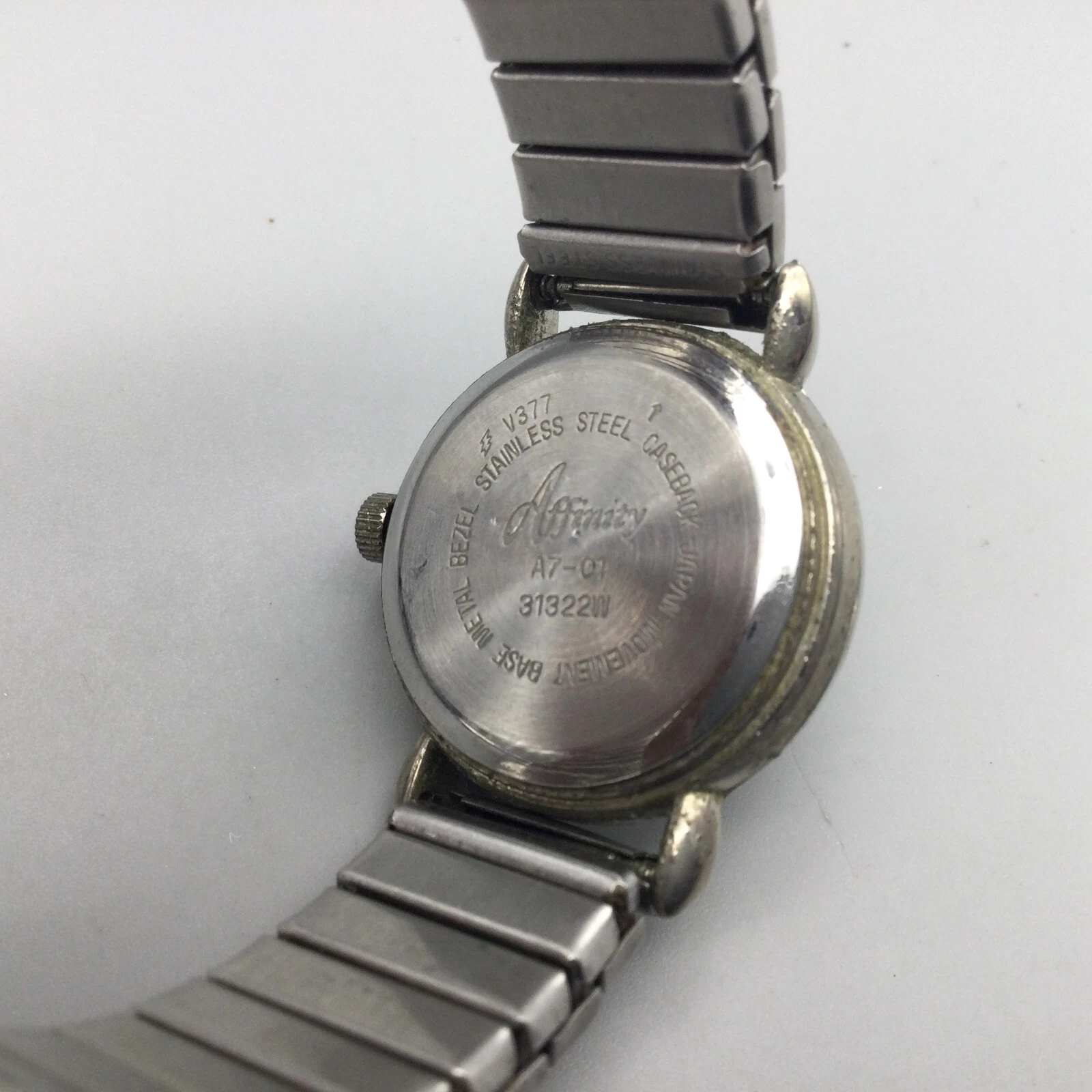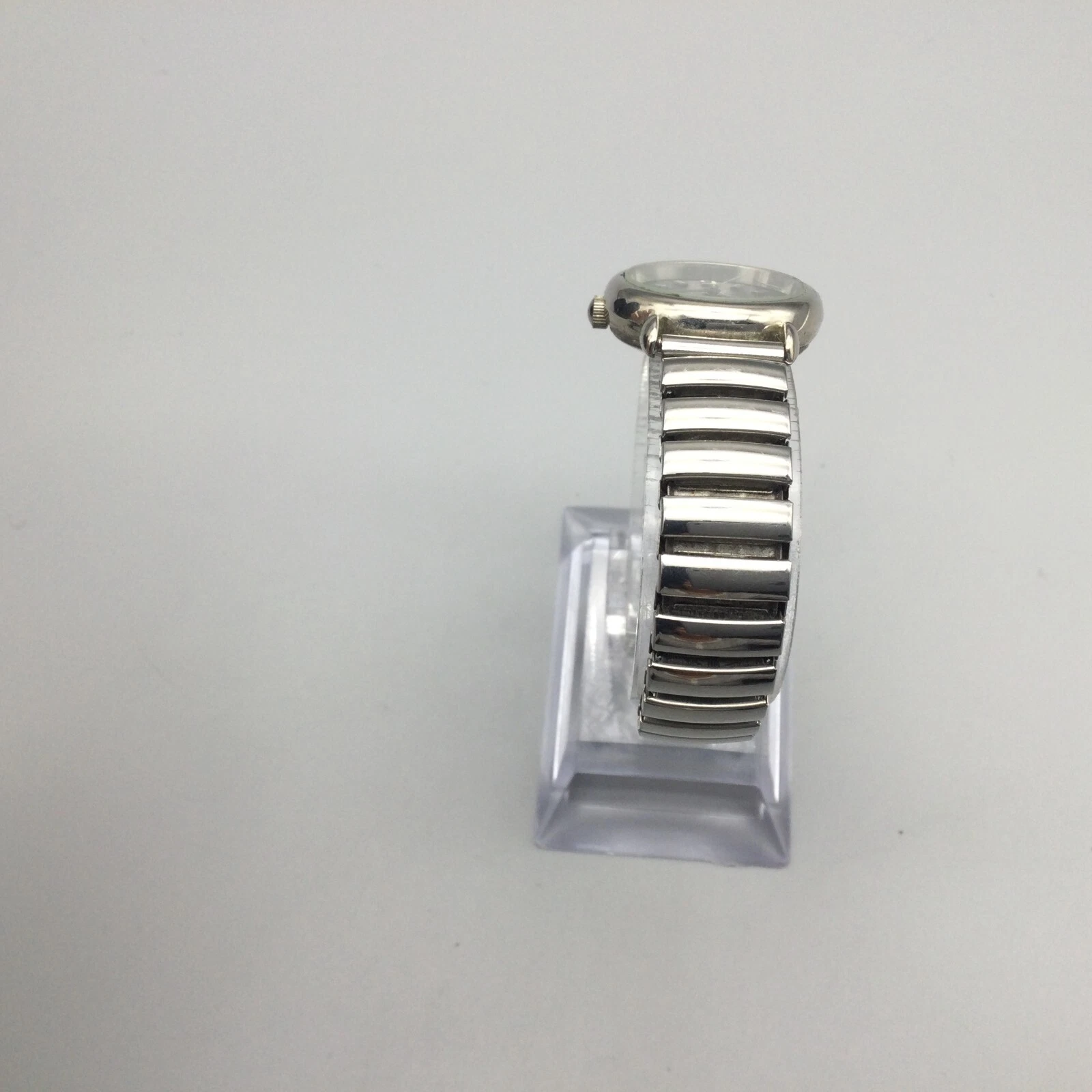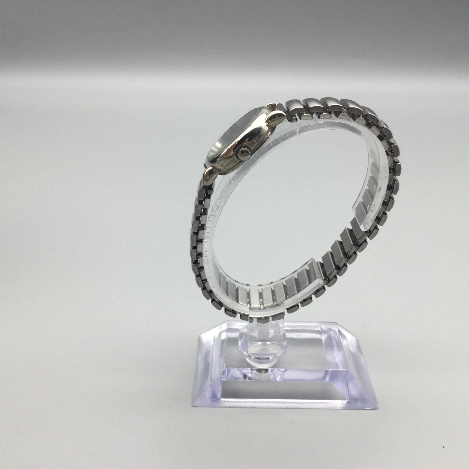 Vintage Affinity Watch Women 23mm Silver Tone Black Dial Stretch New Battery