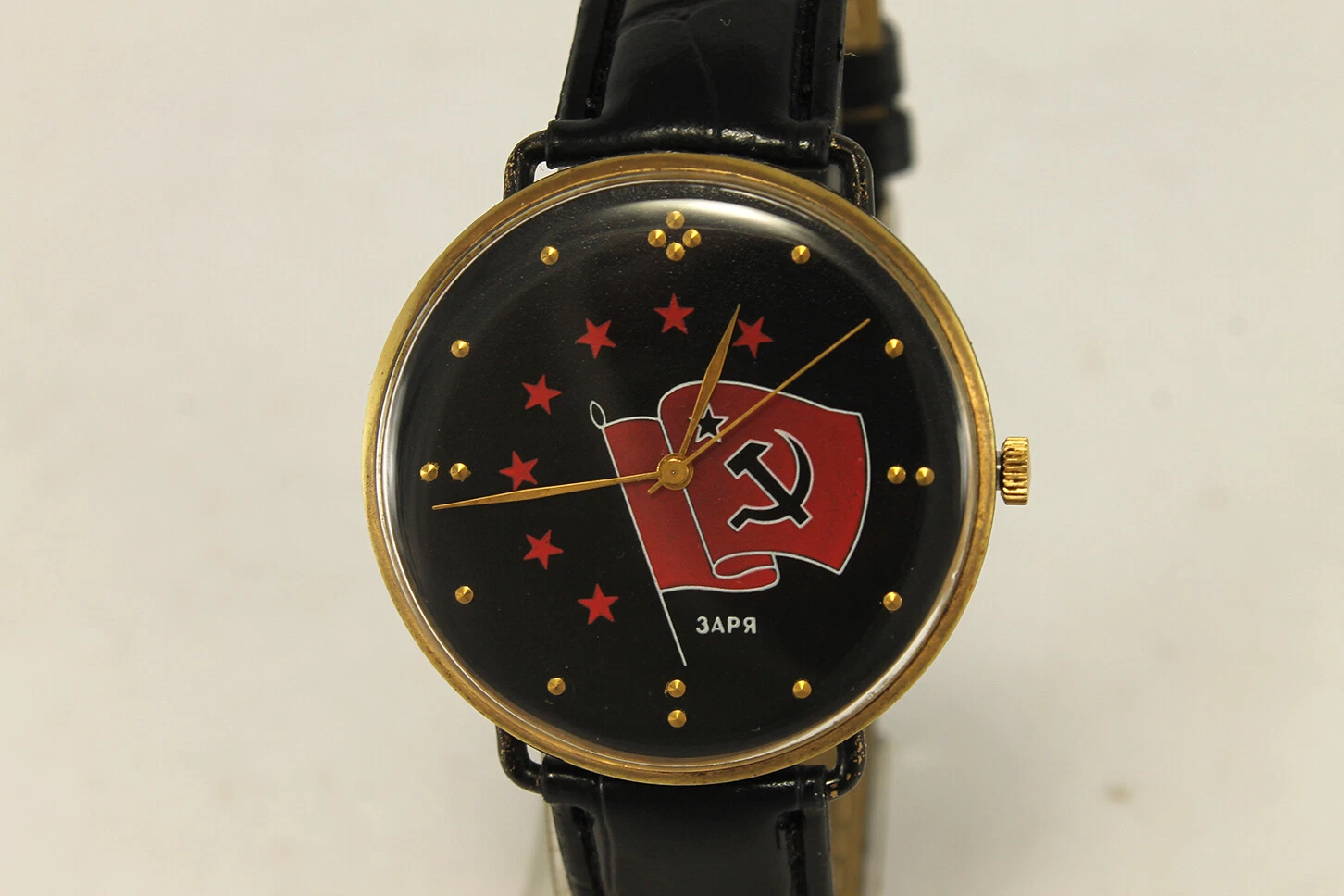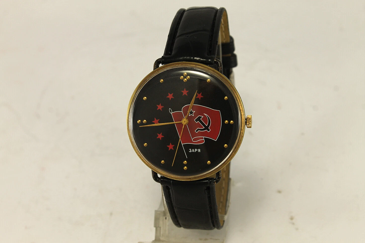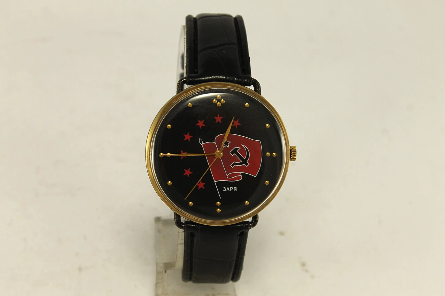 RARE Russian ZARIA 42 mm Russian Flag Hammer & Sickle Wrist Watch 1970's