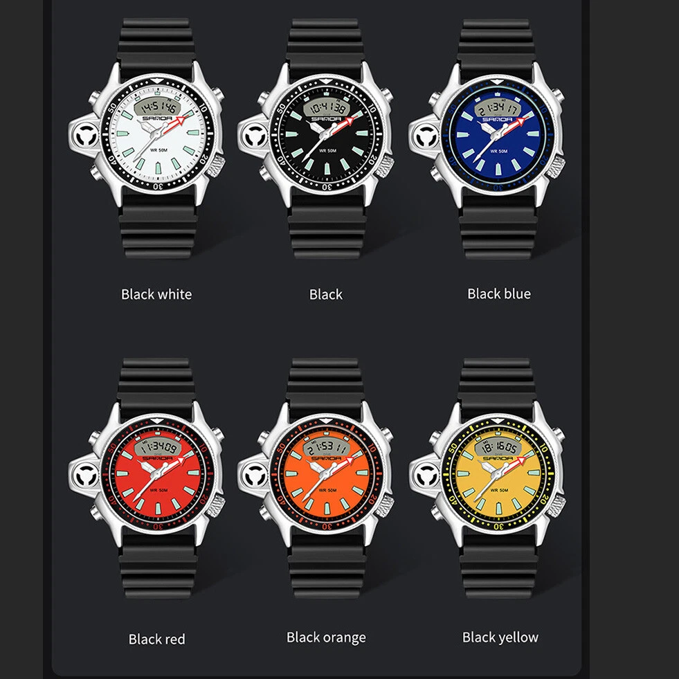SANDA Dual Display Waterproof Chronograph Resin Band Backlight Alarm Watch