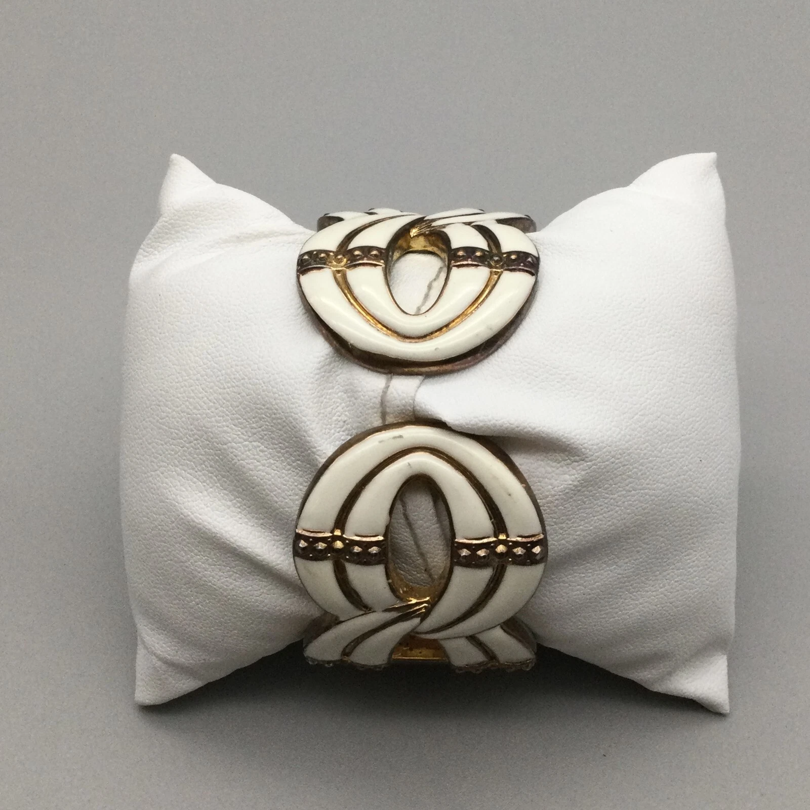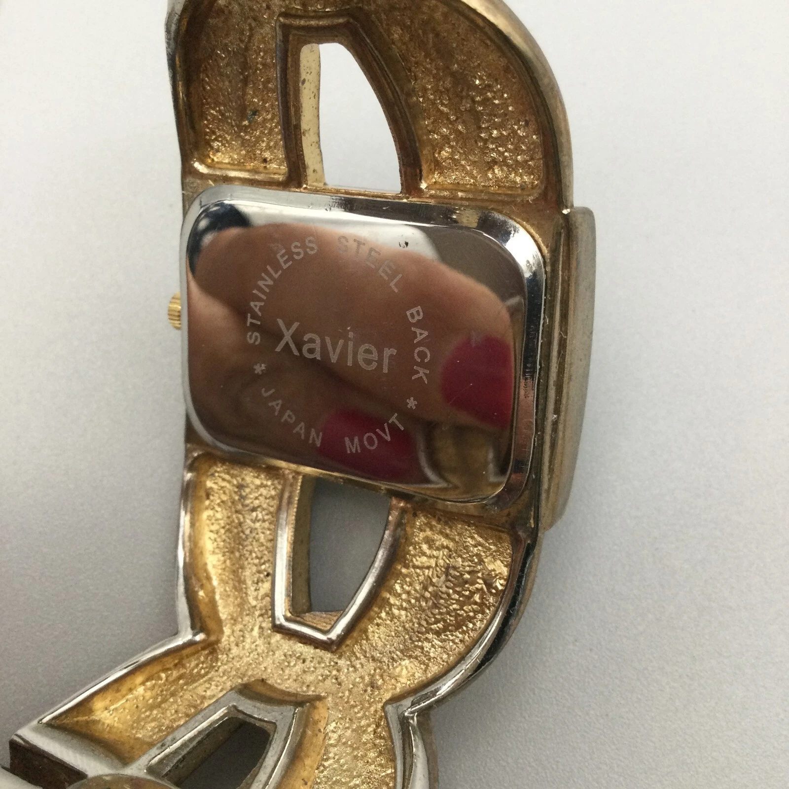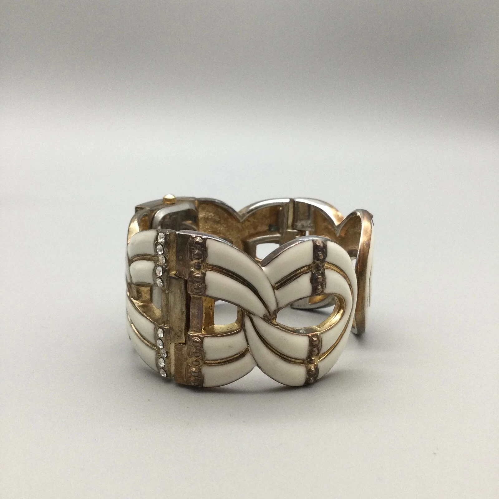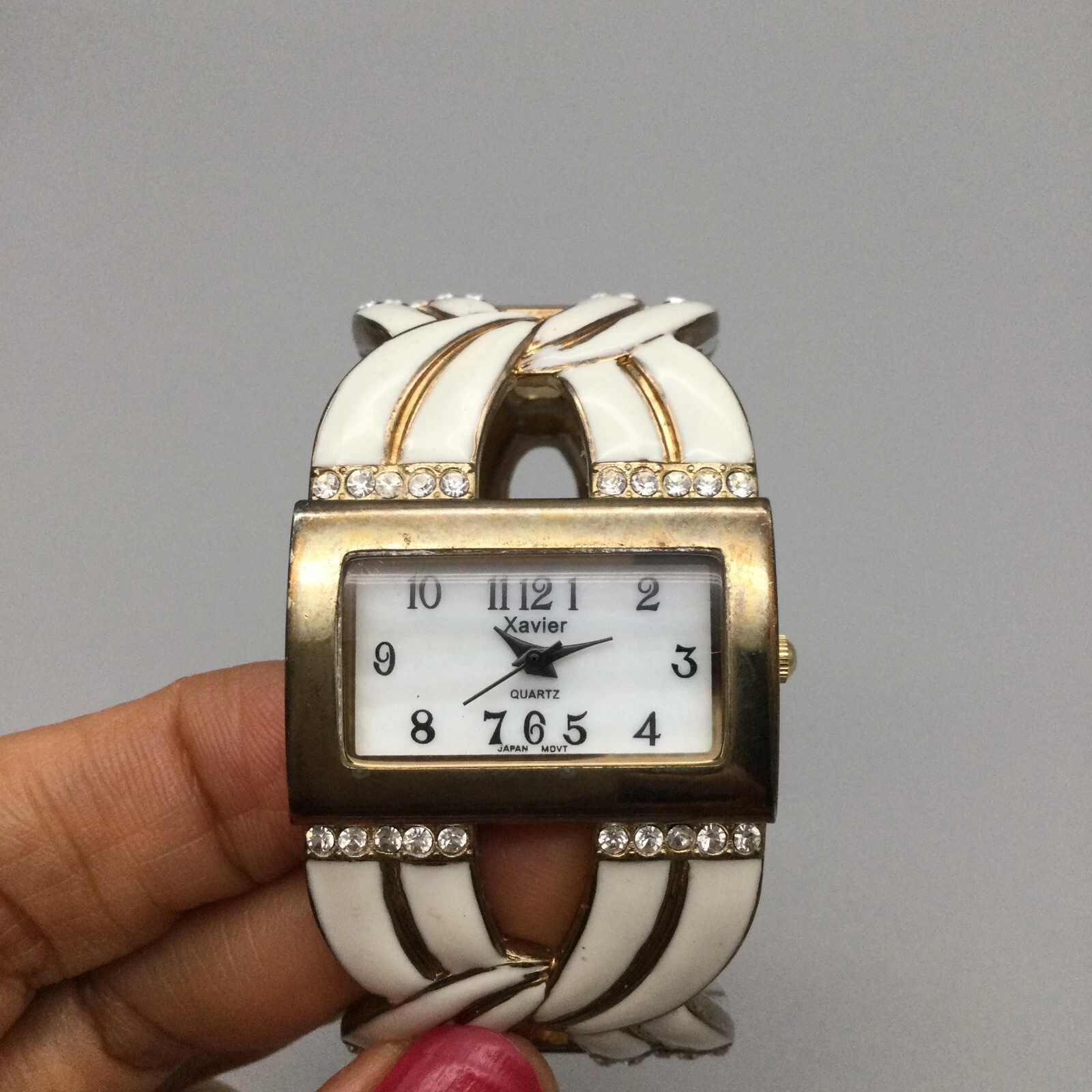 Xavier Watch Women 33mm White Enamel Gold Tone Open Cuff Band New Battery
