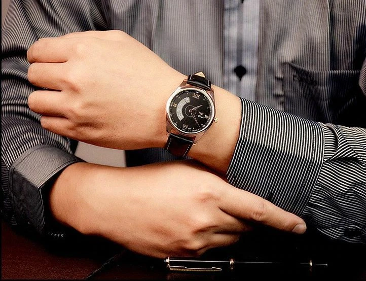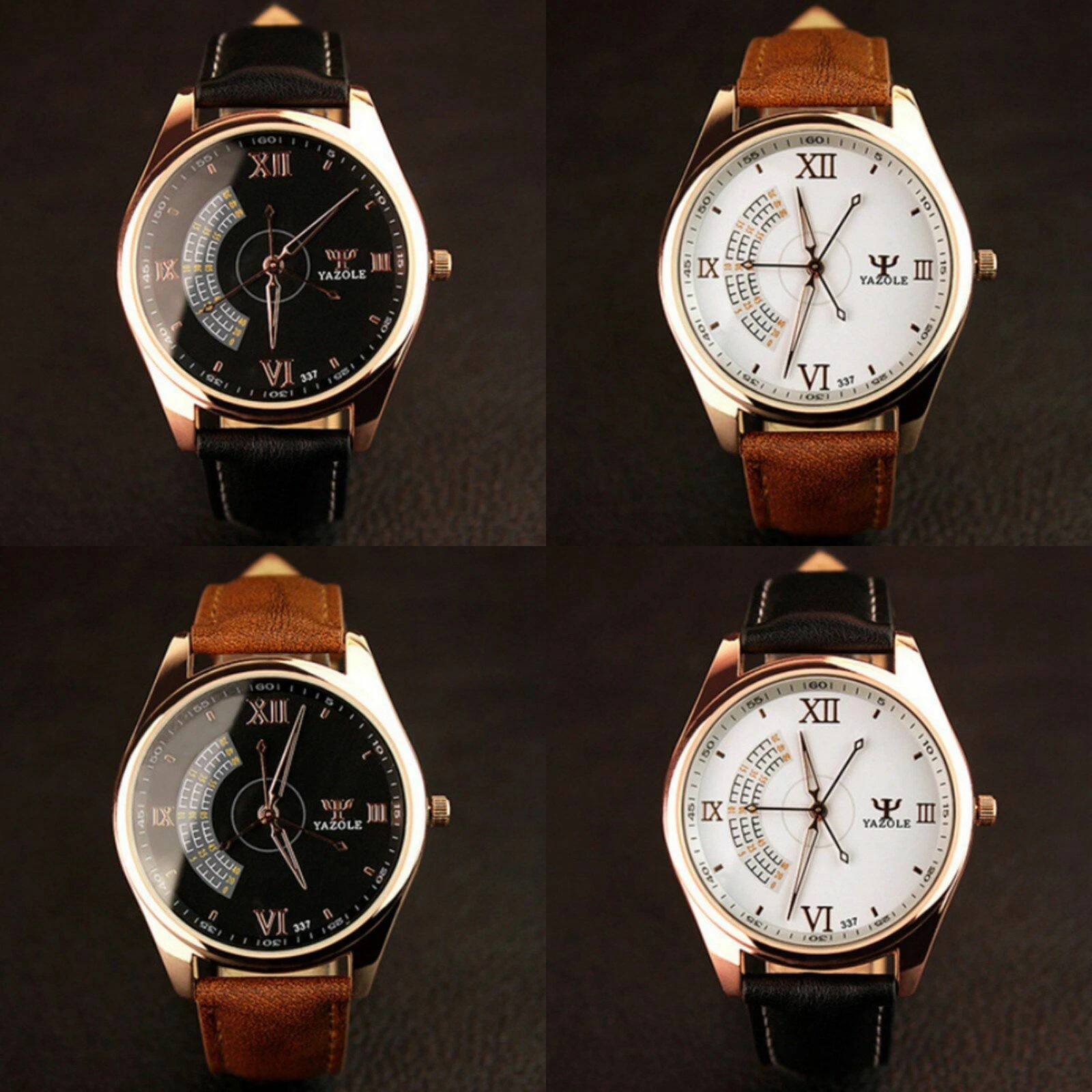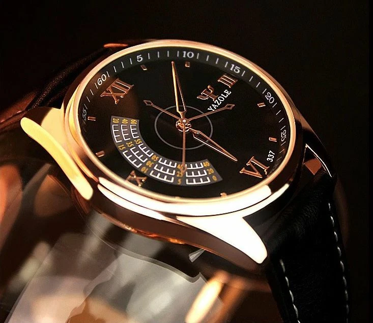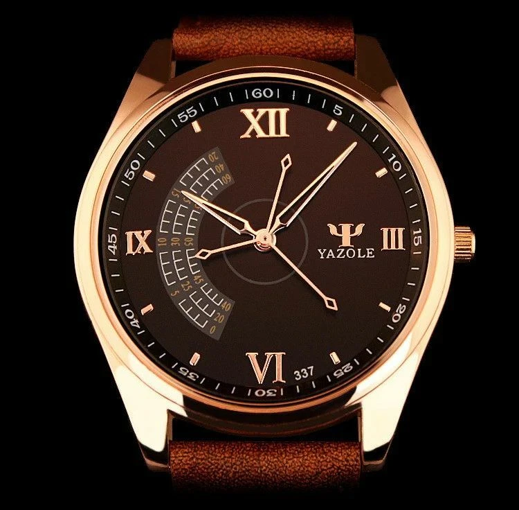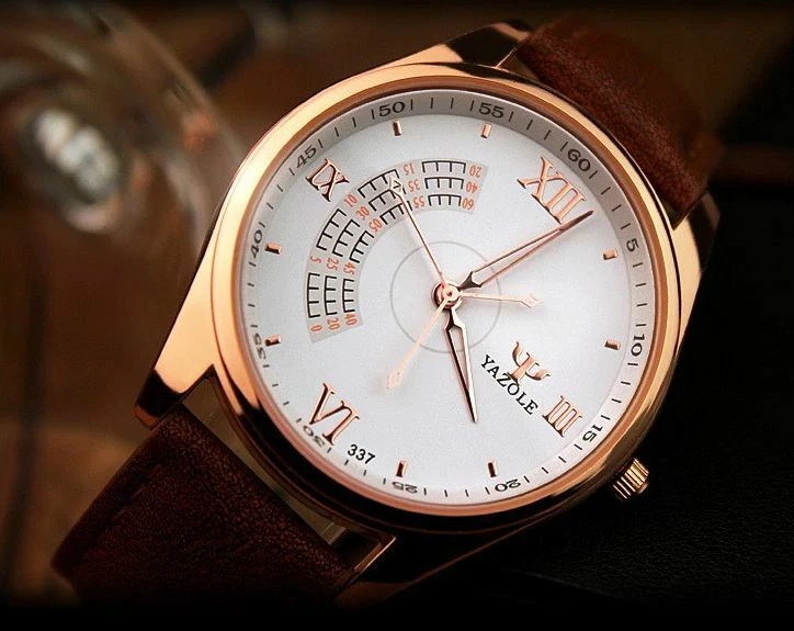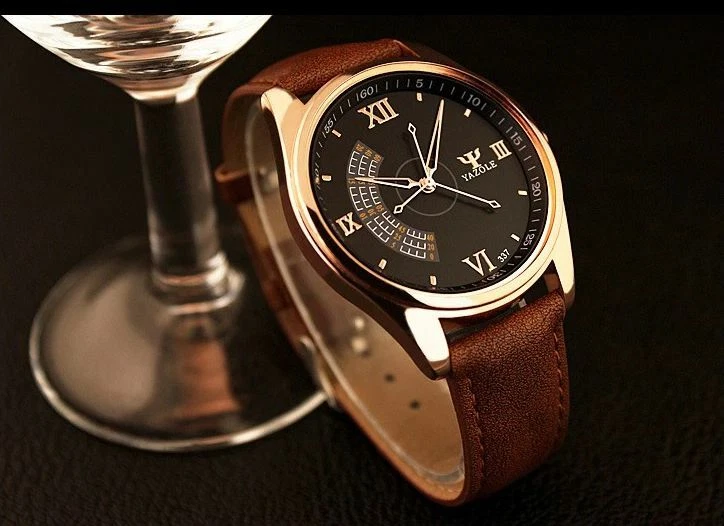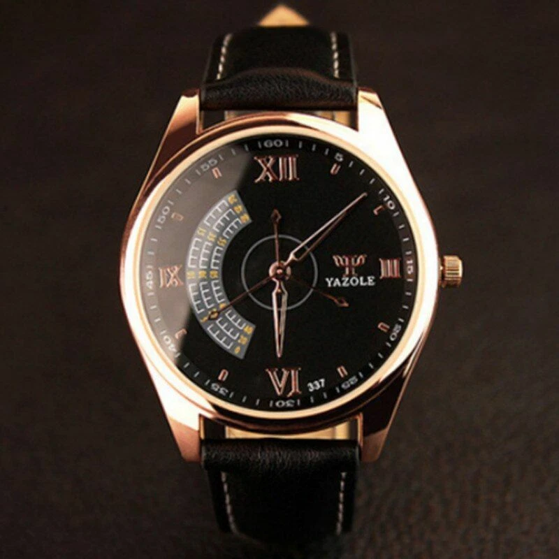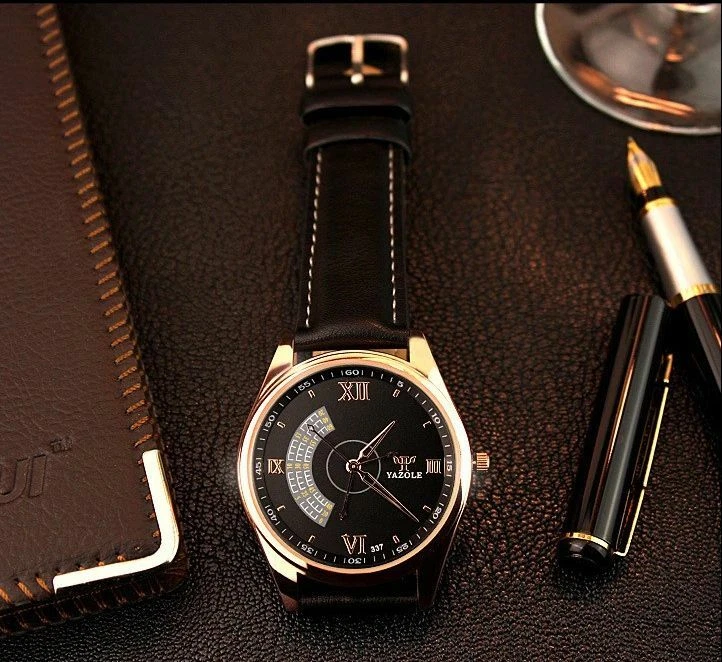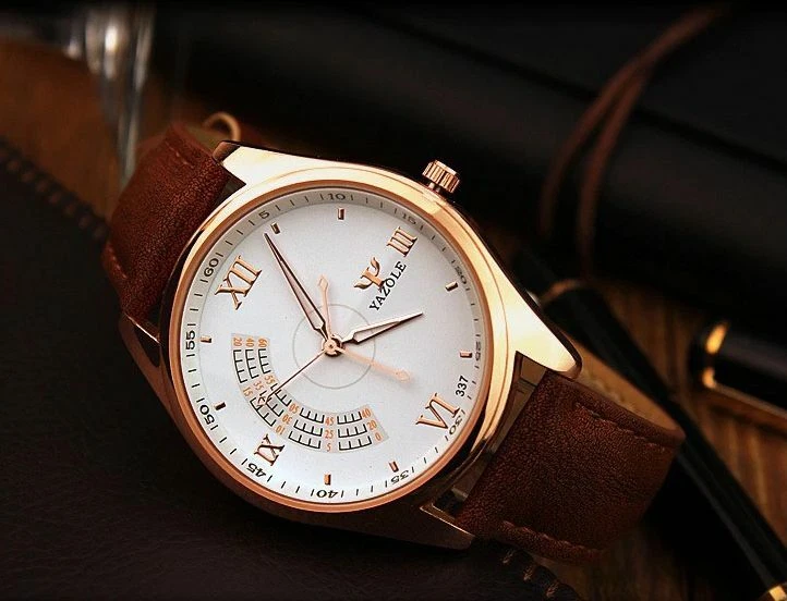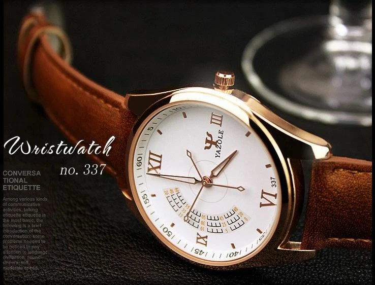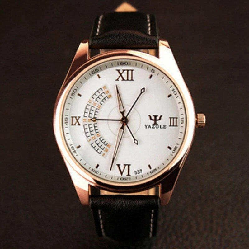 YAZOLE Quartz Stainless Steel Case Leather Strap Round Face Watch