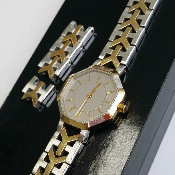 Yves Saint Laurent Vintage Gold Silver Women's Wristwatch 2.3cm Face