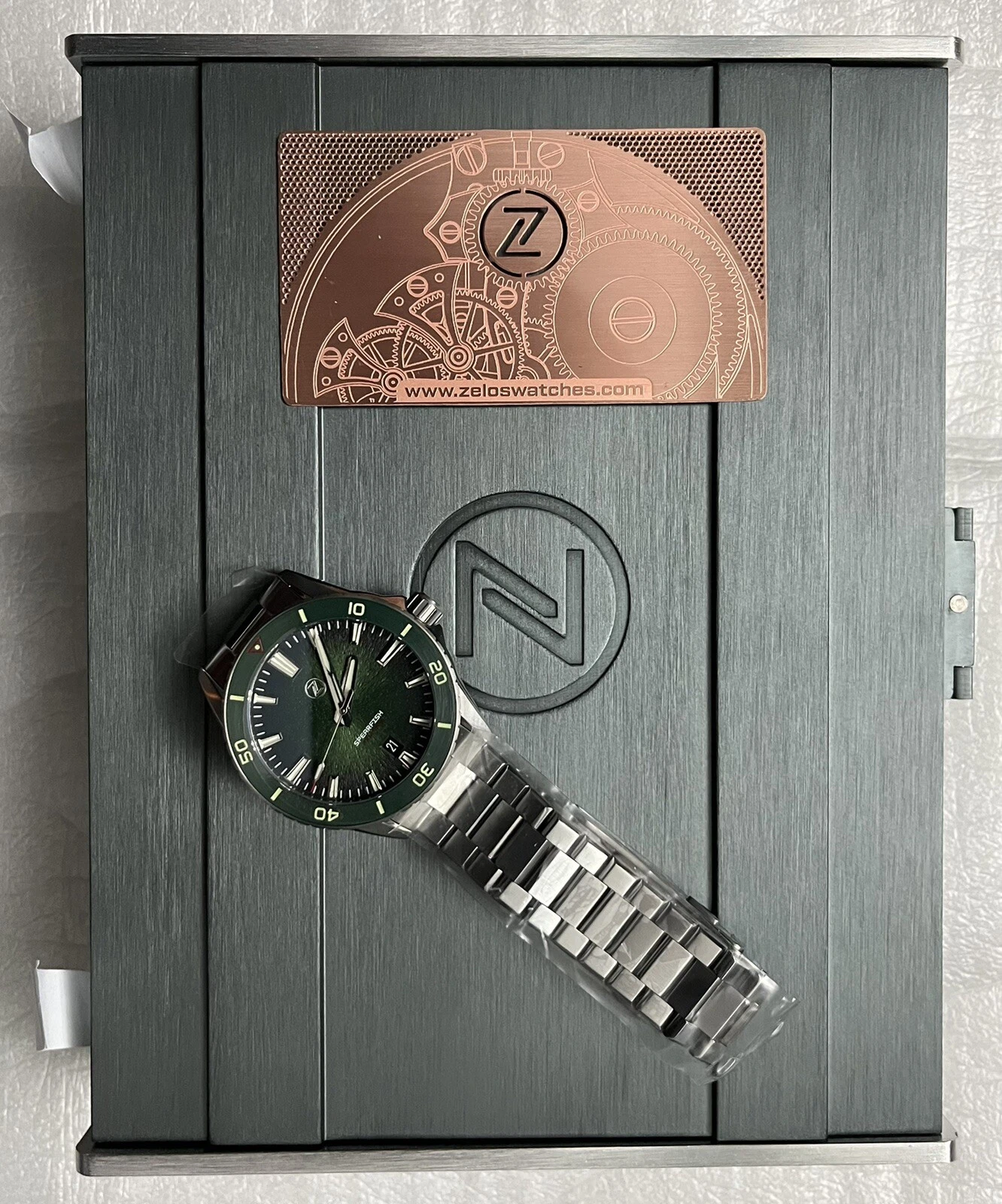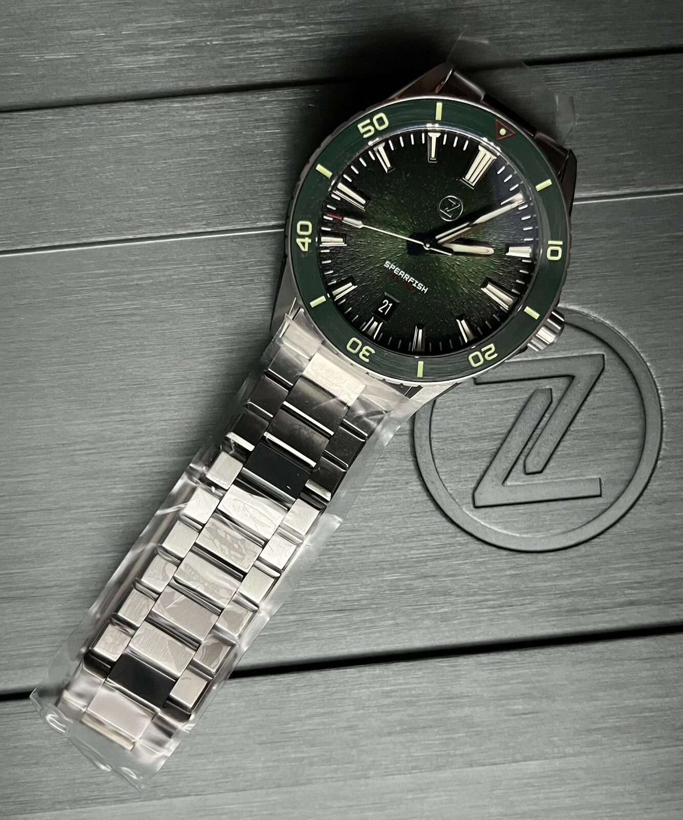New Zelos SPEARFISH 40MM DIVER ANTIQUE GREEN SS 200m Watch - DEALER & WARRANTY