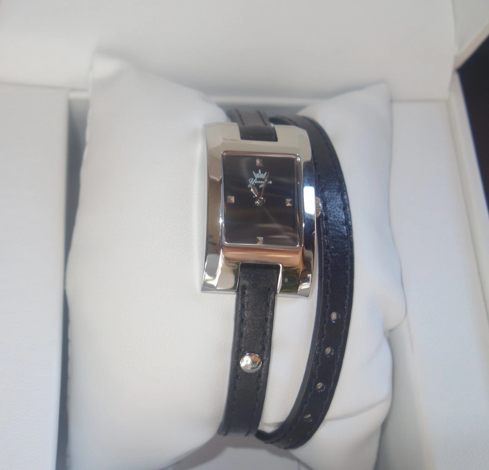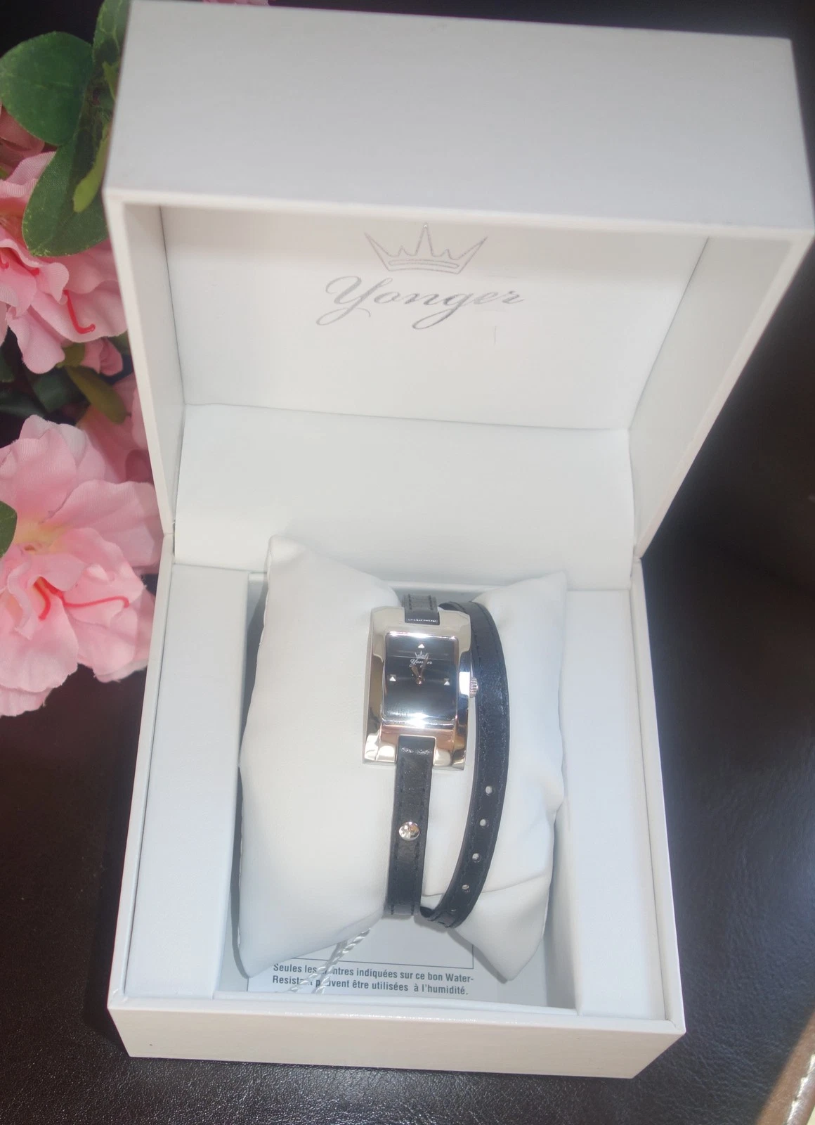 Yonger and Bresson Women's DCC 1469/01 Genuine Black Leather Quartz Watch new