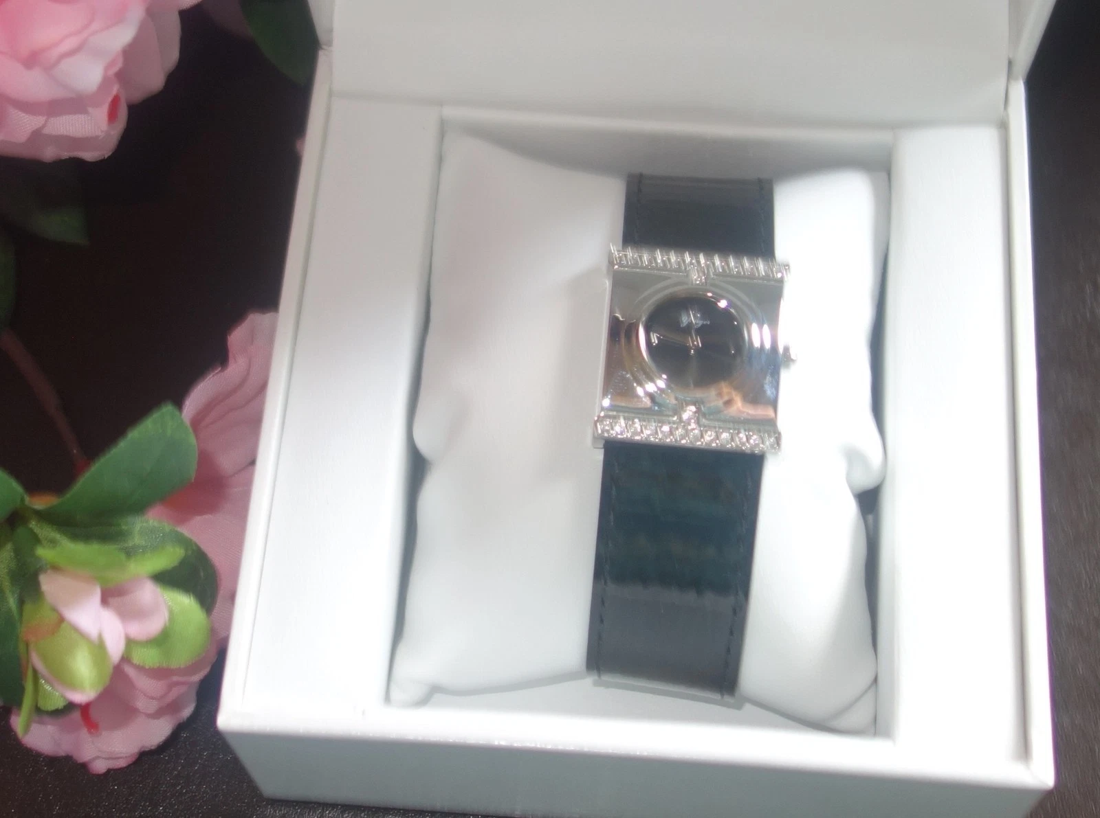 Yonger and Bresson Rectangle Black Leather Crystal Watch DCC 1464/01 new
