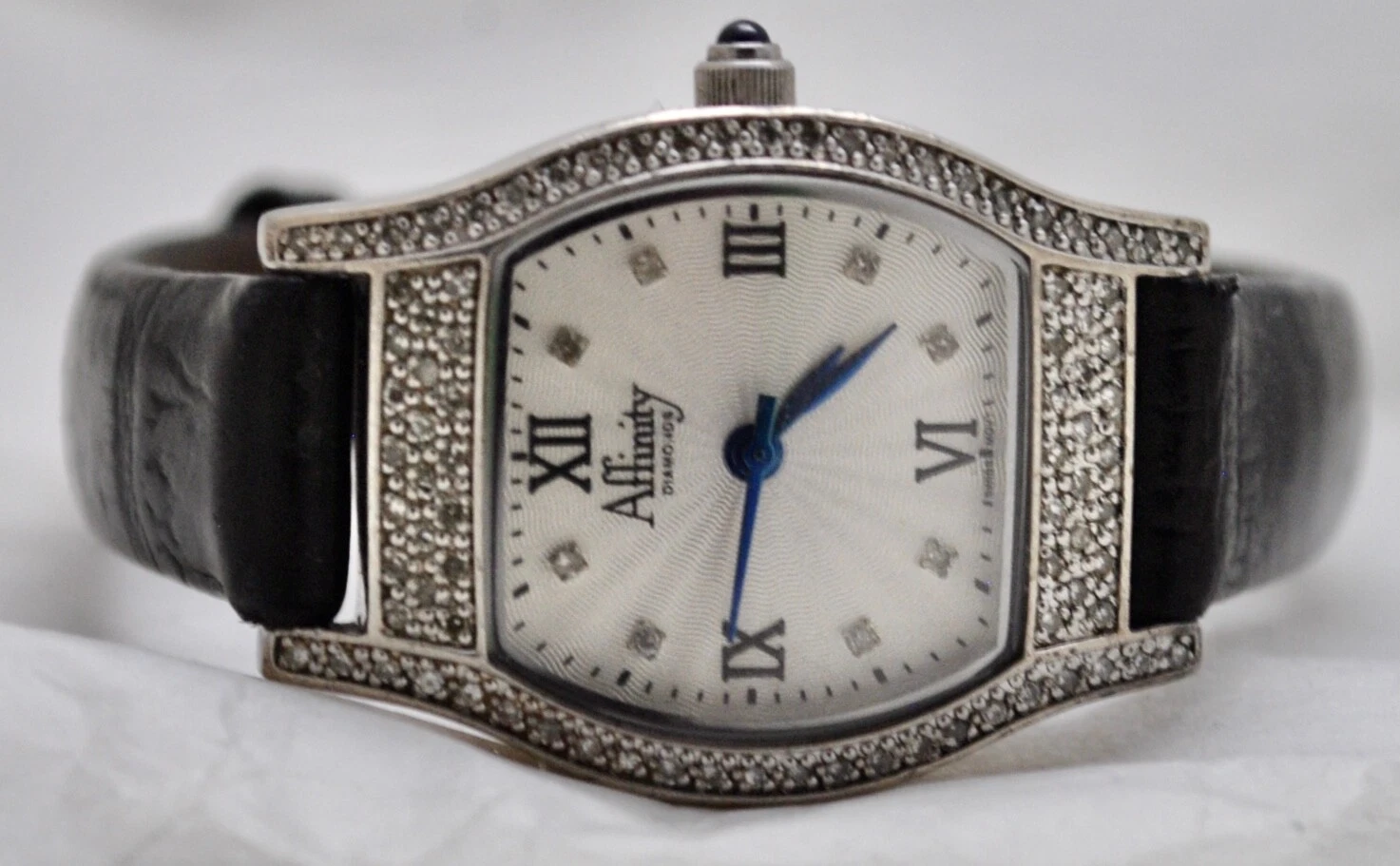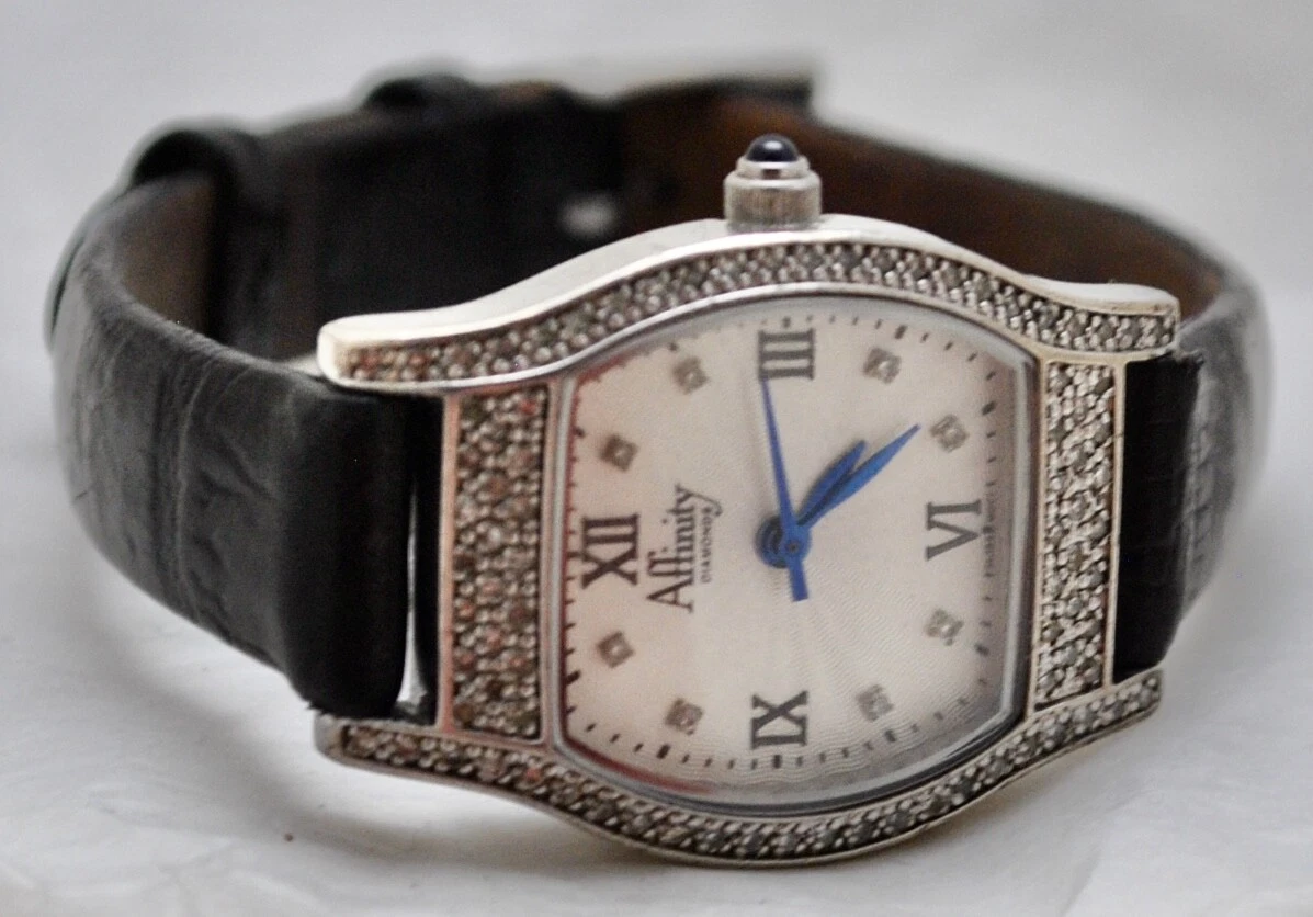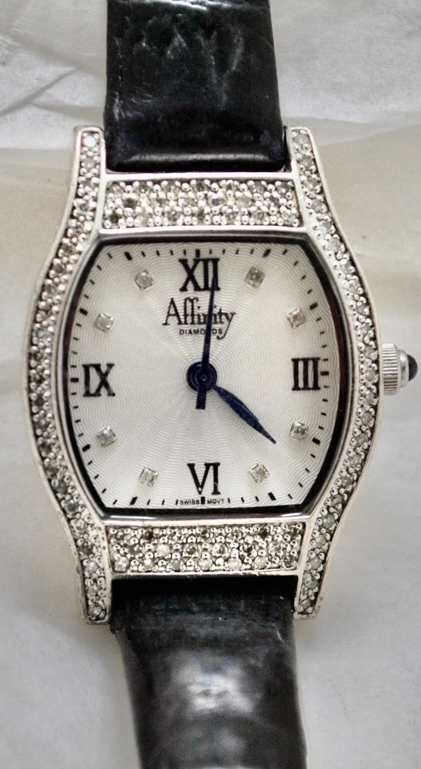 Affinity Sterling Silver .40 CTTW Pave Diamond Watch Black Leather Band