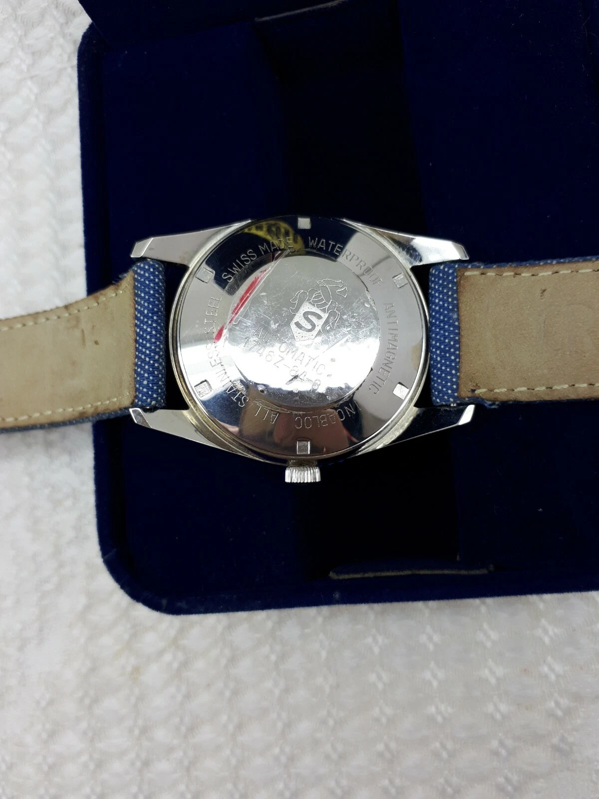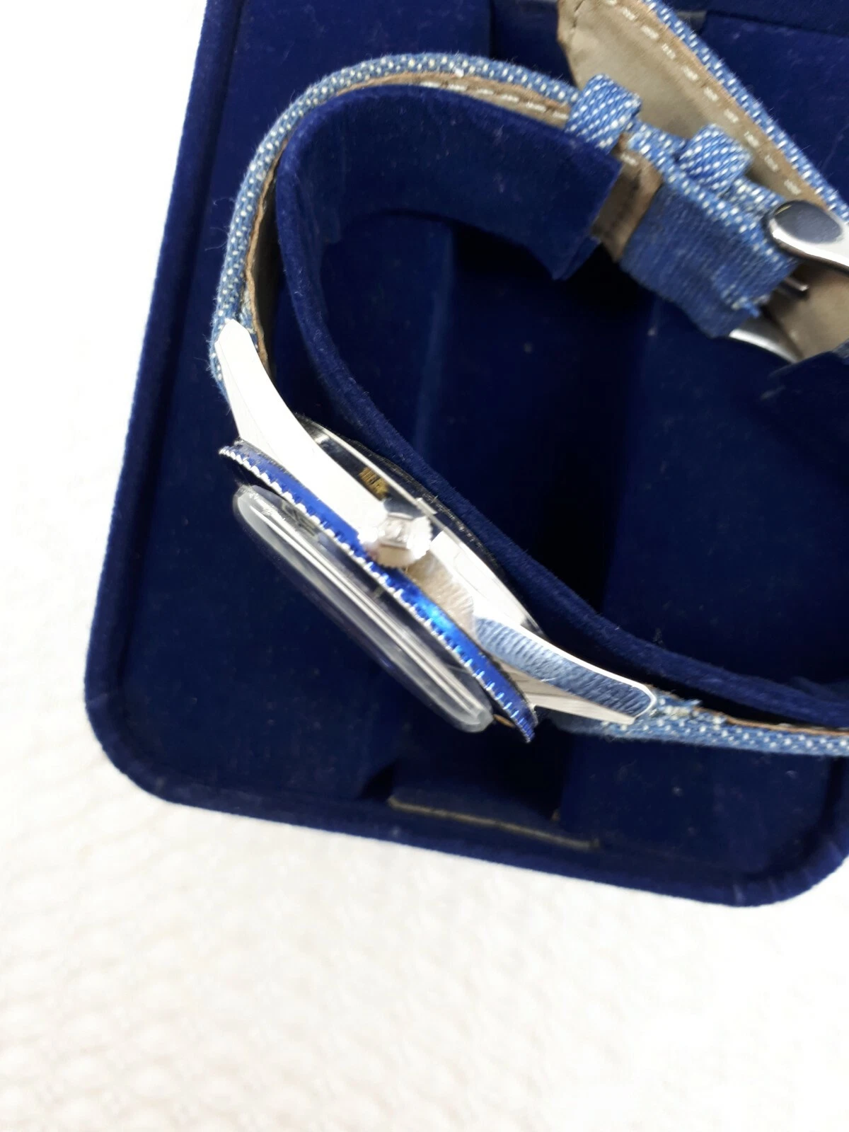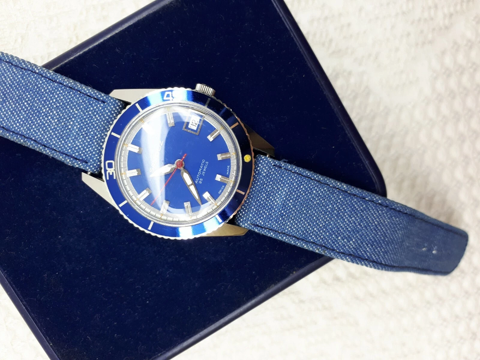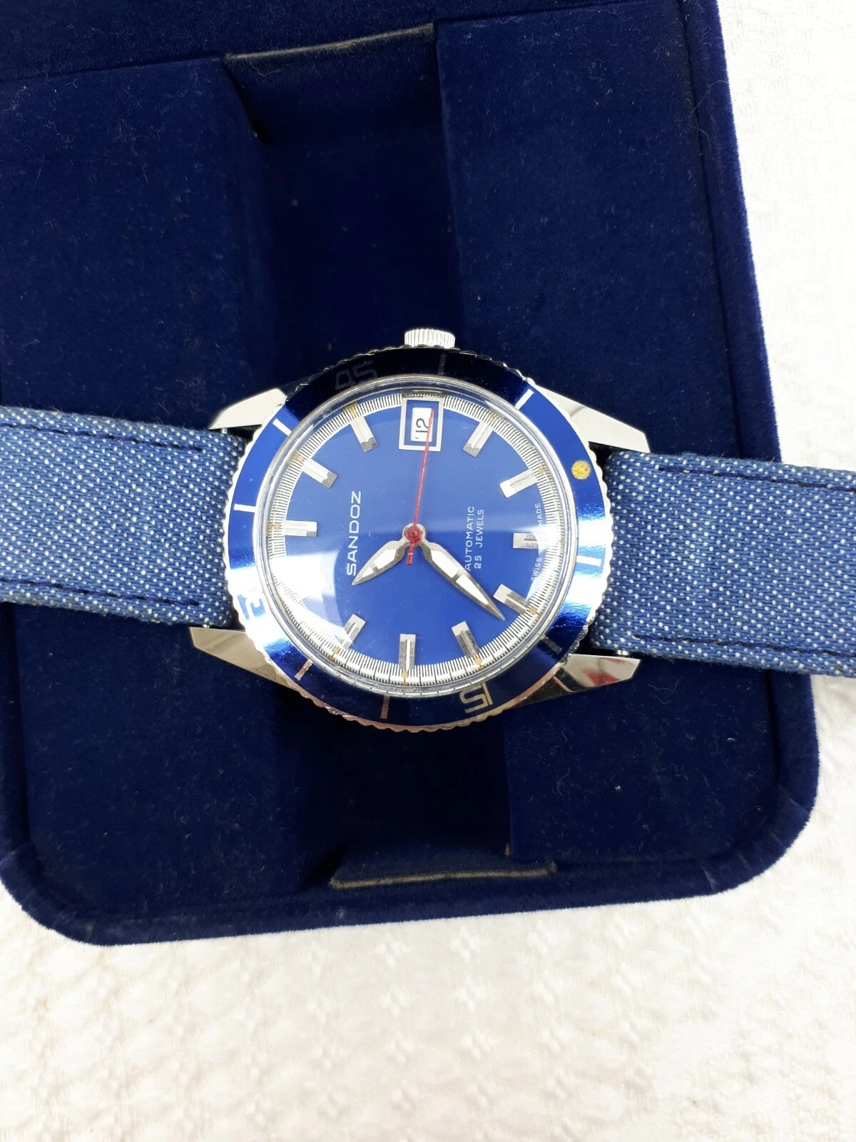 NOS SANDOZ AUTOMATIC BLUE DIAL RARE MEN’S WATCH SWISS DATE ROTATE BEZEL DIVER