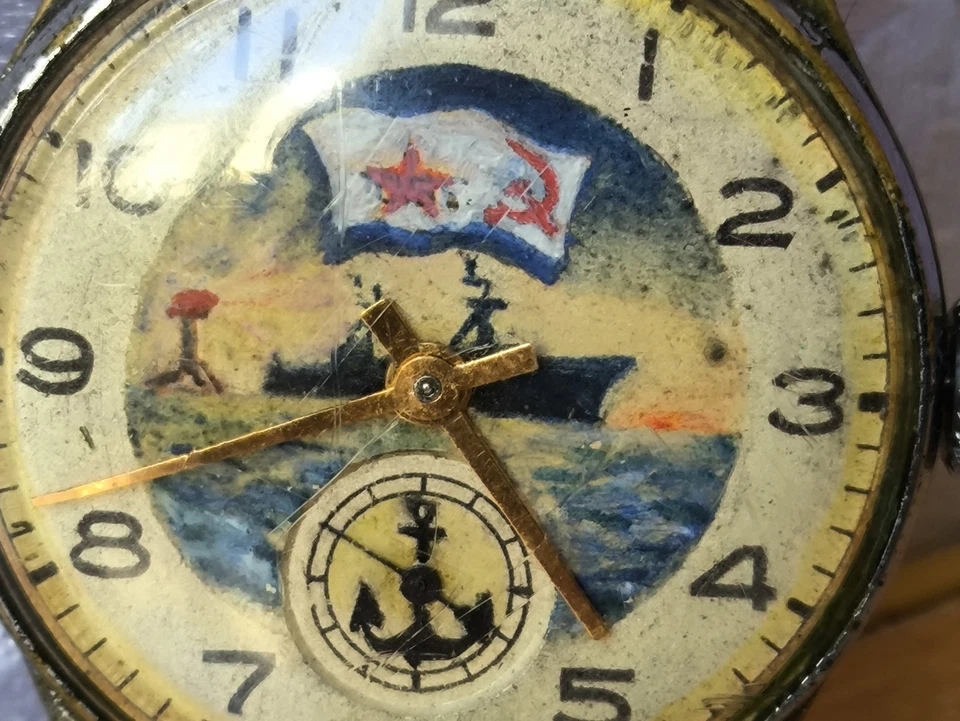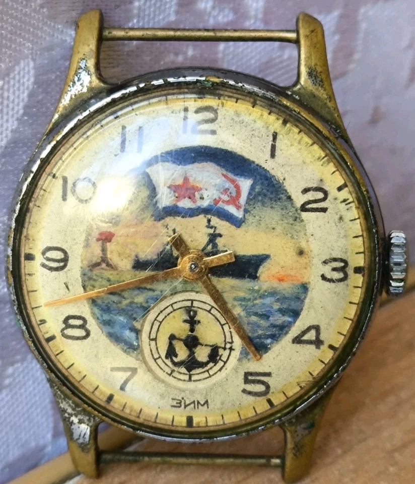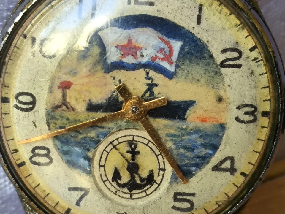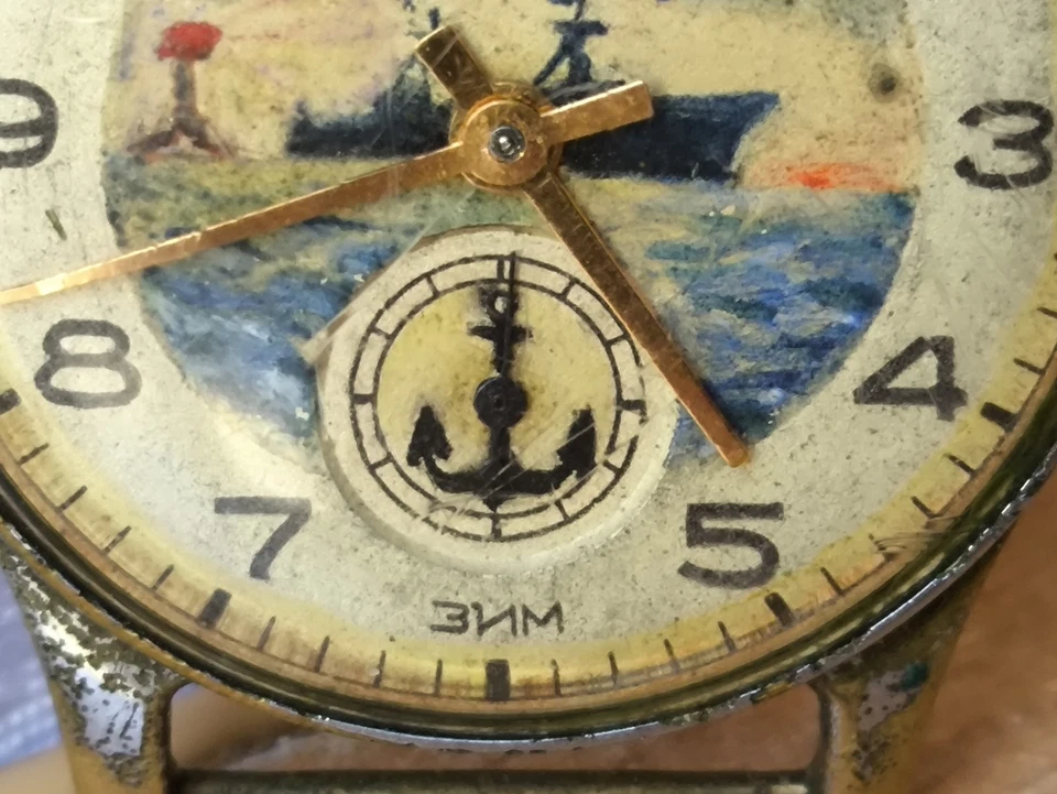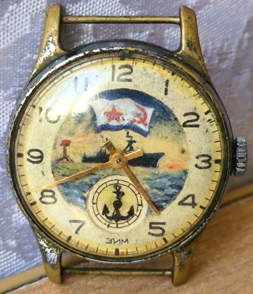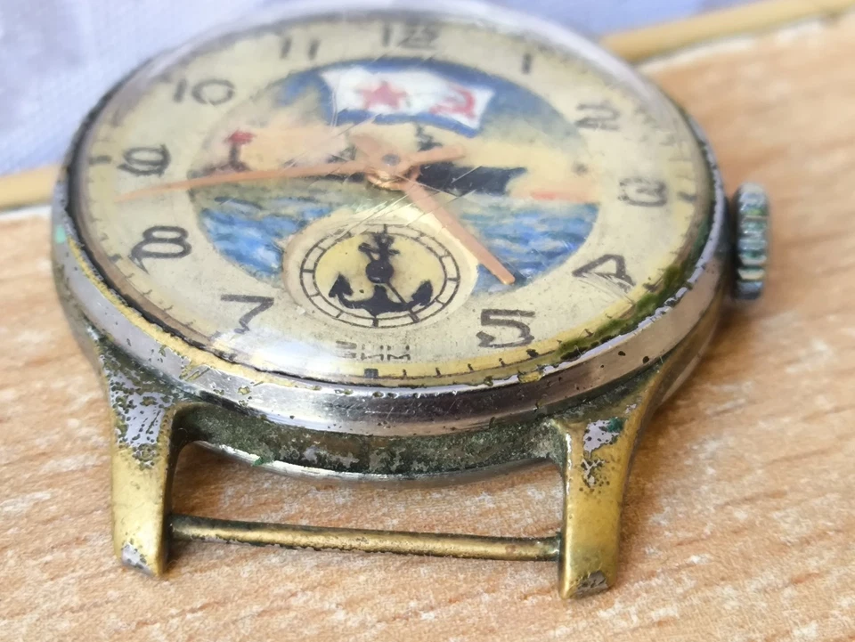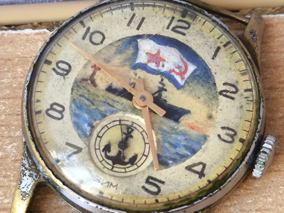 Vintage WATCH navy Mens Handmad Painting ship Landscape sea USSR СССР Soviet zim