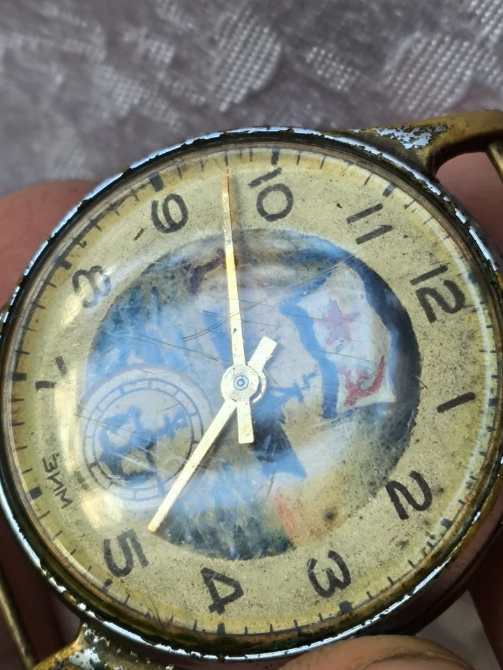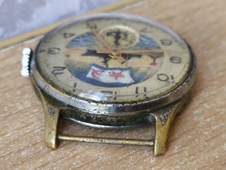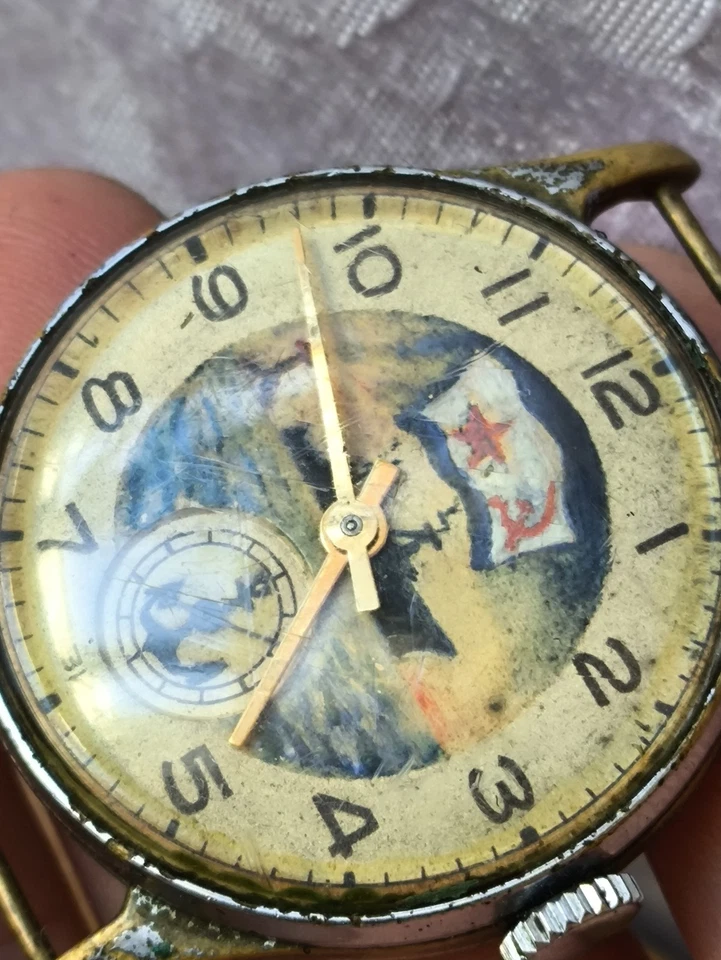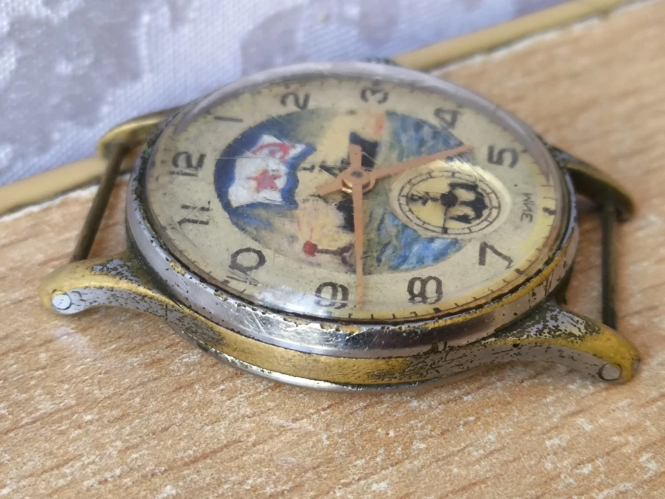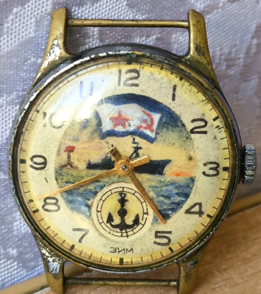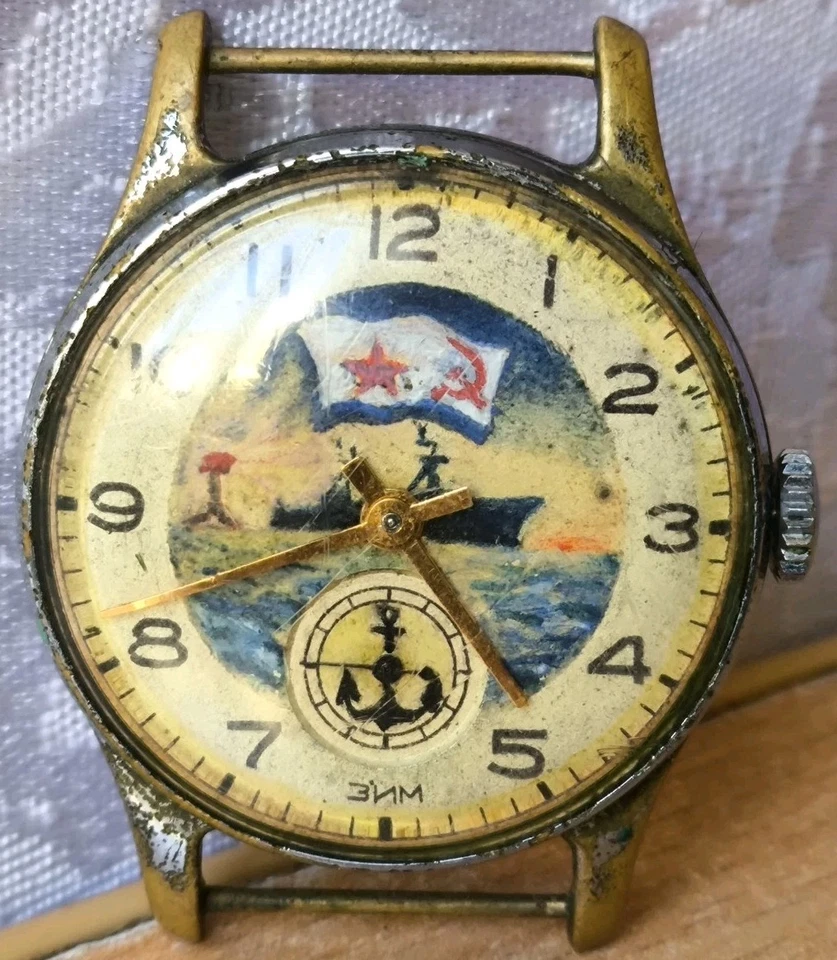 Vintage WATCH navy Mens Handmad Painting ship Landscape sea USSR СССР Soviet zim
