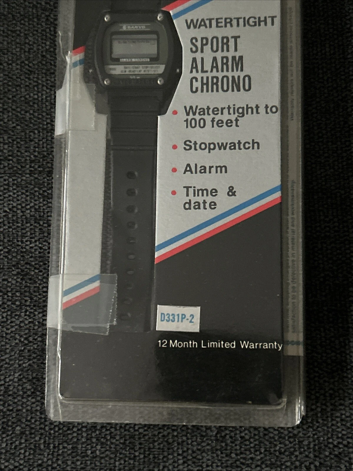 VINTAGE QUARTZ SANYO WATCH (1980’s) WATERTIGHT New Sport Alarm Chrono Sealed