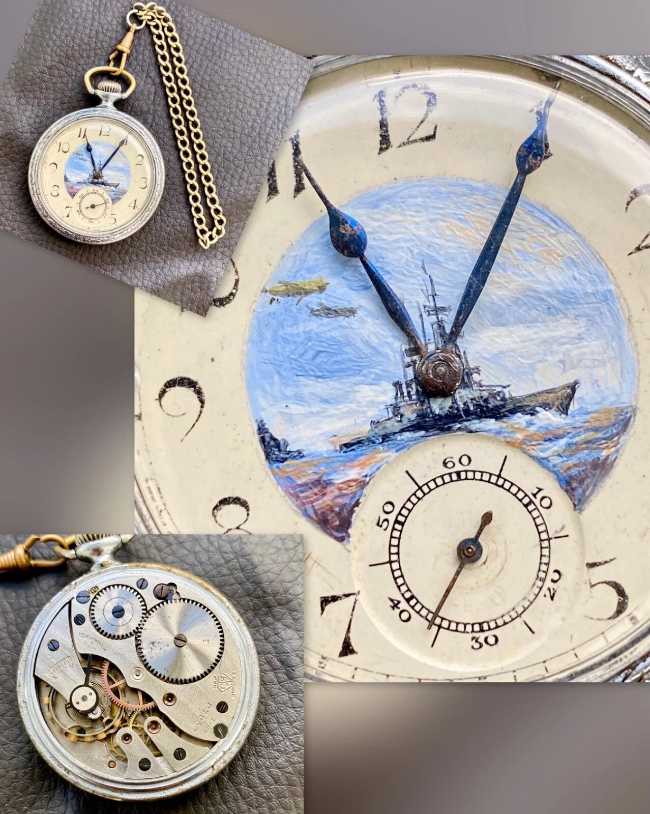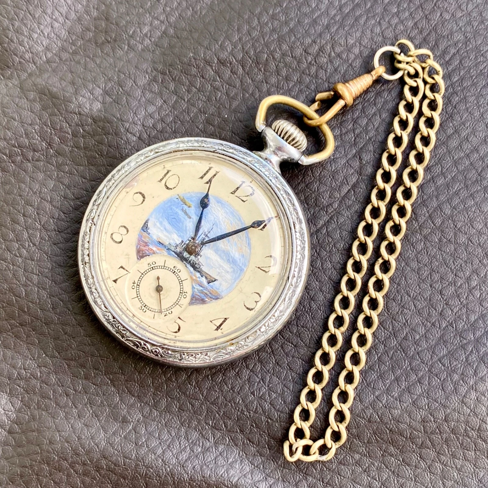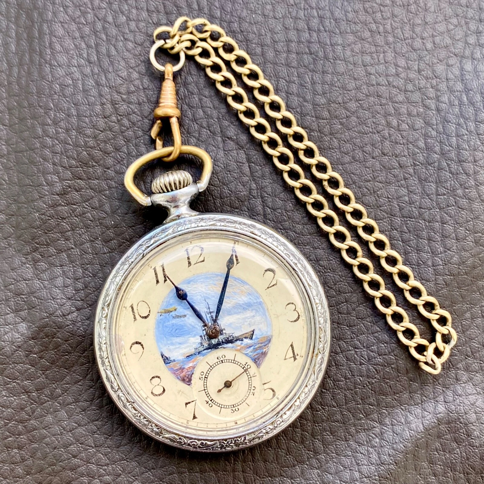 ❗️Vintage Pocket Watch from 1940 ❗️ Unique drawing CRUISER ‼️After SERVICED
