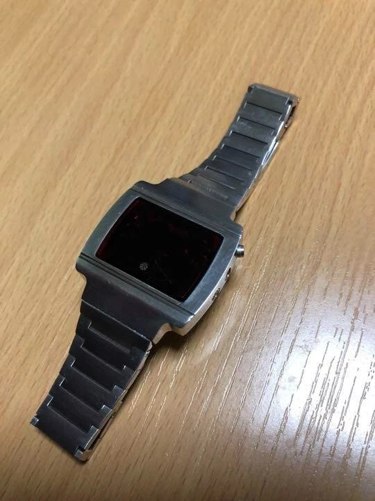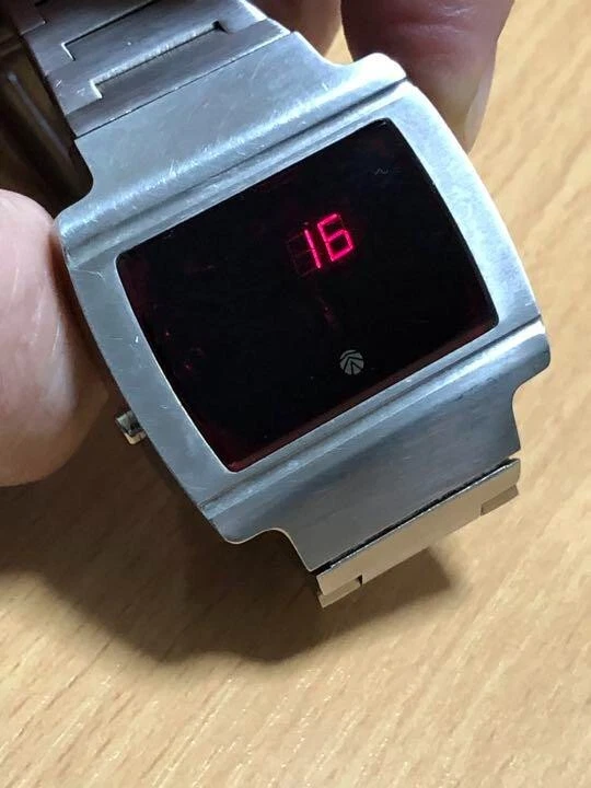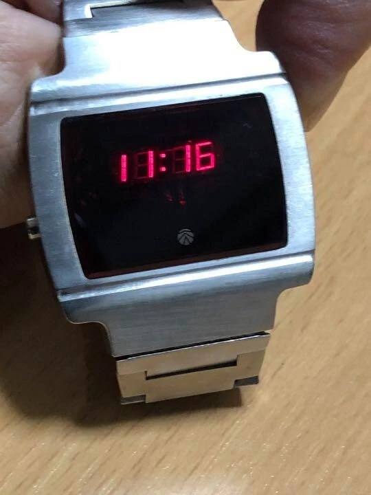 Sanyo LED Digital Wrist Watch Quartz Silver Stainless Band Vintage 1976 Mens JPN