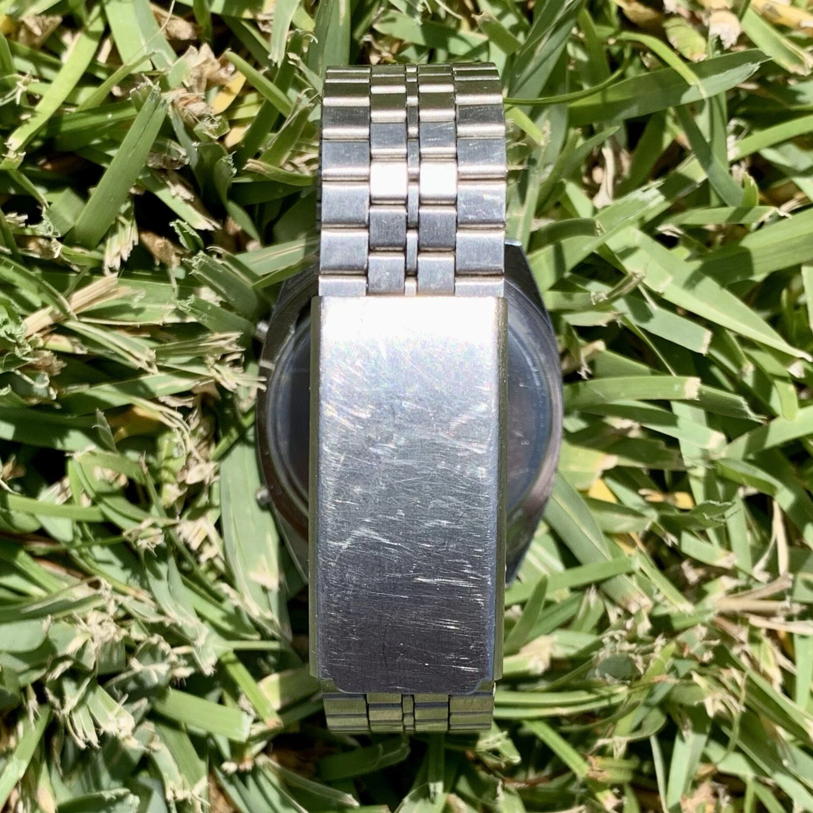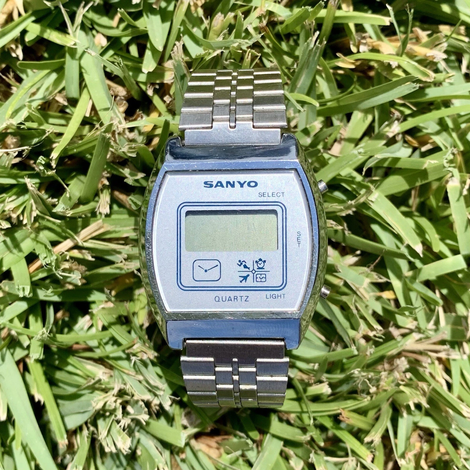 Vintage Sanyo Silver Digital Wrist Watch Rare Chrome Quartz Stainless Steel