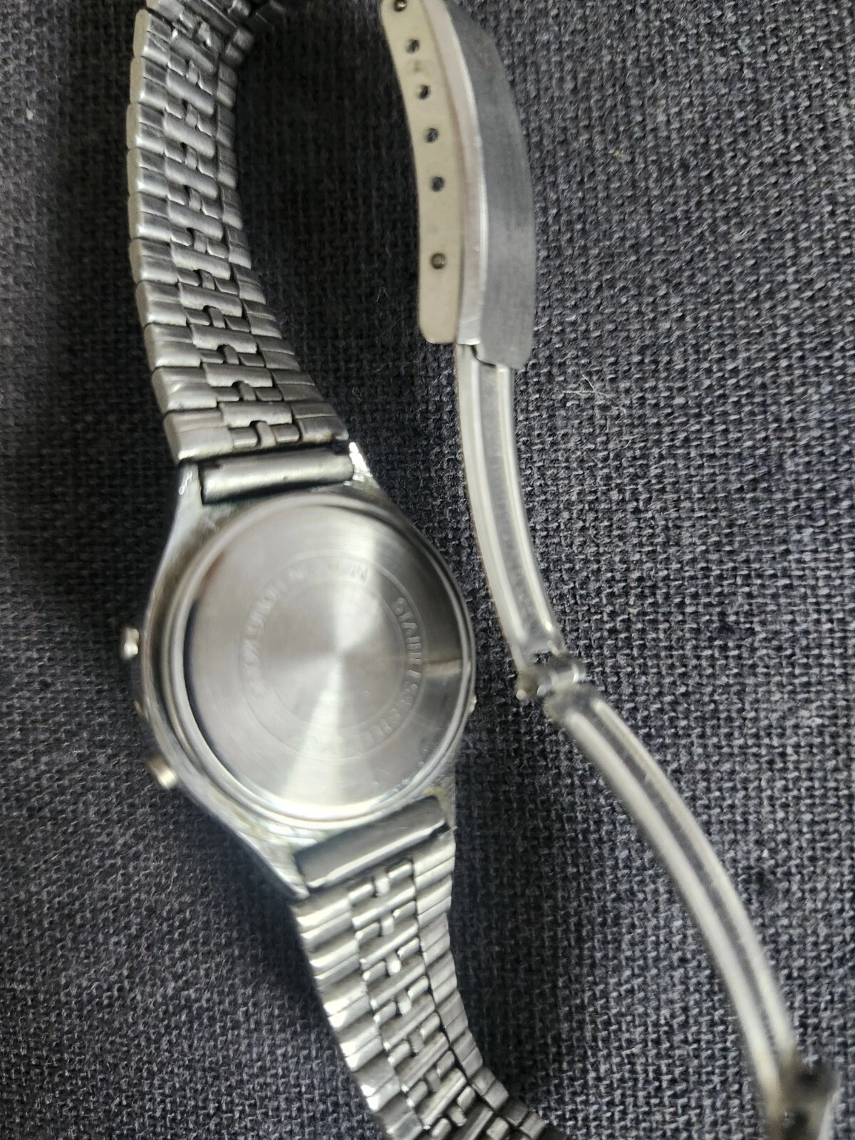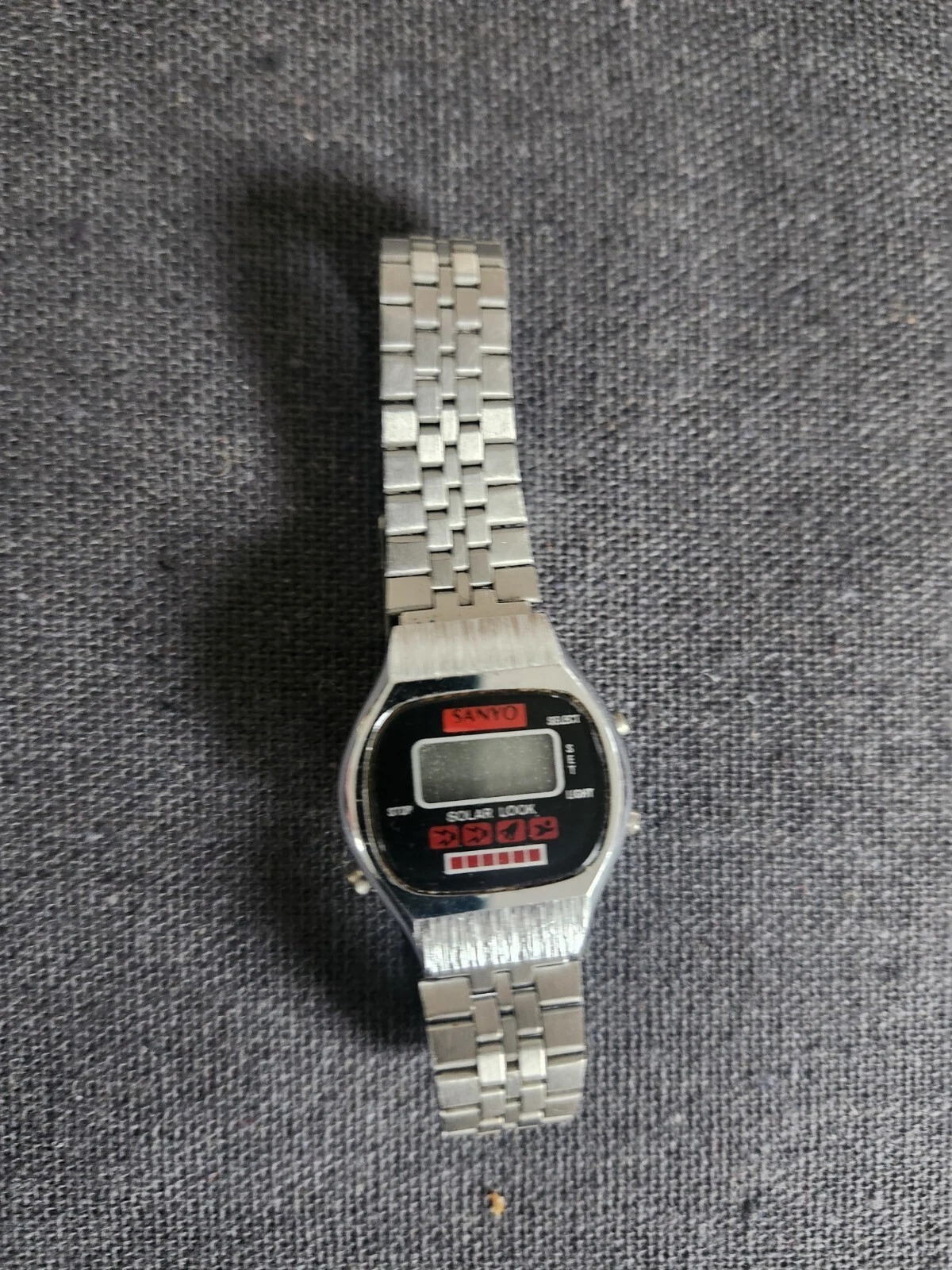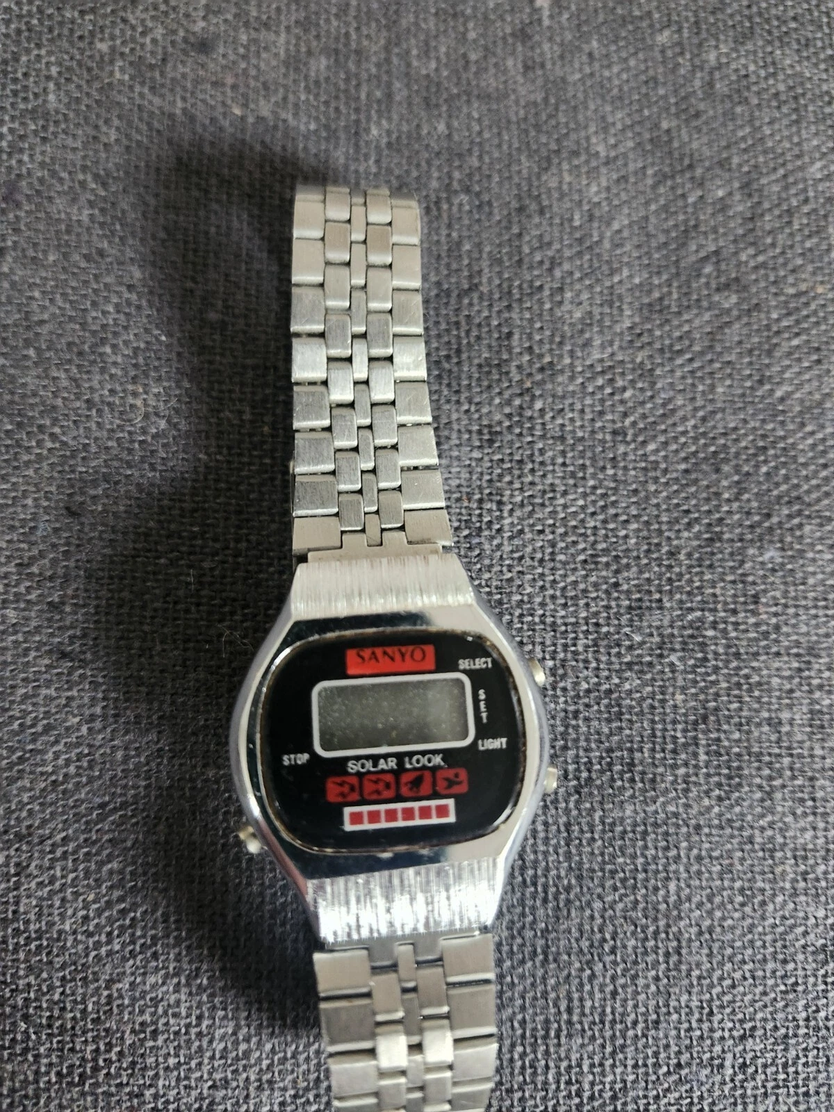 Vintage Sanyo Solar Look Digital Sports Watch Not Working Silver Plated Back