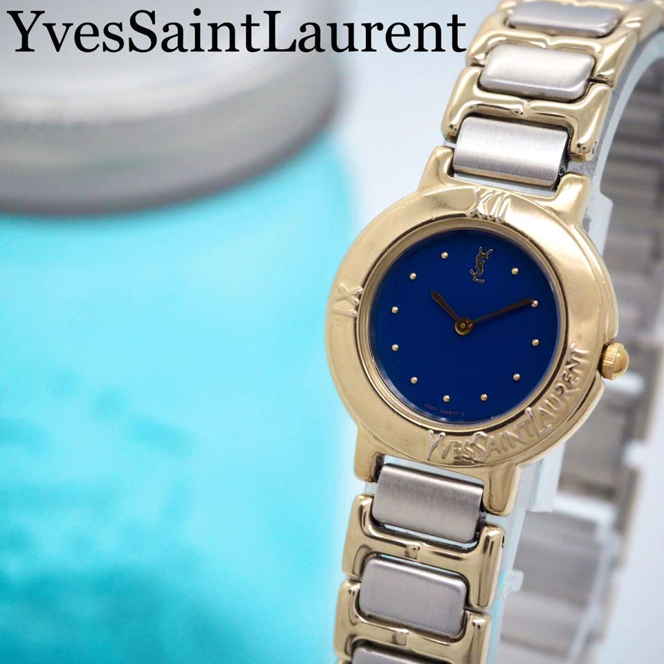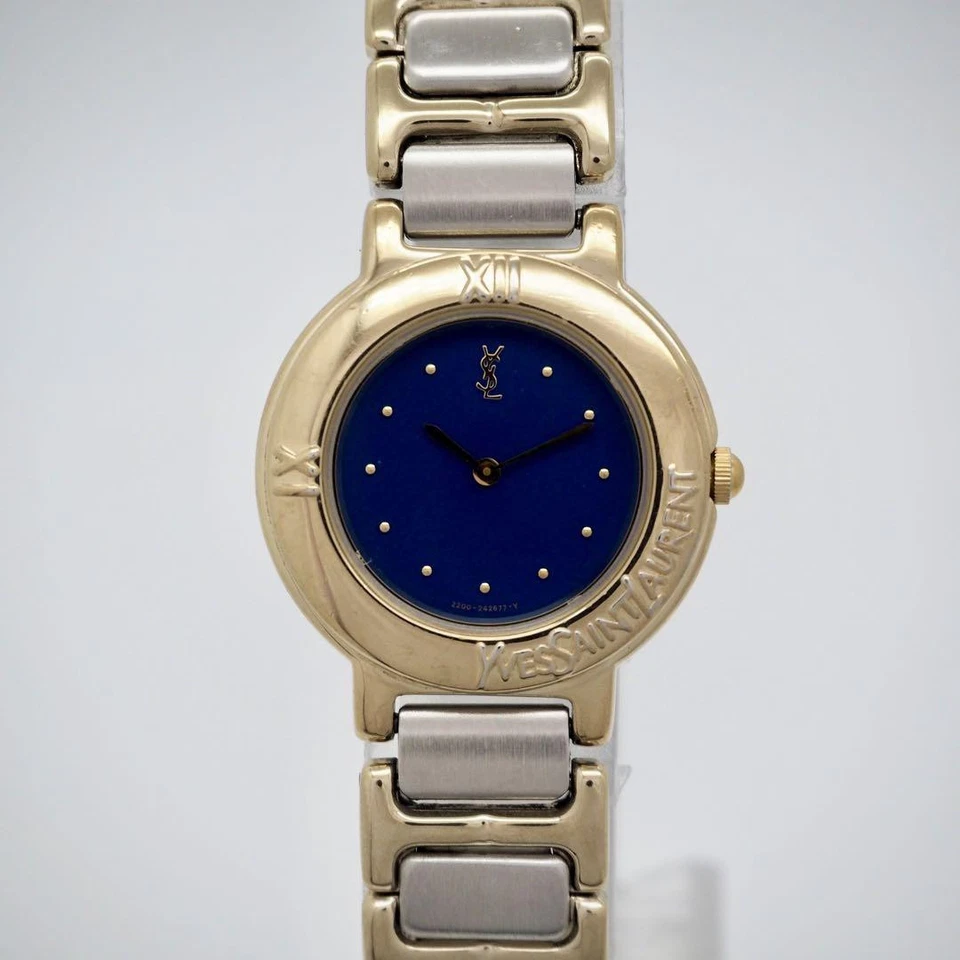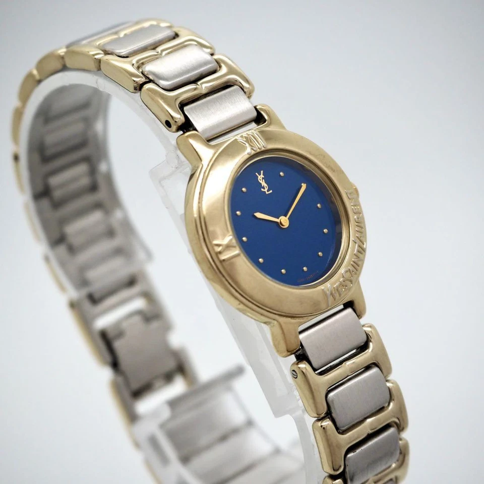 Saint Laurent Watch Wristwatch YSL Cassandra Silver Navy Gold Women's Authentic