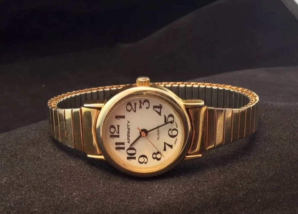 Affinity Quartz Watch Gold Tone Stretch Bracelet Easy To Read Numbers Works