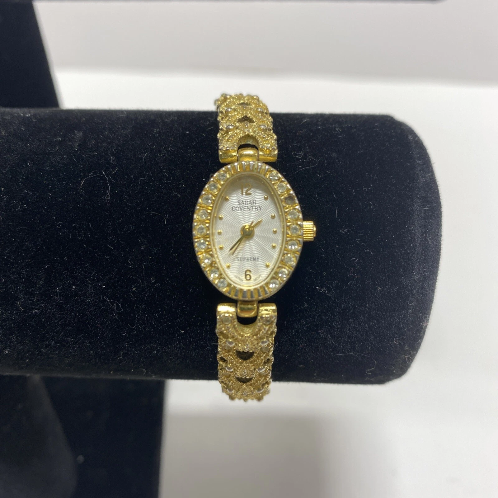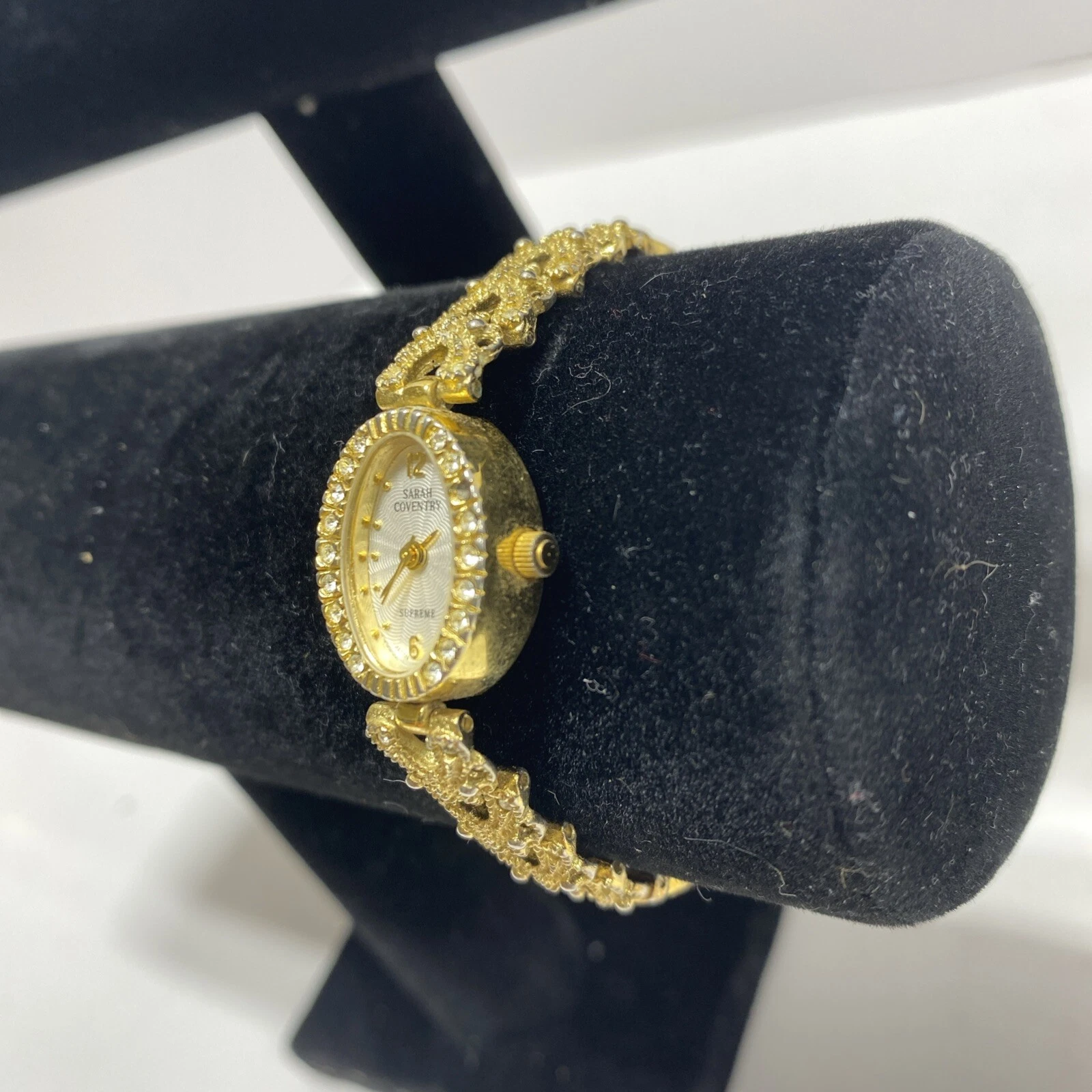 VINTAGE SARAH COVENTRY GOLD TONE DIAMOND ACCENT WATCH