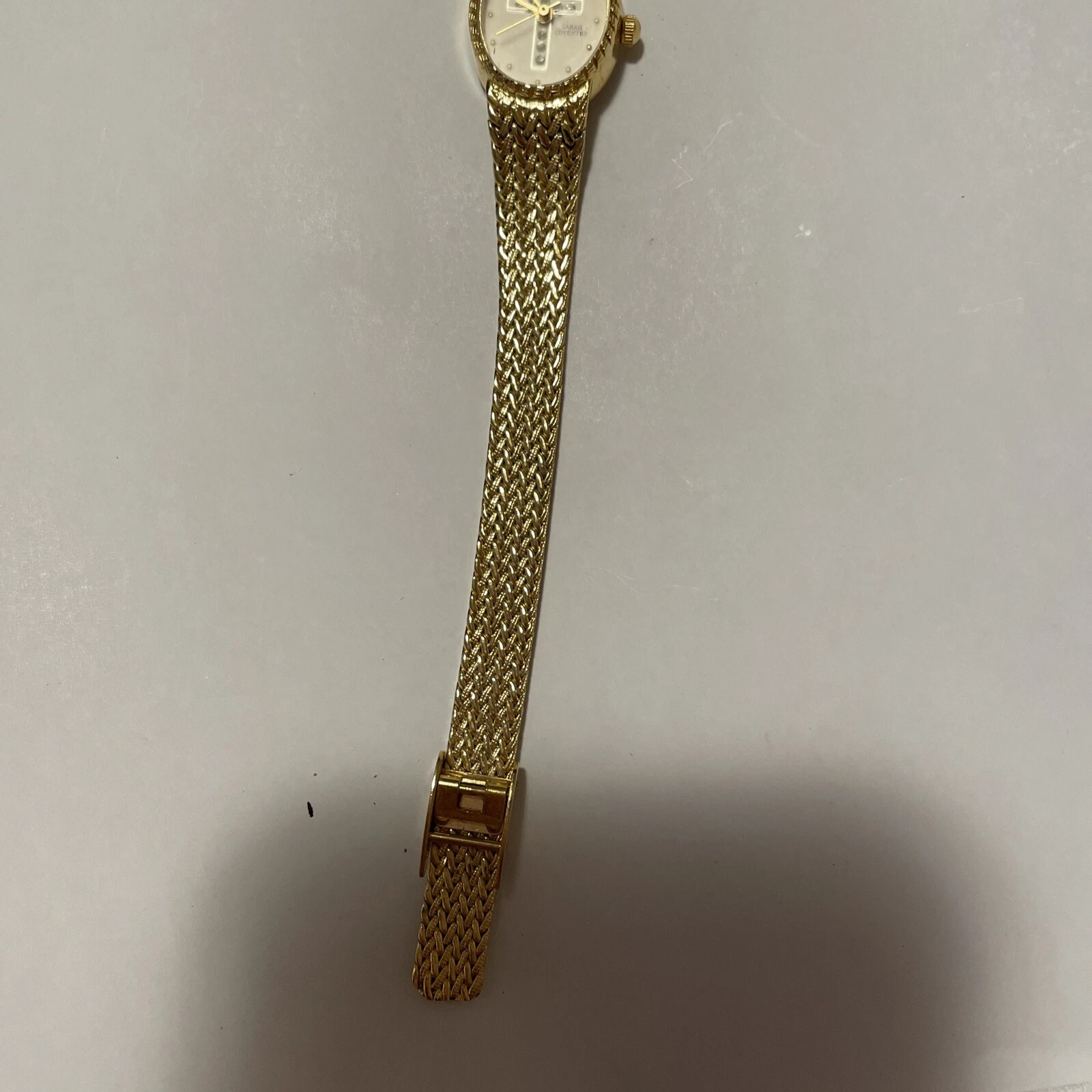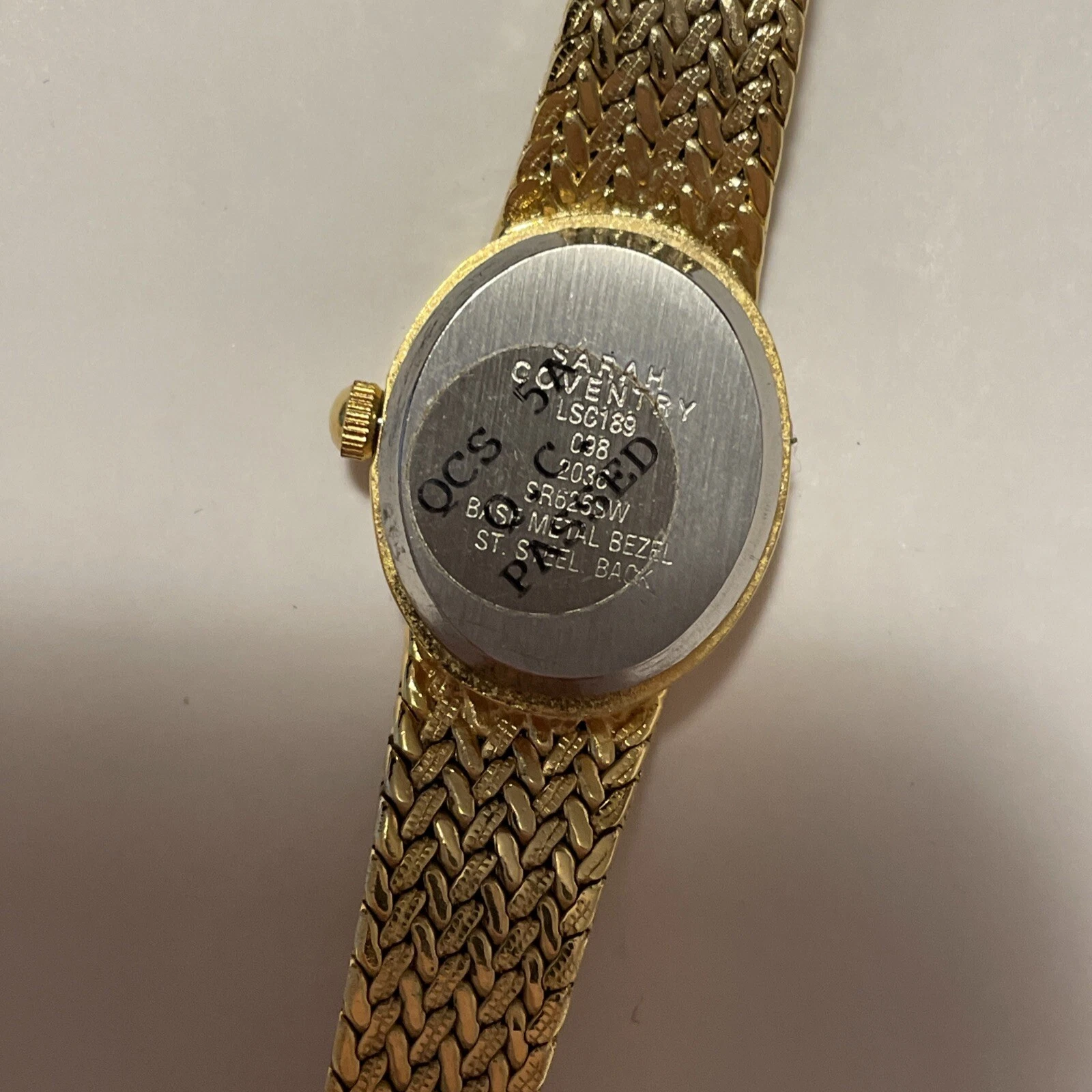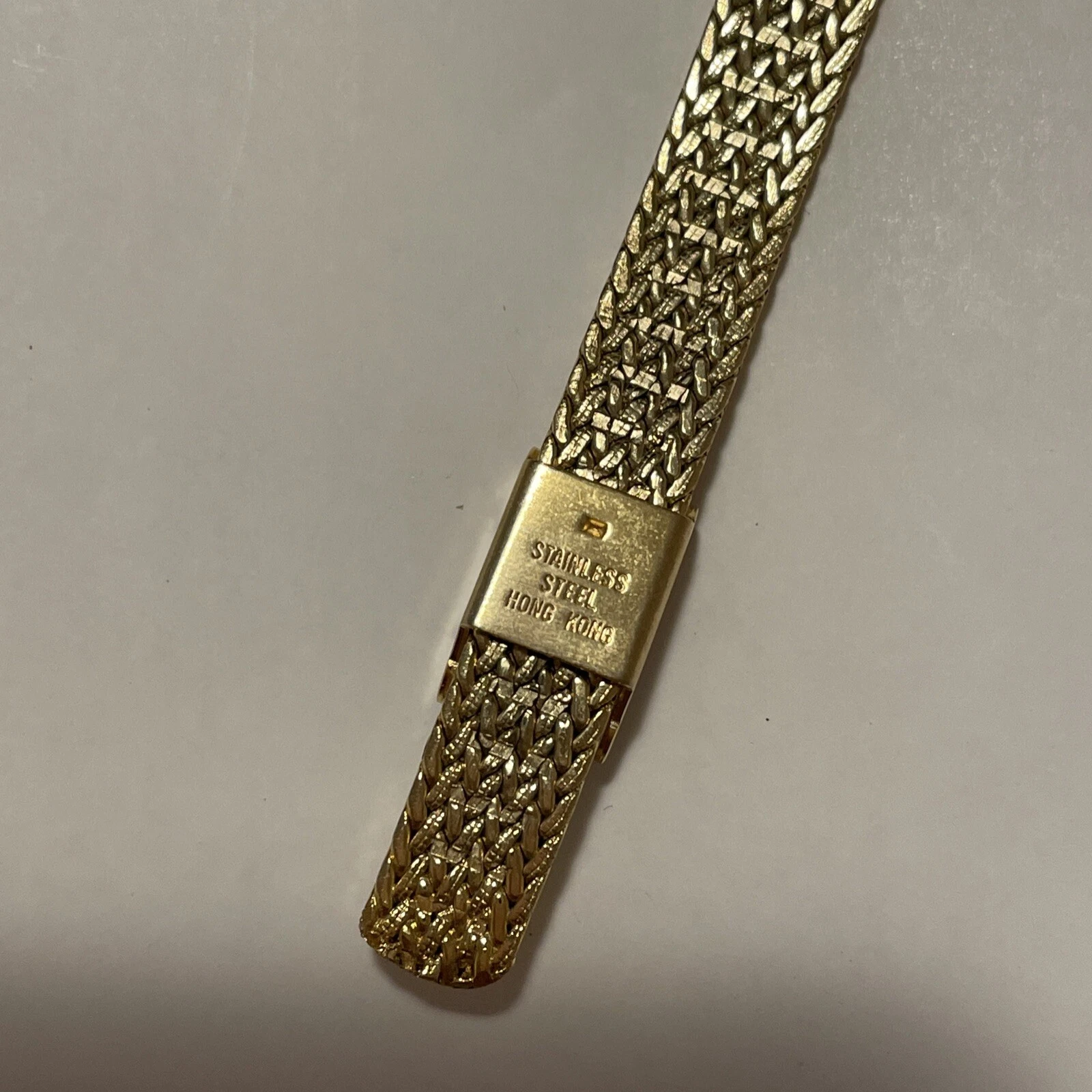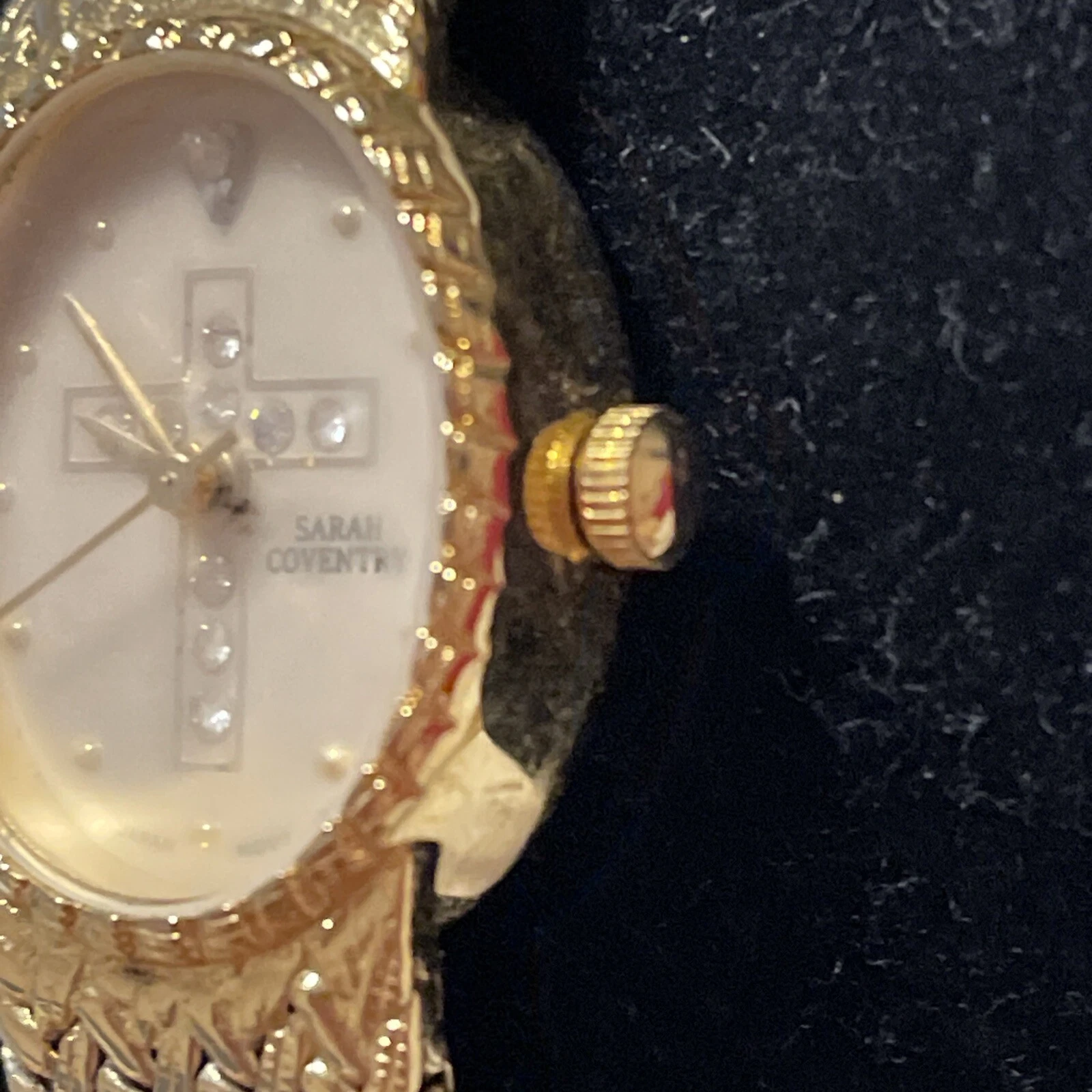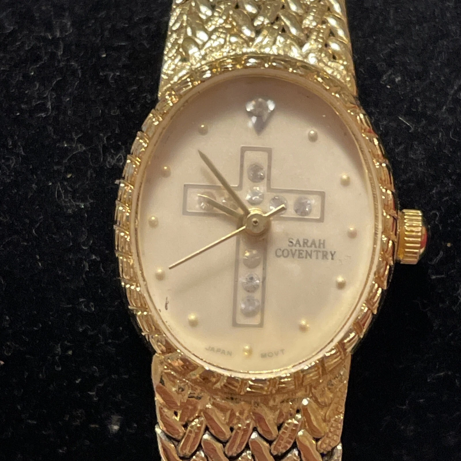Womens Gold Sarah Coventry Wristwatch Christian Cross Faux Diamonds 8 “