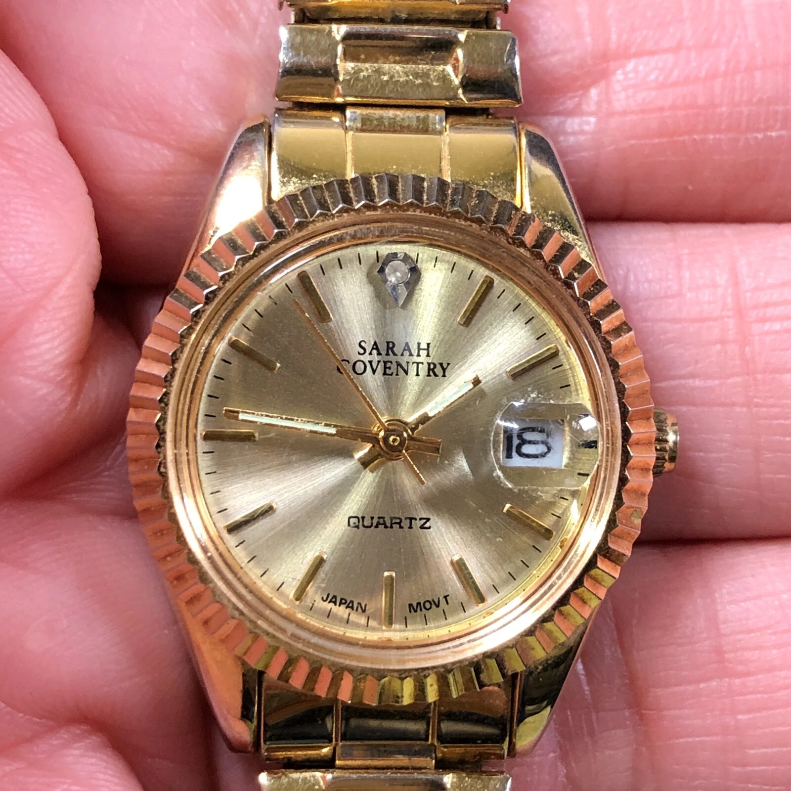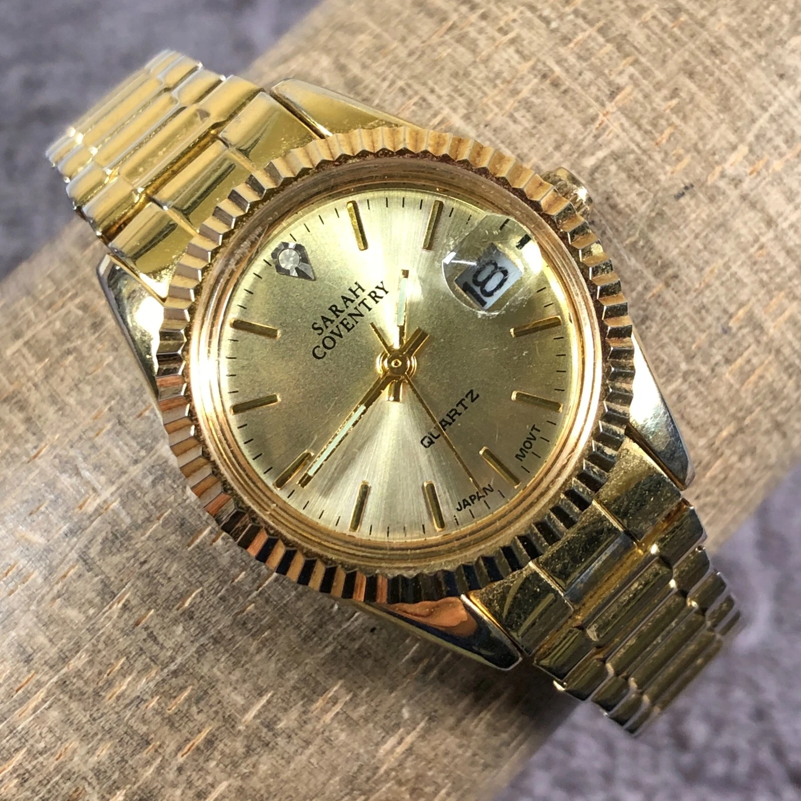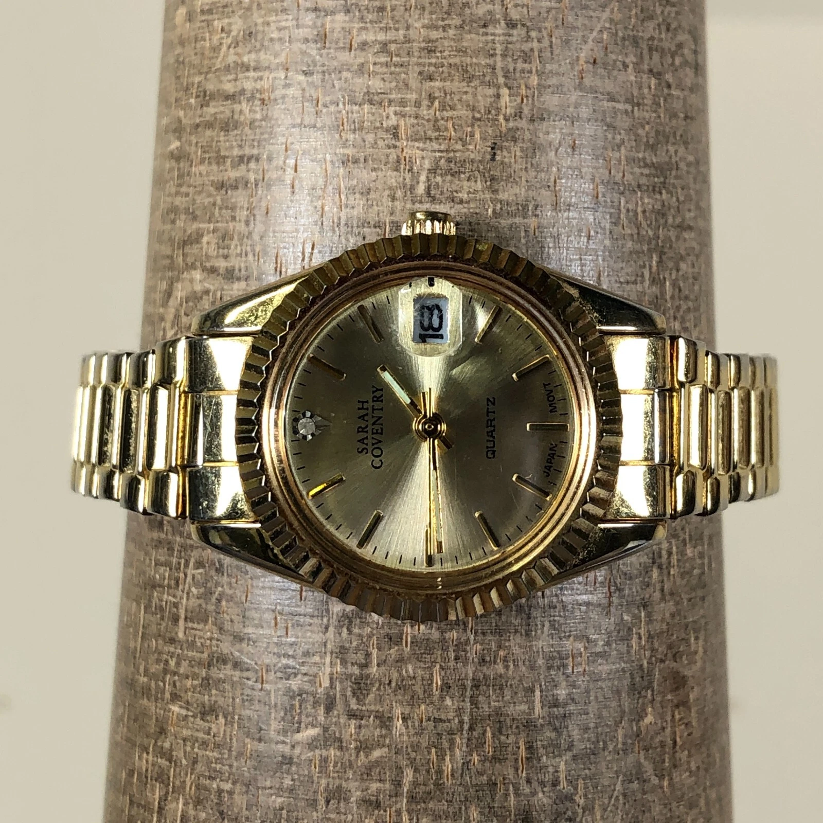 Sarah Coventry Women LSC047 Dress Gold Fluted 24mm Expansion Quartz Watch 5 3/4"