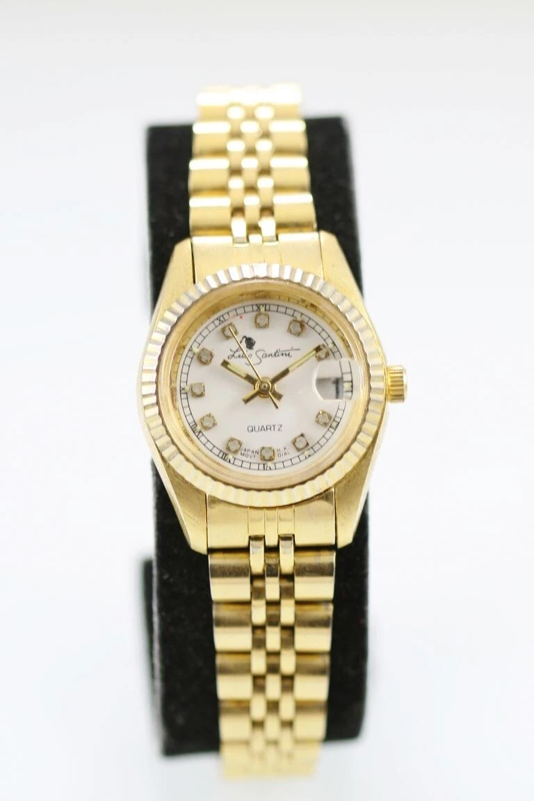Luis Santini Women Watch Stainless Steel Gold Water Re Battery Date White Quartz