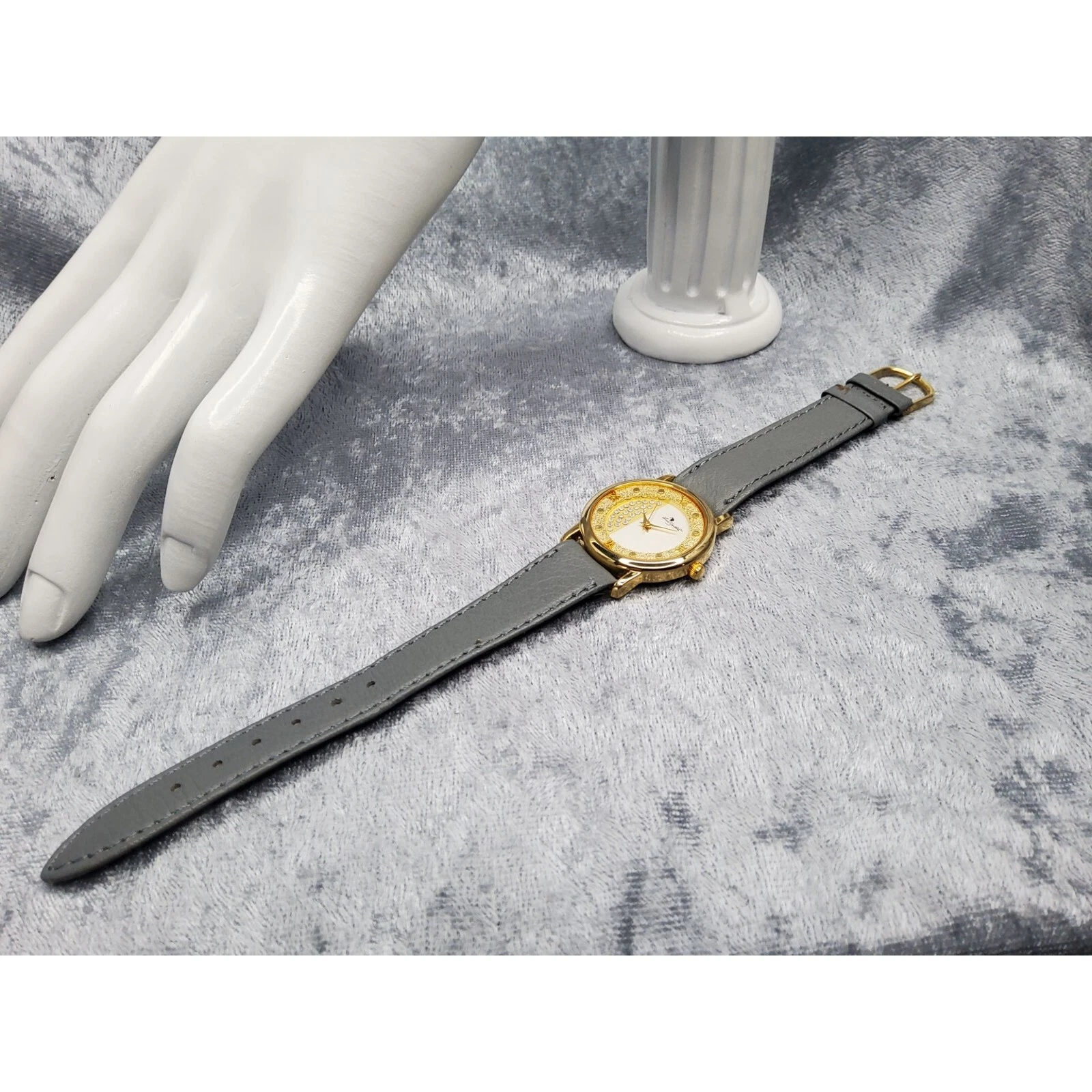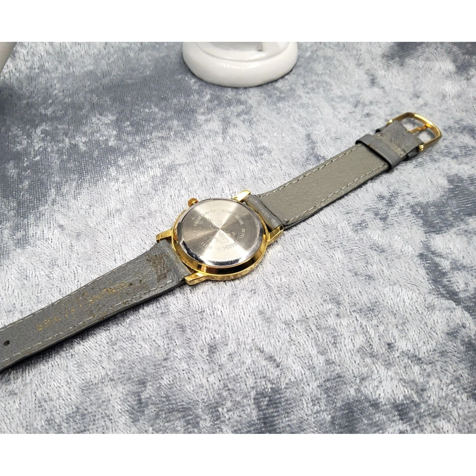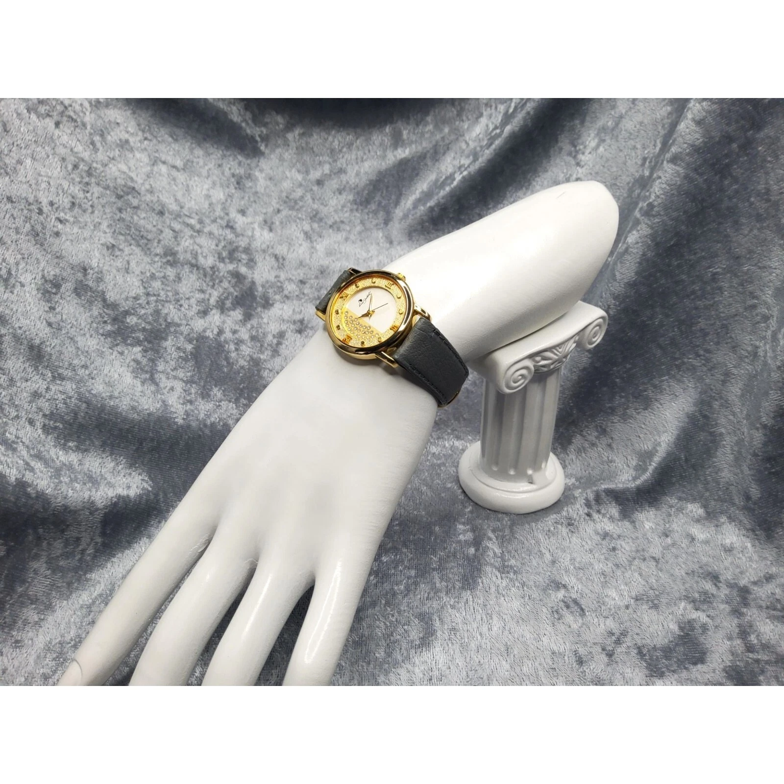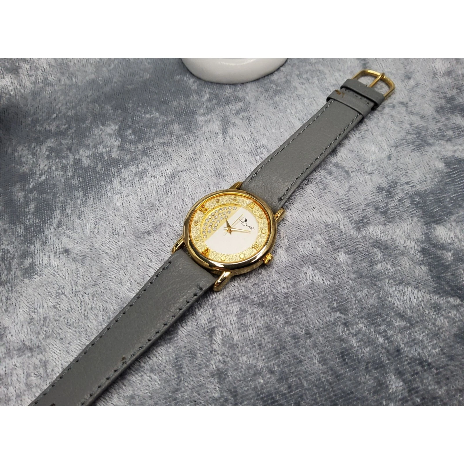 vintage luis santini gold tone rhinestone roman numeral leather band watch