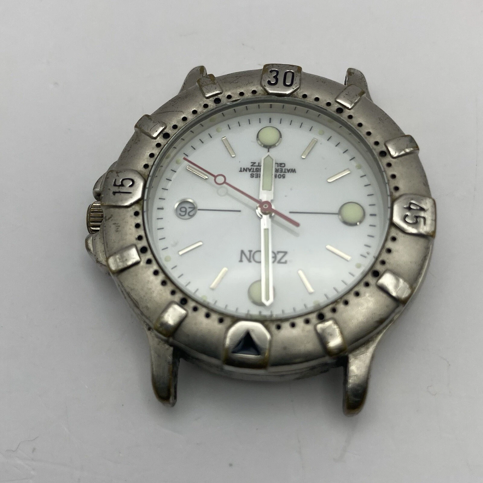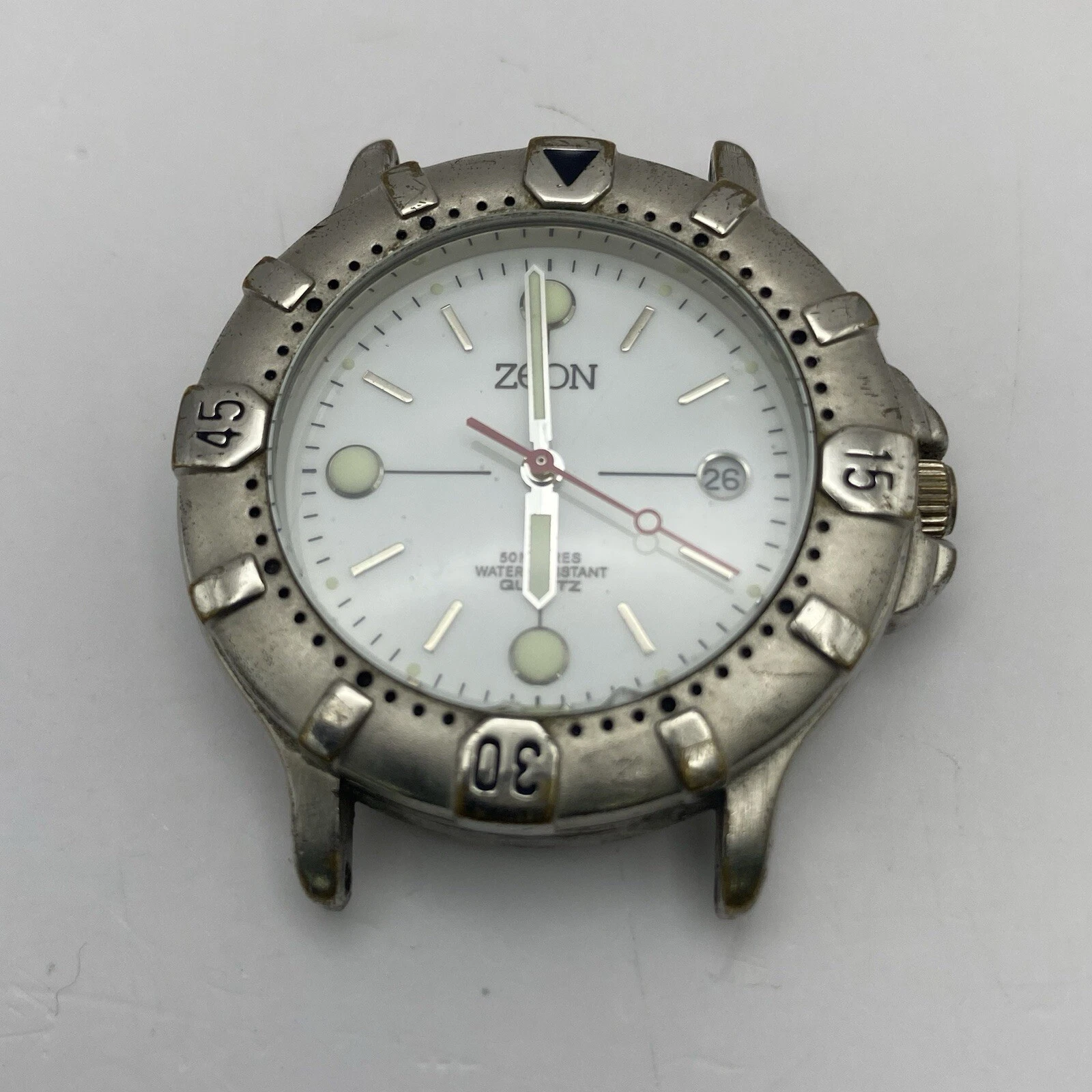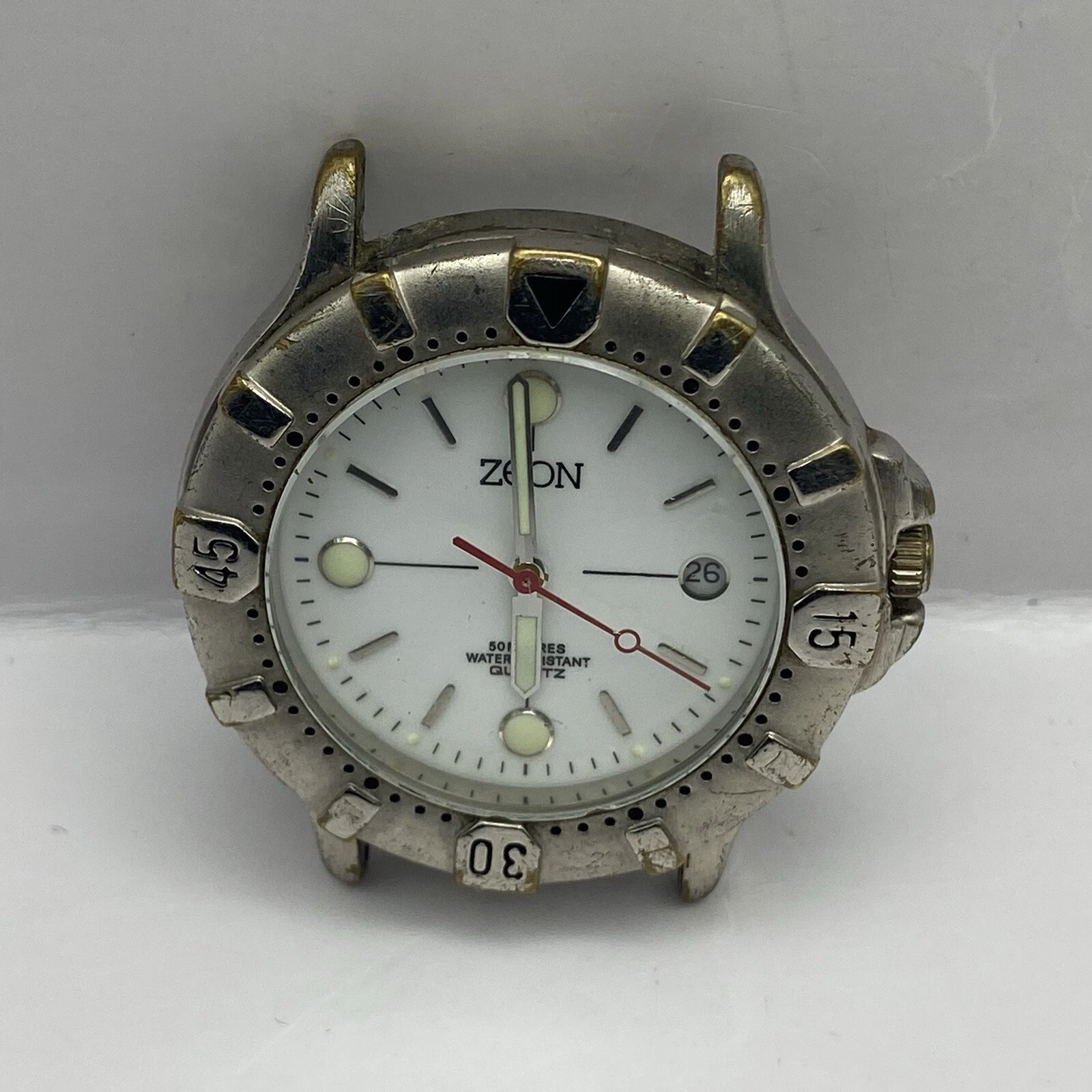 37mm Zeon Quartz Watchface 50m WR 13094G White Dial Untested For Parts/Repair