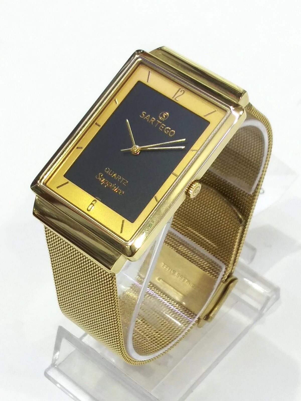 Sartego Seville quartz sapphire 50 meter square gold tone men's watch SVS821