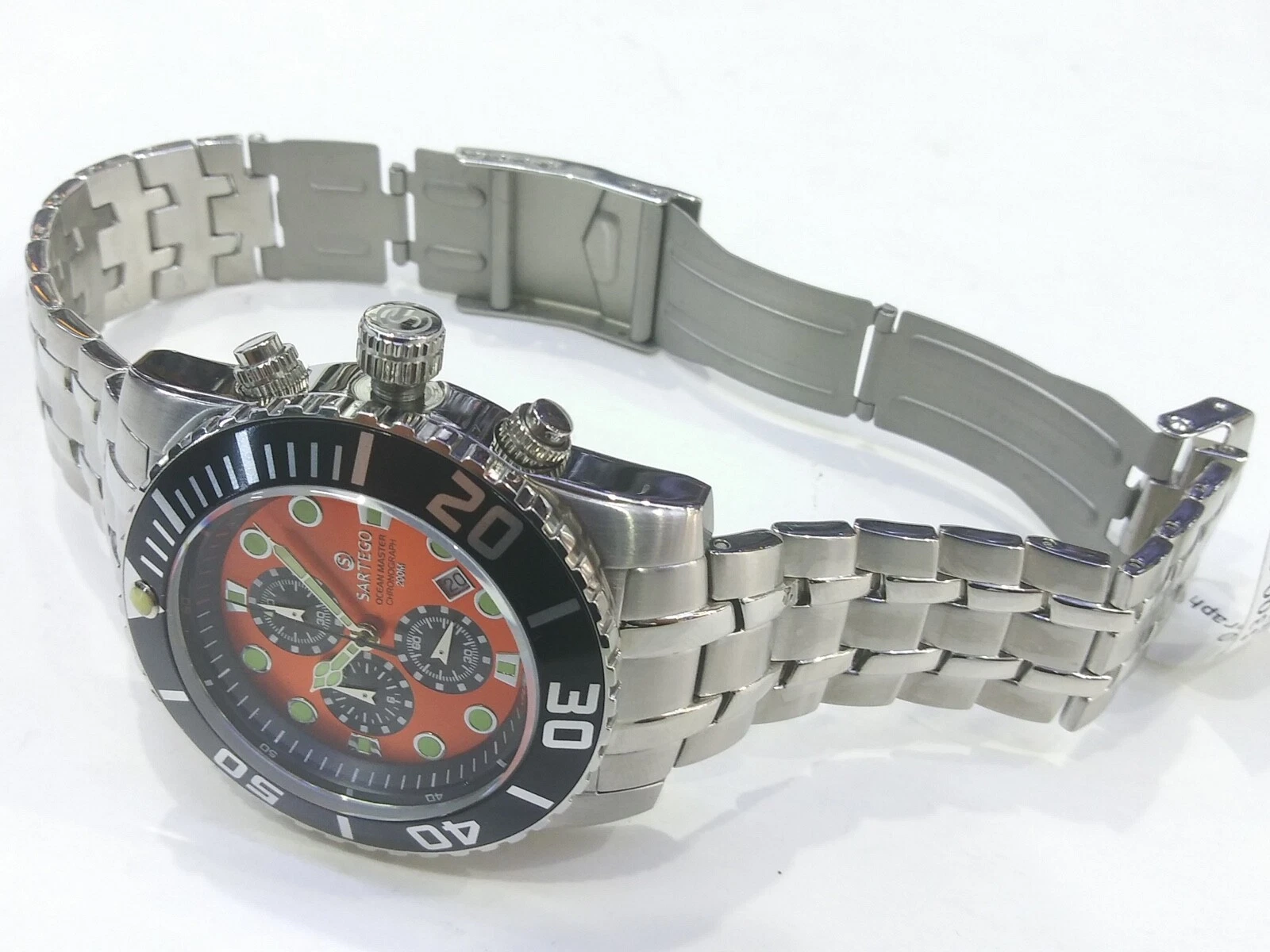 Sartego SPC55 Stainless Steel Ocean Master Diver Chronograph Orange Dial Black Bezel
