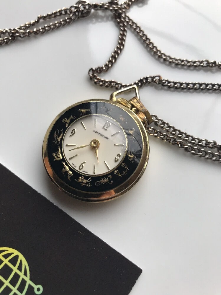 Rare Swiss Made Montreluxe Pendant Pocket Watch (Mechanical, Runs)Zodiac Signs