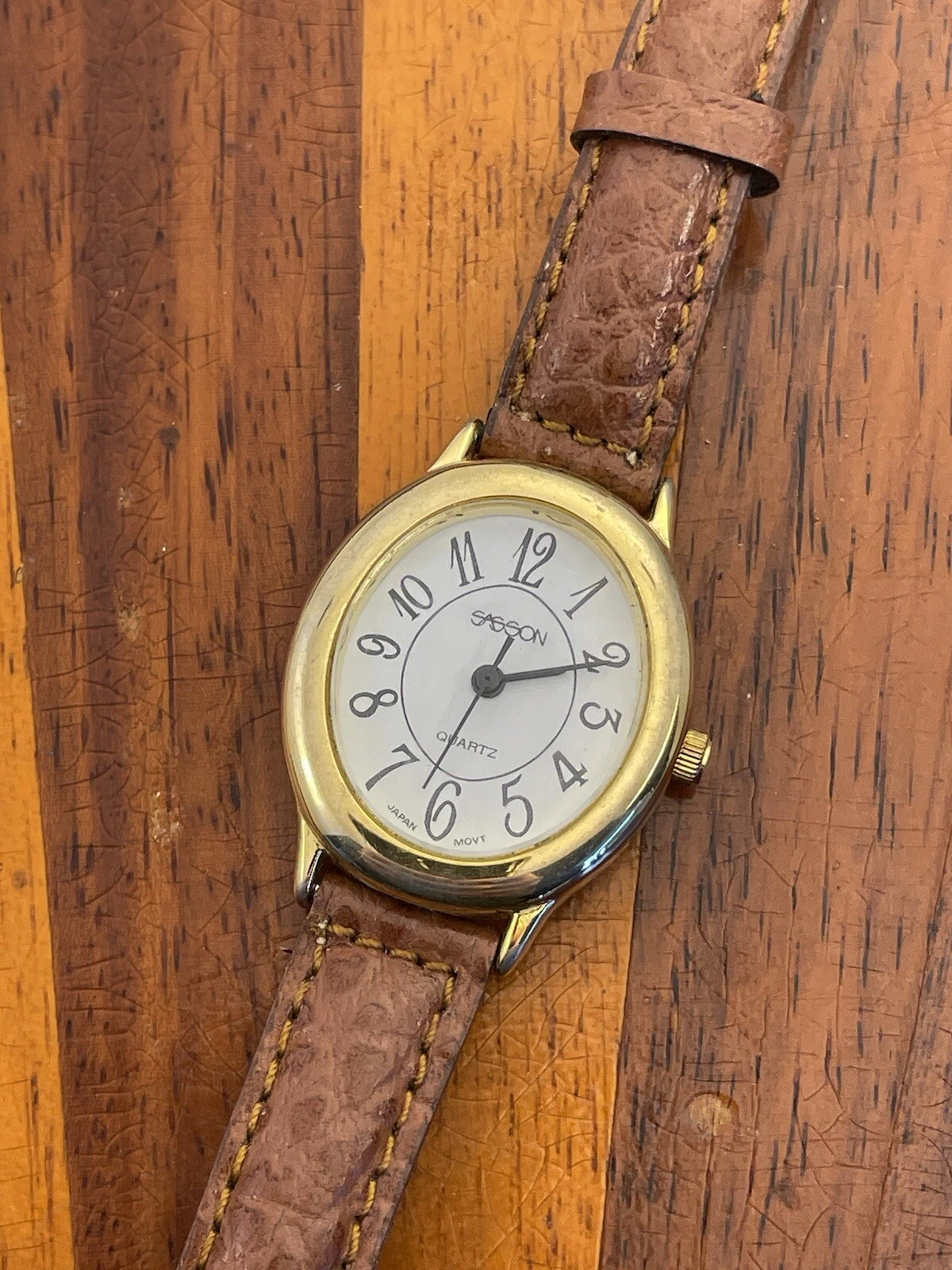 Sasson Women's Watch 26mm Gold Tone White Dial Leather Band - New Battery