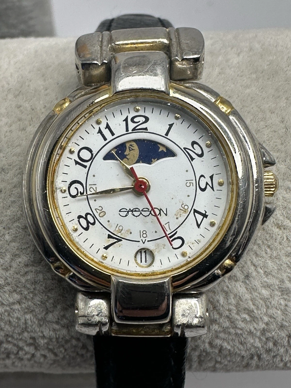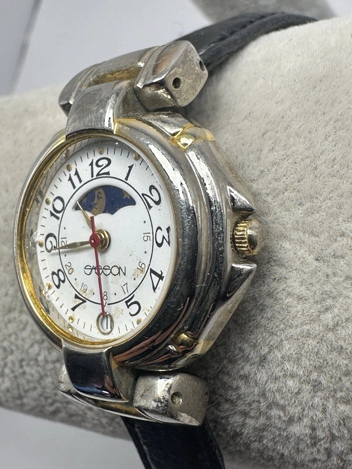 Sasson Ladies Moon Phase Watch New Battery 26MM 7" Leather Band E40